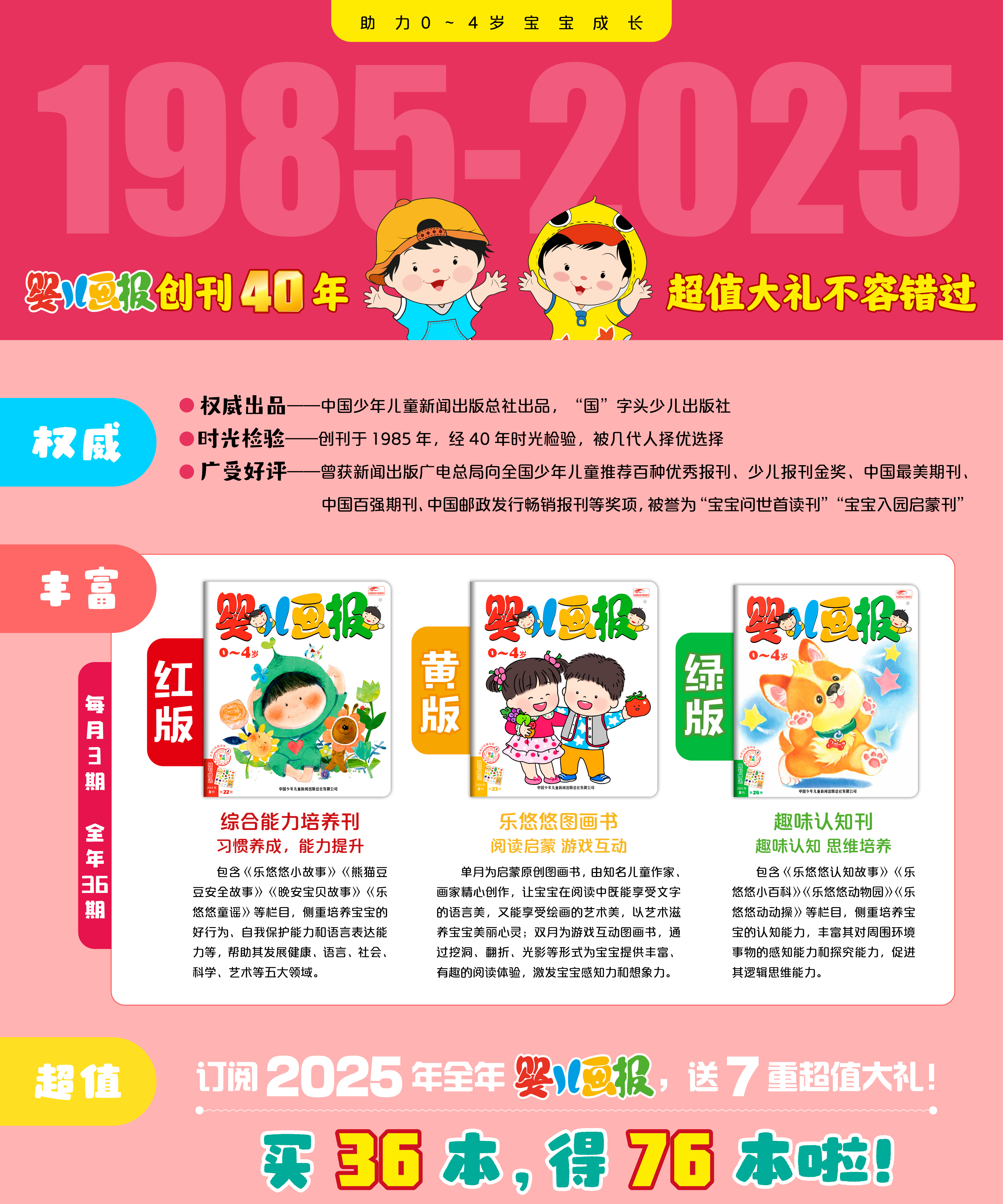 【月刊零售】婴儿画报:2025年7-12月刊 每月3期 丨 0-4岁适读
