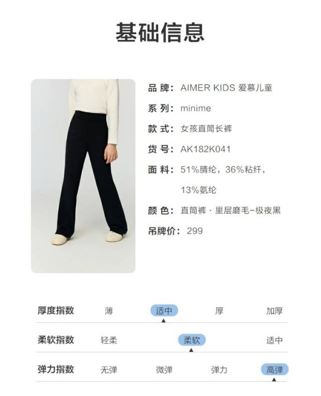 【春上新】8楼爱慕儿童Aimer Kids女孩minime直筒长裤AK182K041,吊牌价299元