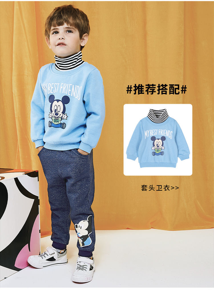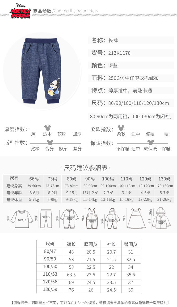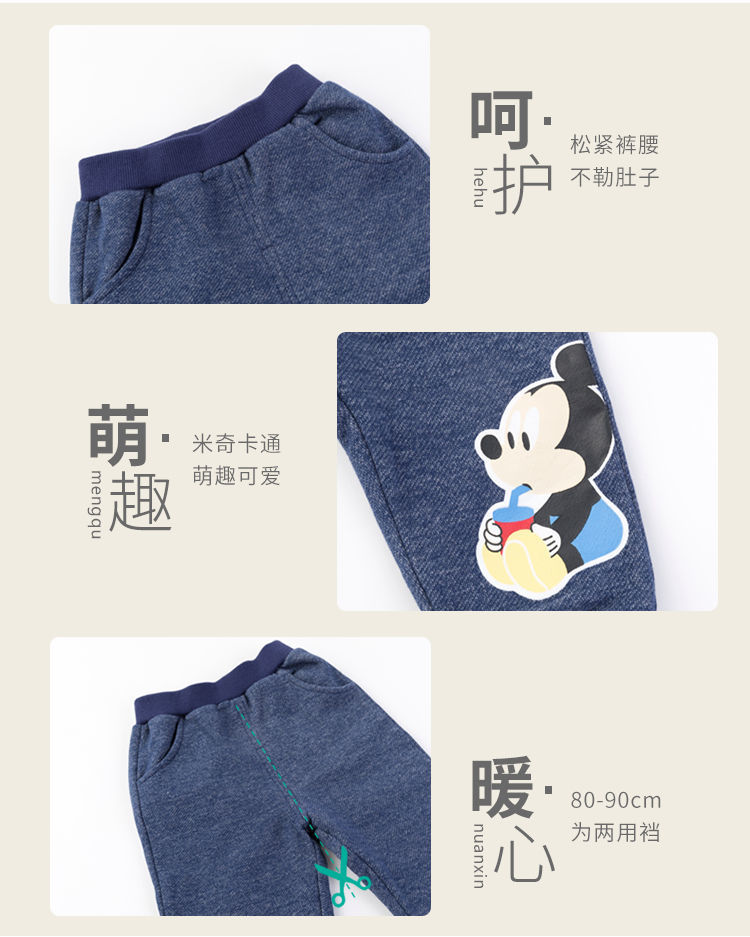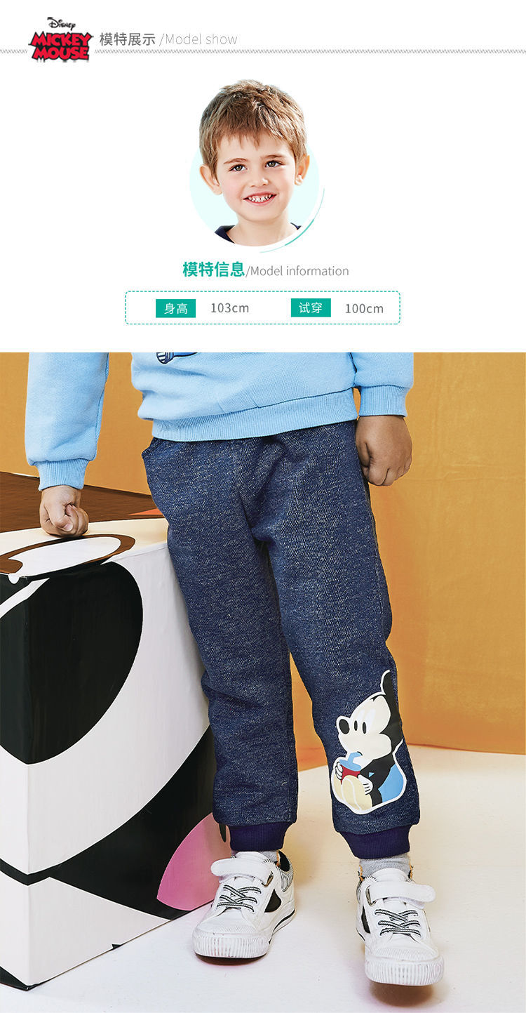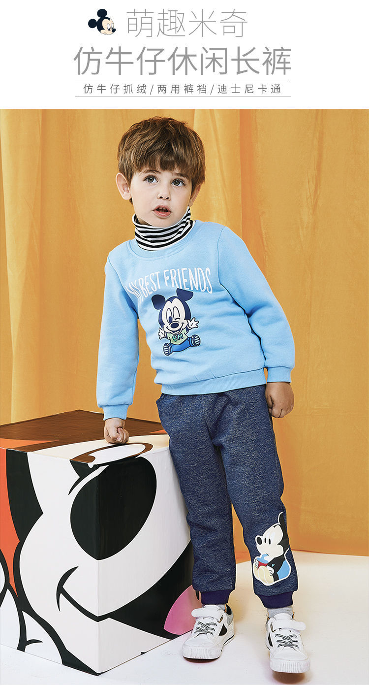 迪士尼童装 儿童裤子男童加绒裤子宝宝长裤秋冬新款仿牛仔休闲裤213K1178