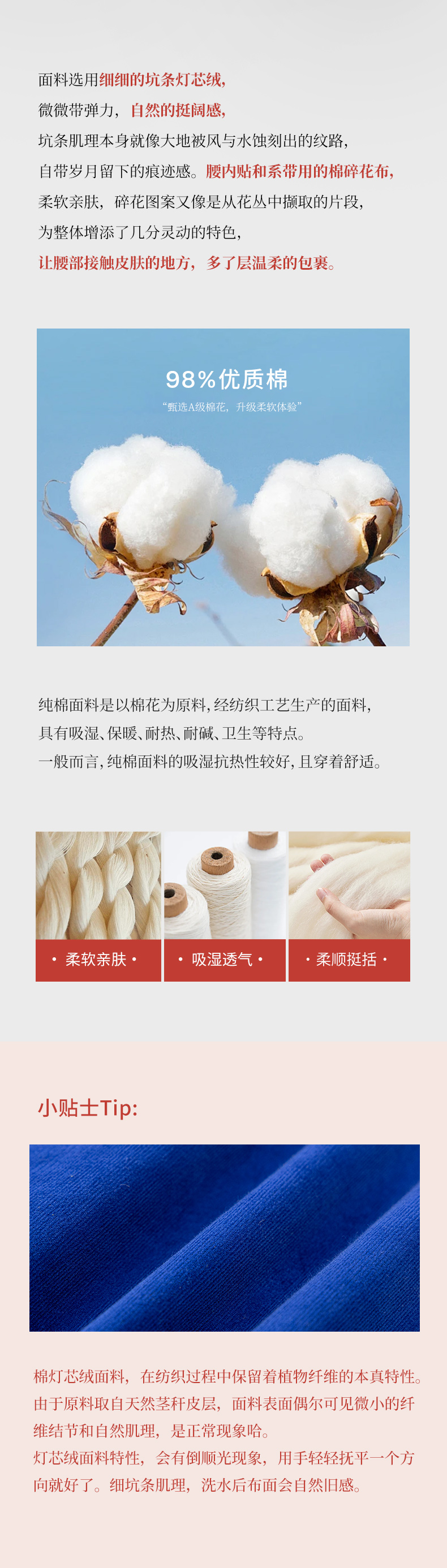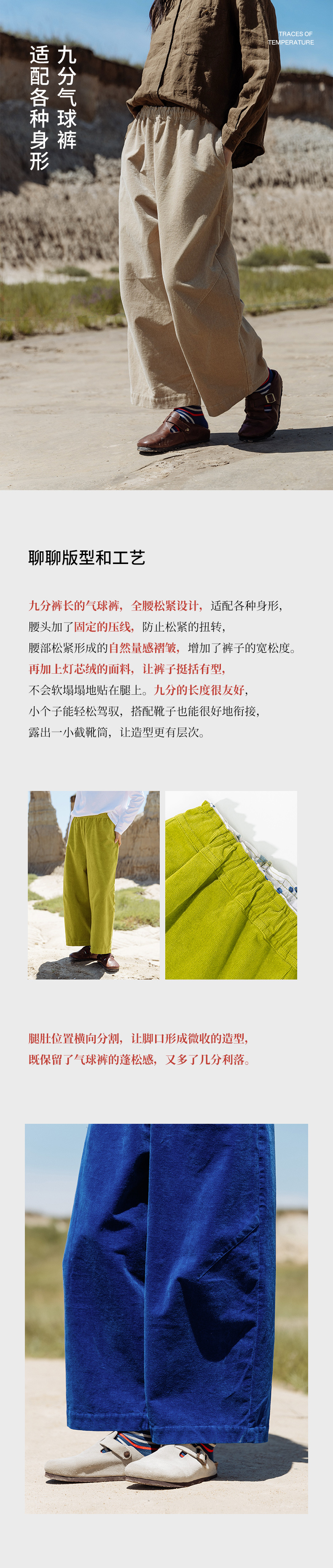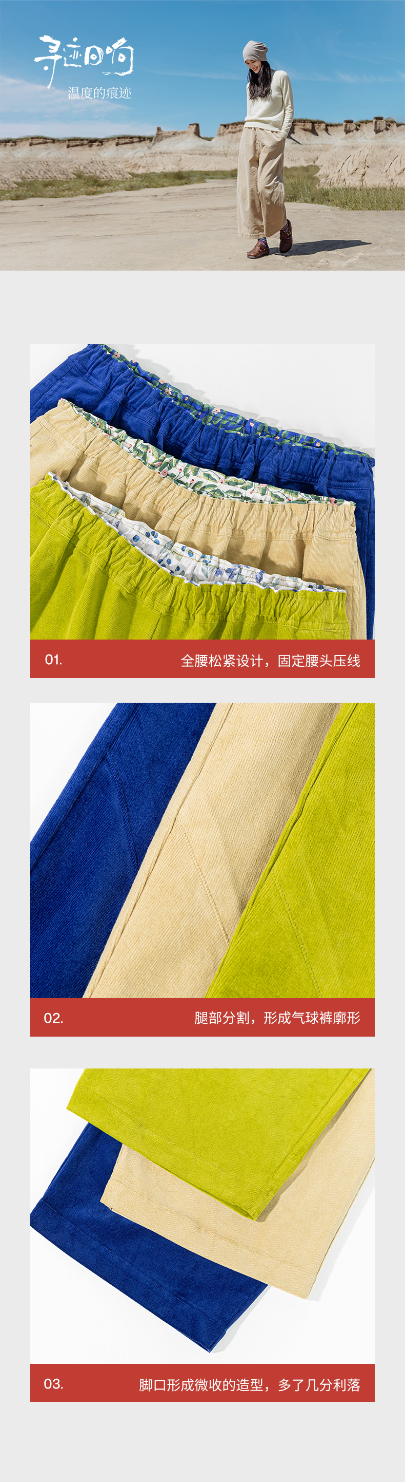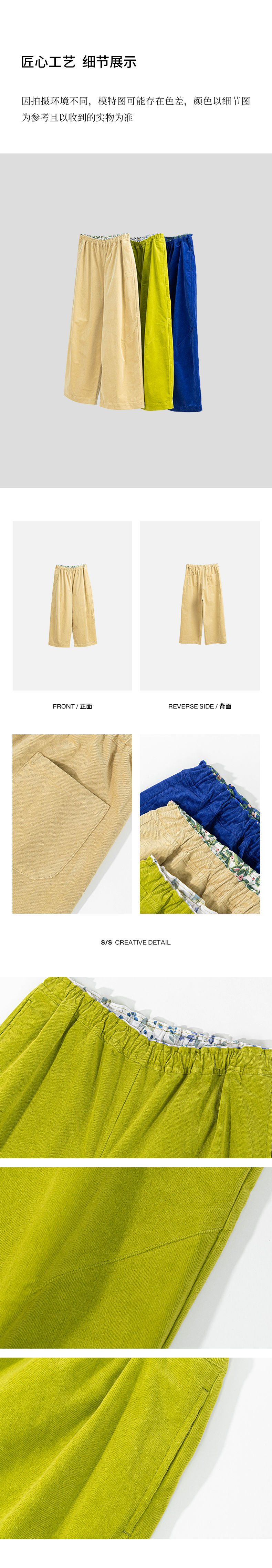 绽放560朵/细坑条灯芯绒内贴花布松紧腰九分裤松弛感休闲裤新款