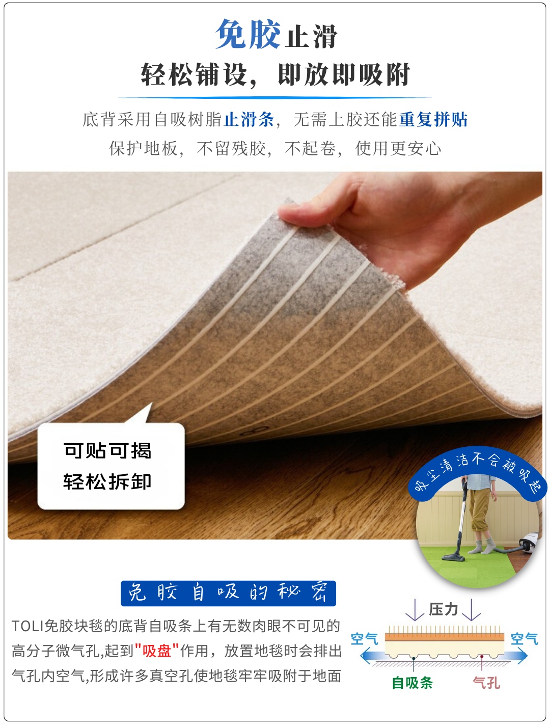 日本进口家用拼接地毯办公室客厅茶几卧室儿童房满铺方块毯地垫