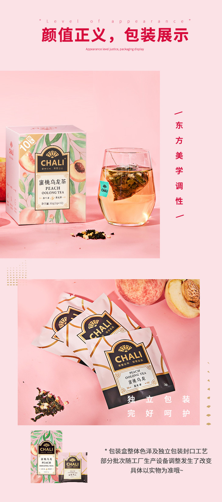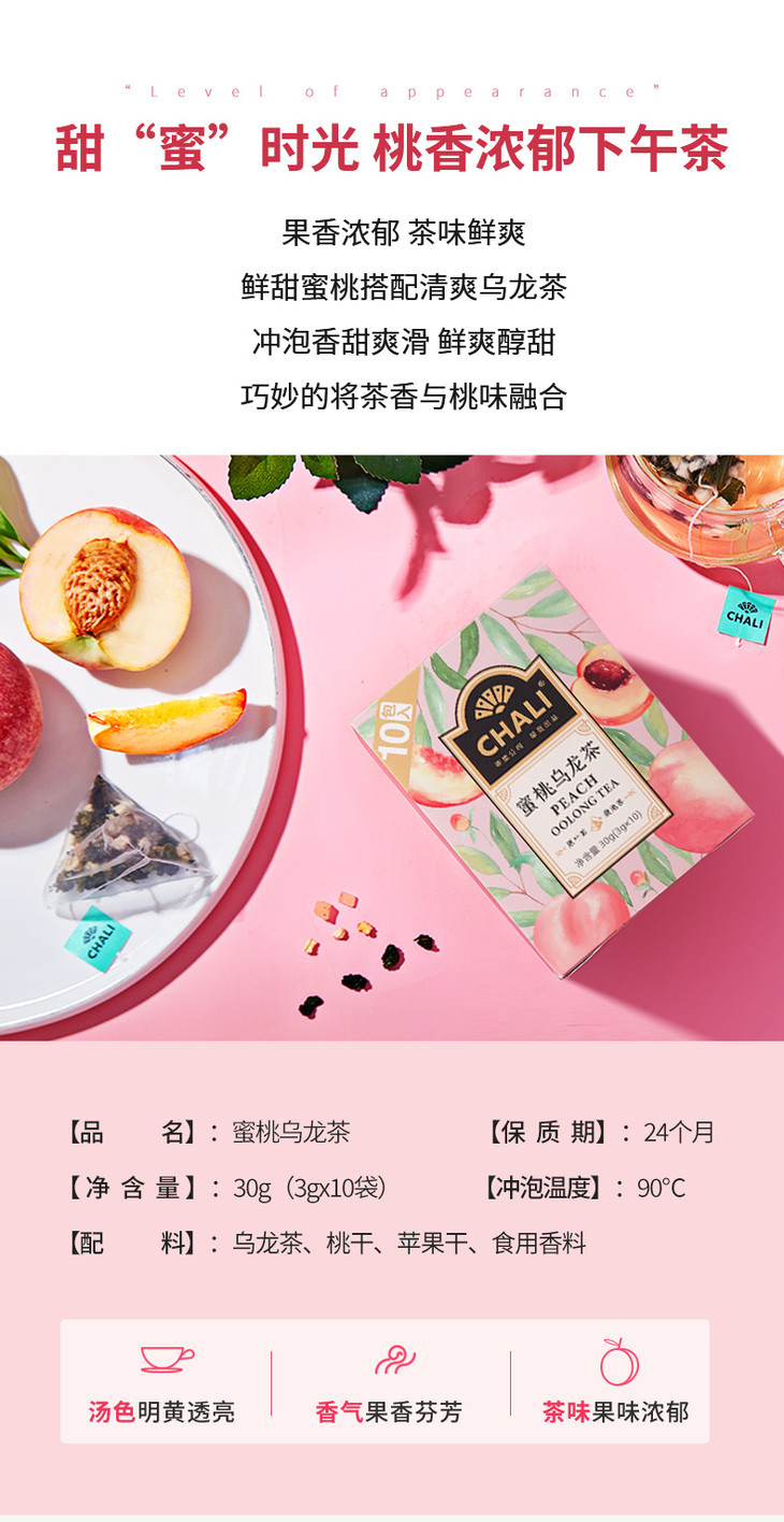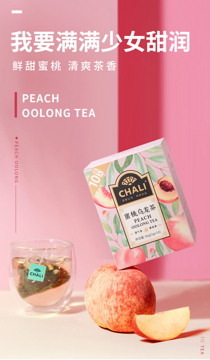 【特价秒杀】CHALI 蜜桃乌龙茶10包/盒*3+赠高硼硅玻璃杯