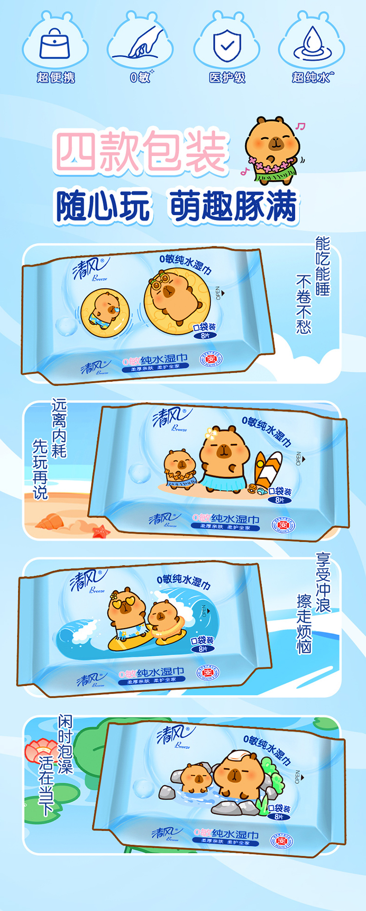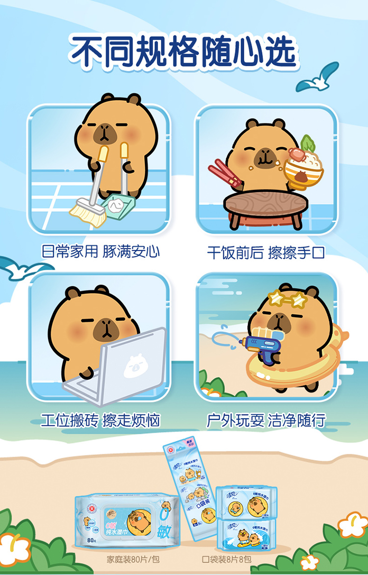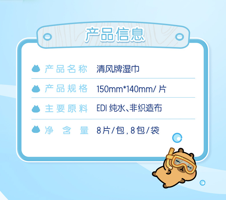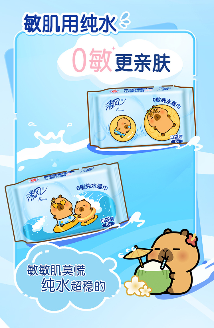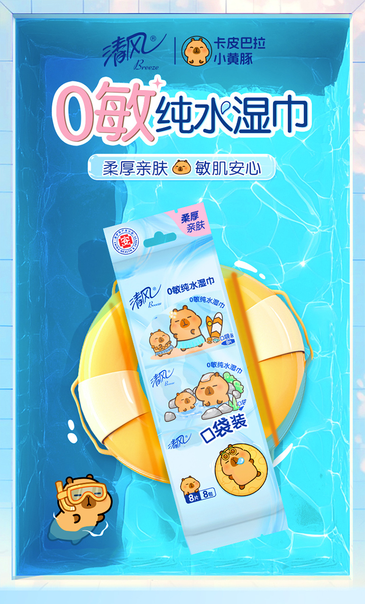【官方自营】清风超迷你纯水湿巾8片*8包/提卡皮巴拉小黄豚联名