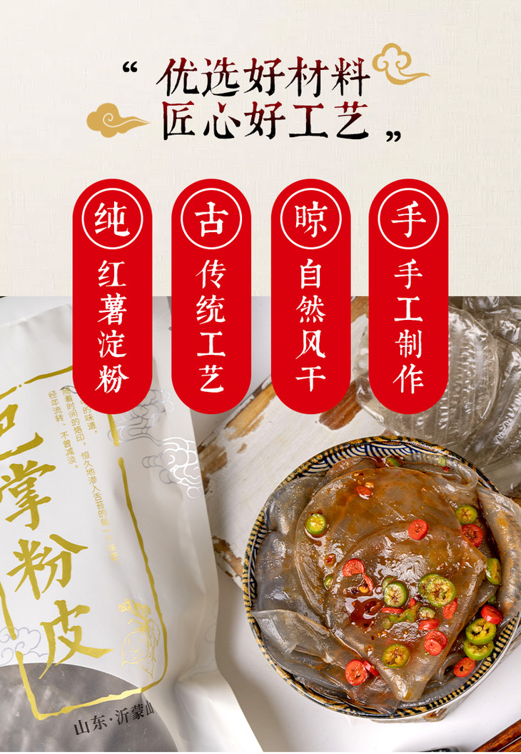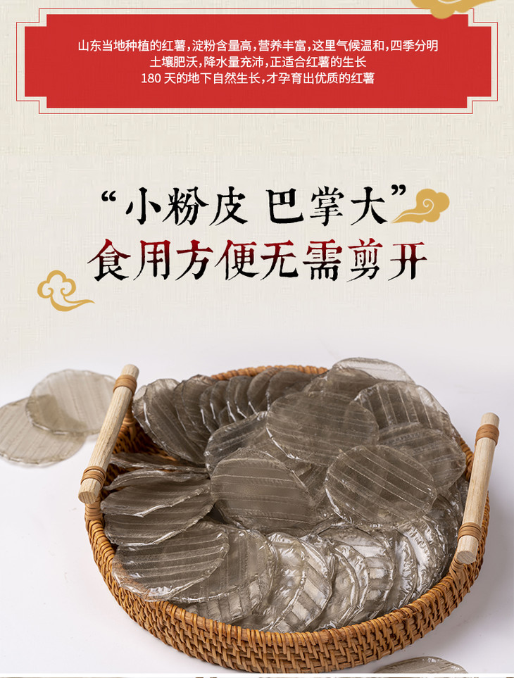 🈚️明矾🈚️胶🈚️添加剂🈚️防腐剂,不添加木薯淀粉,纯红薯淀粉制作🍠巴掌红薯粉皮(500g*2袋)