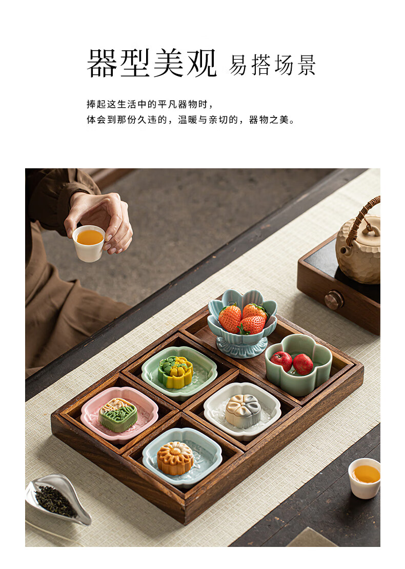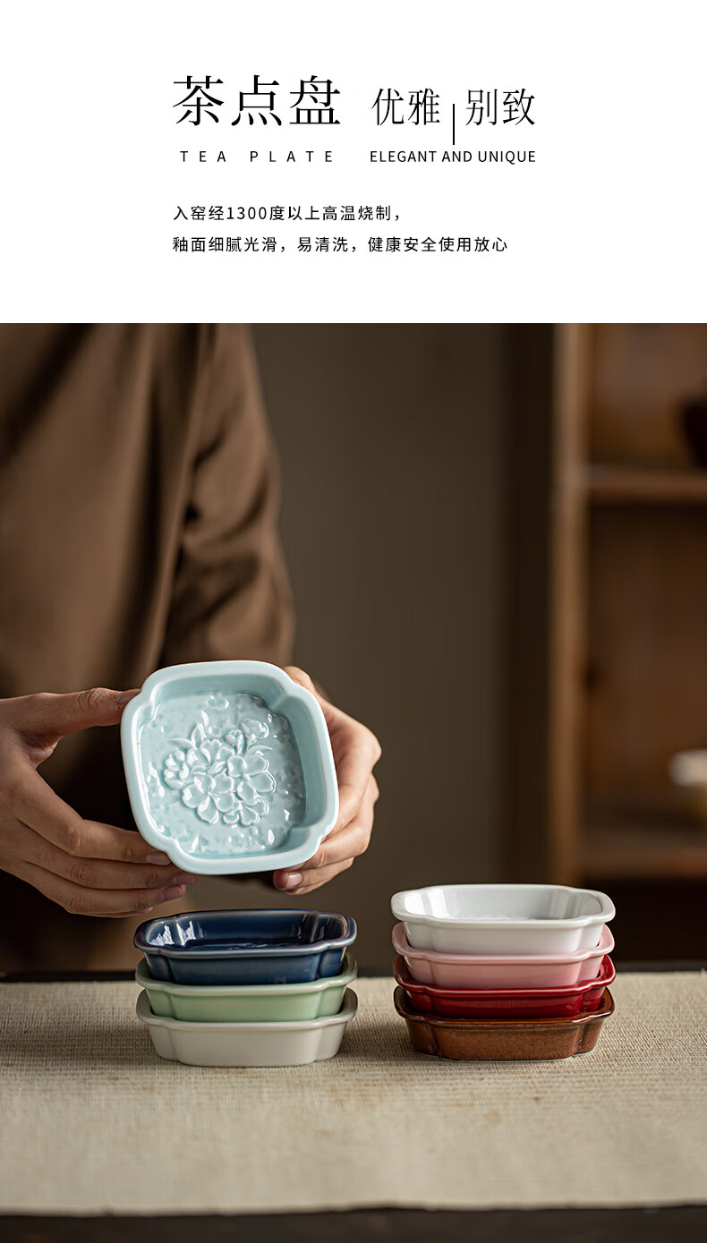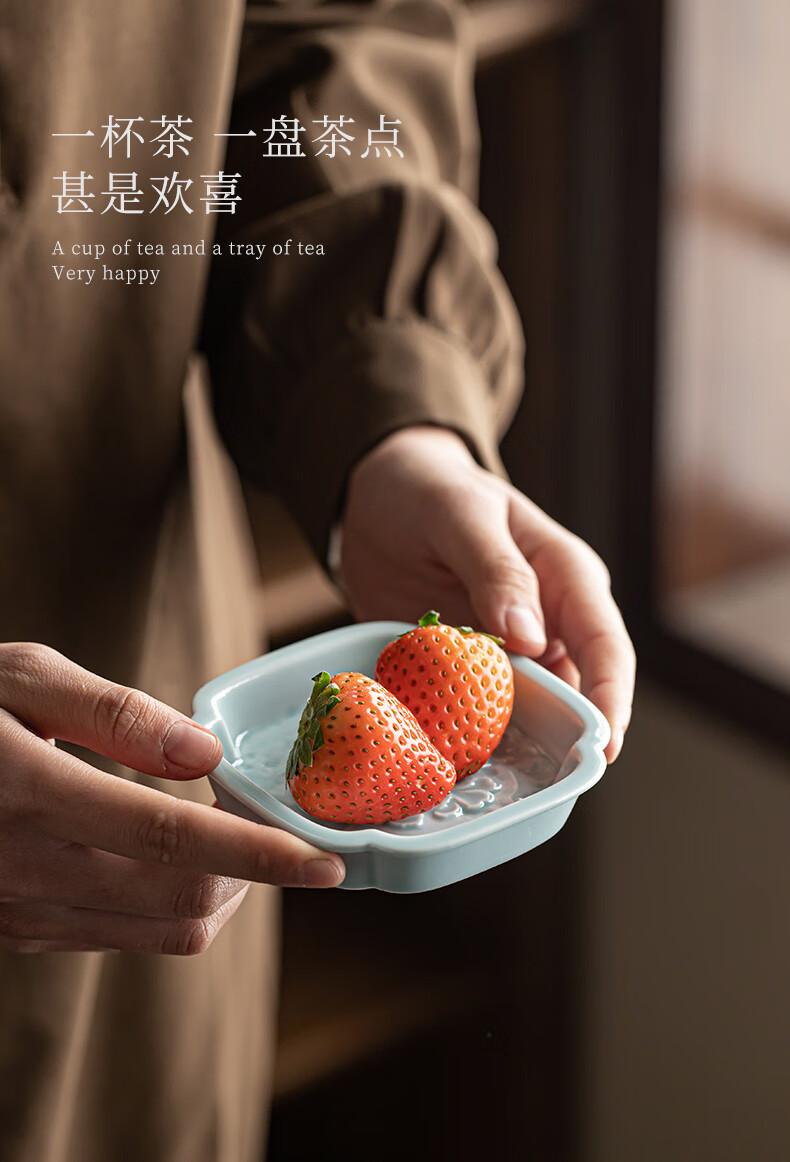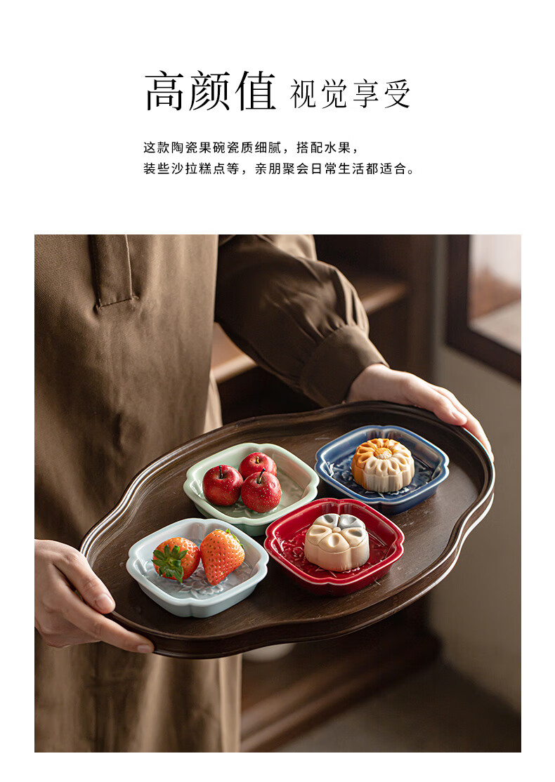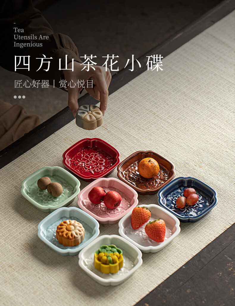 【四方山茶花小蝶】禅意茶点盘中式复古陶瓷果盘家用客厅零食盘糖果盘水果盘干果盘