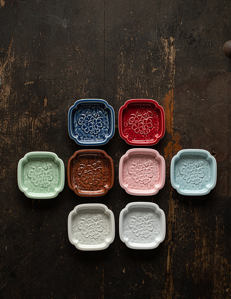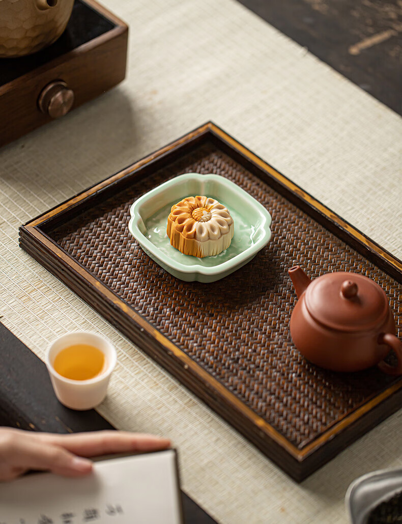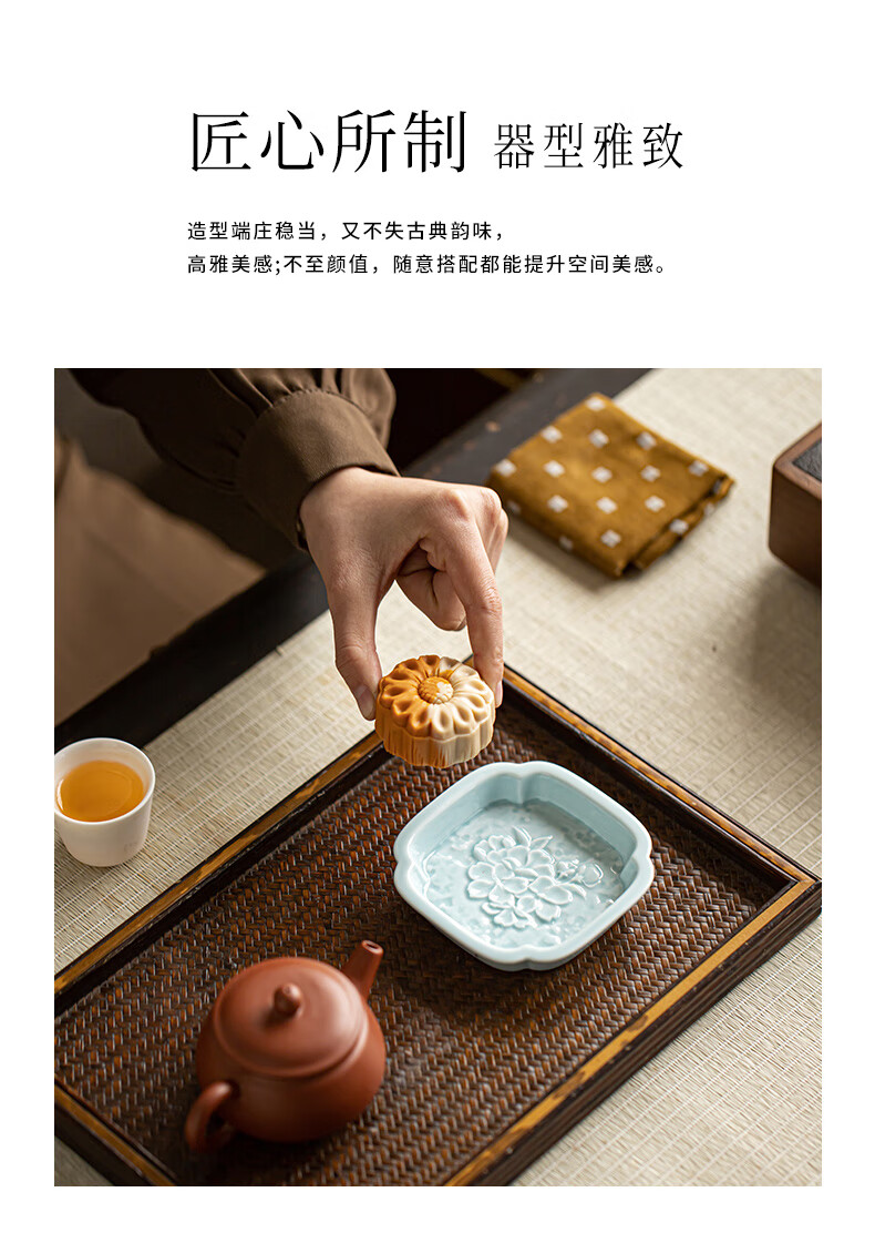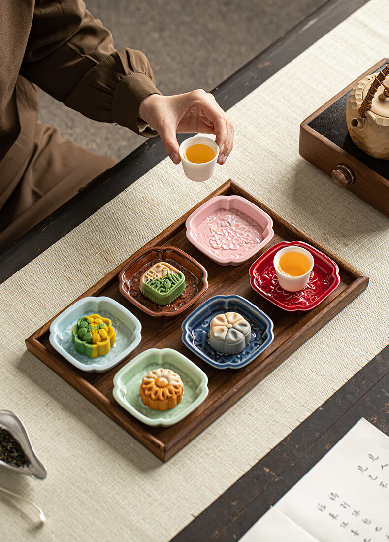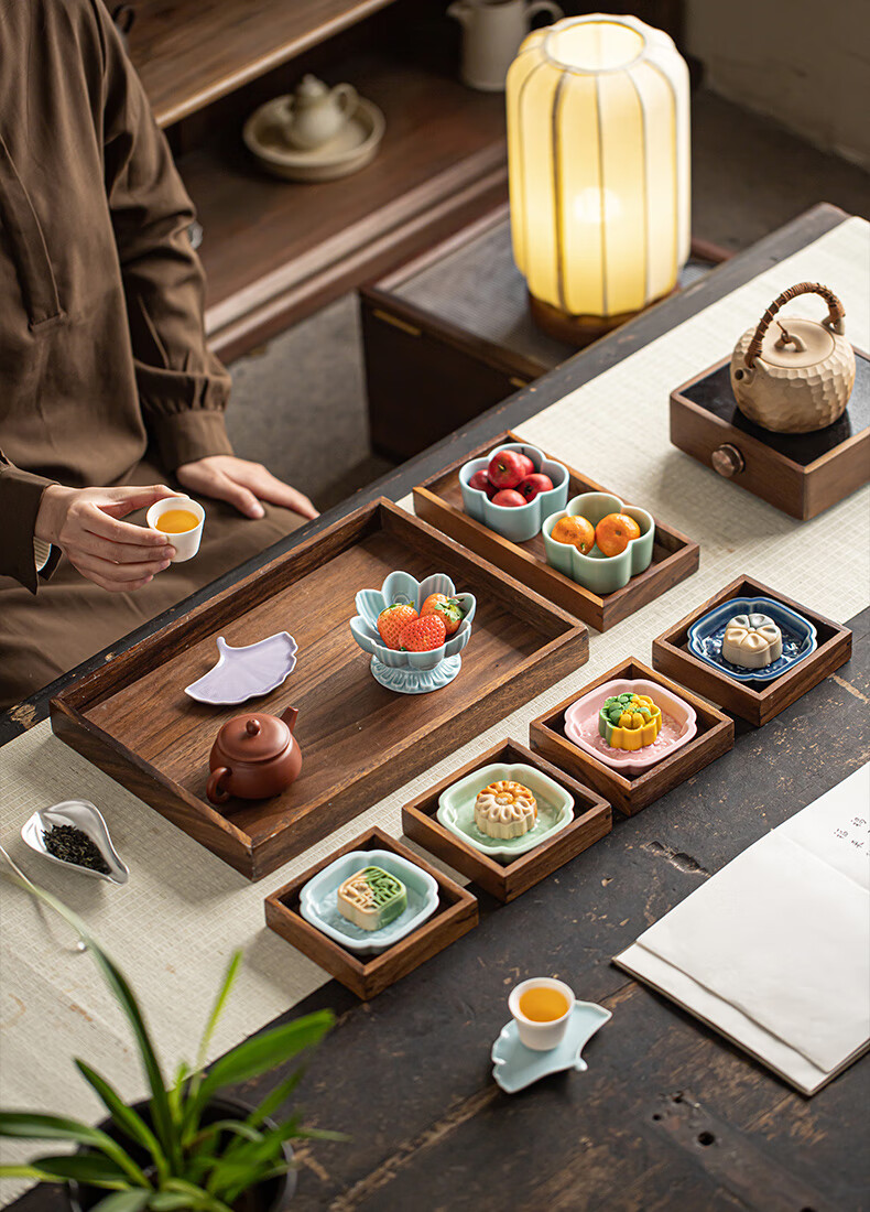 【四方山茶花小蝶】禅意茶点盘中式复古陶瓷果盘家用客厅零食盘糖果盘水果盘干果盘