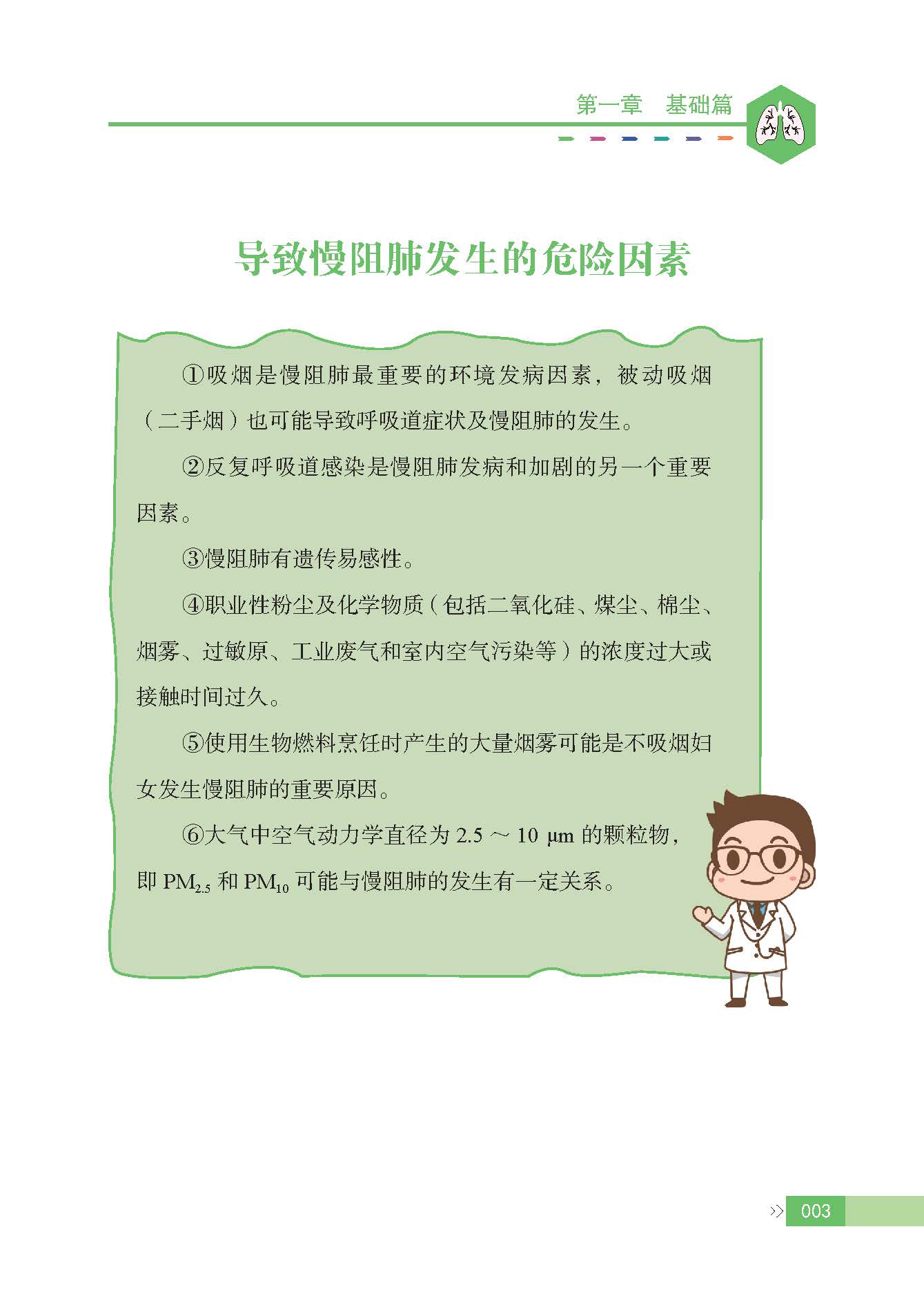 呼吸慢病的早诊、早治对减少疾病发生和延缓病程发展有着重要作用,对慢阻肺患者进行规范化管理,可有效控制病情、减缓疾病进展,使患者生活质量得到改善。在呼吸慢病管理中,降低急性加重风险、改善症状、提升生活质量,是呼吸慢病管理的重要目标。本书由国家呼吸系统疾病临床医学研究中心组织编写,内容包括慢阻肺认知的基础篇、诊断篇、治疗篇、预防篇、问答篇,以推广普及呼吸疾病医学科学知识,旨在提供科学、专业的信息,指导慢阻肺疾病患者在自我健康管理方面采取更加积极的措施,预防和减少并发症的发生。可读性和实用性强,是一本既适合大众的优秀科普读物。