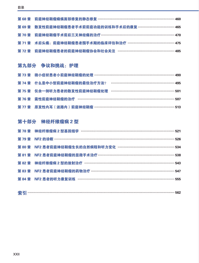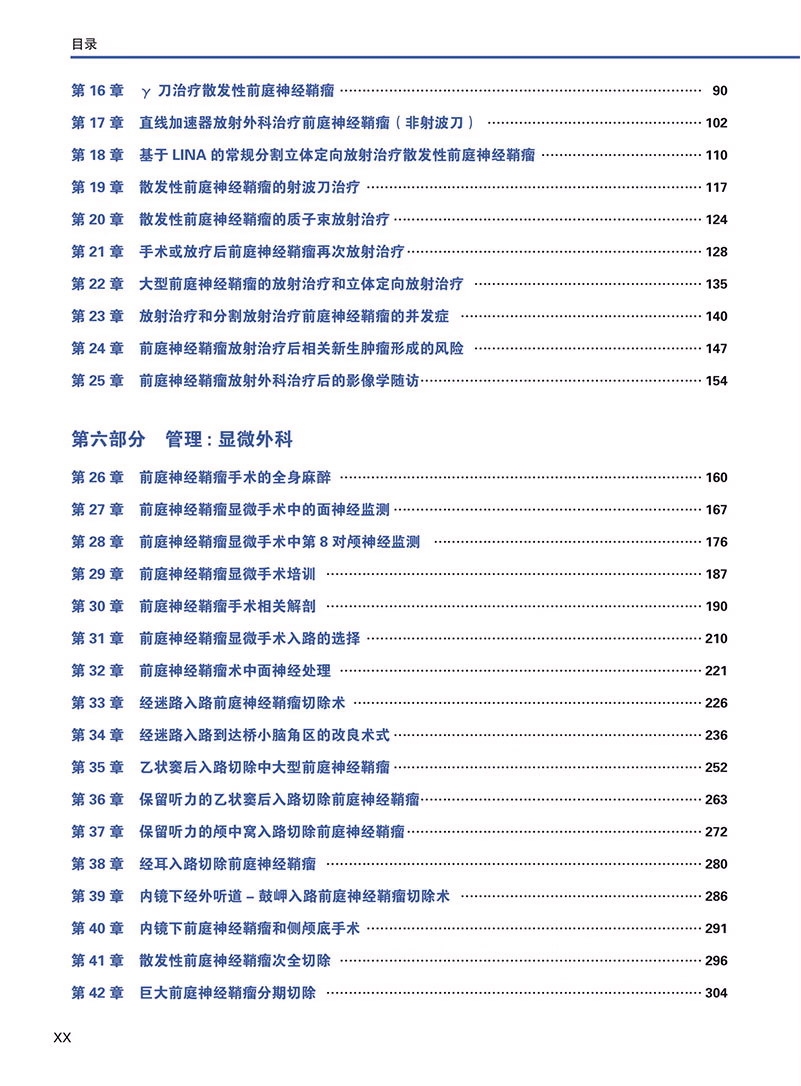 包括耳鼻喉科医生、神经 外科医生、放射肿瘤学家 、神经病学家、神经放射 学家和听力学家在内的多 学科专家撰写的84章,确 保了对散发性和神经纤维 瘤病2型相关前庭神经鞘瘤 的所有治疗模式的平衡观 点。