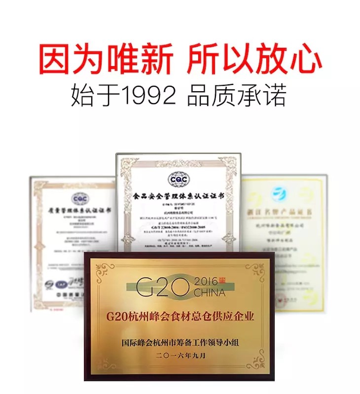唯新食品始于1992年,品质承诺。