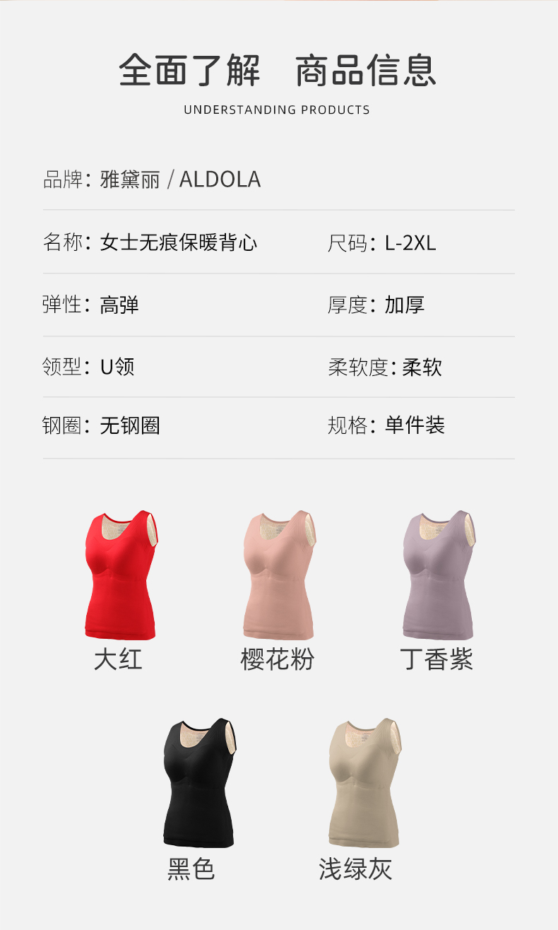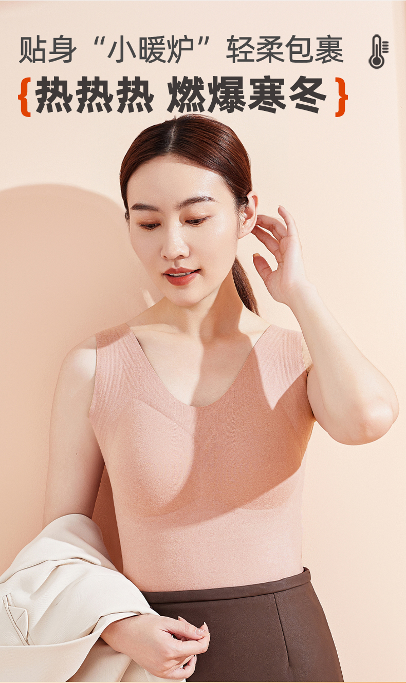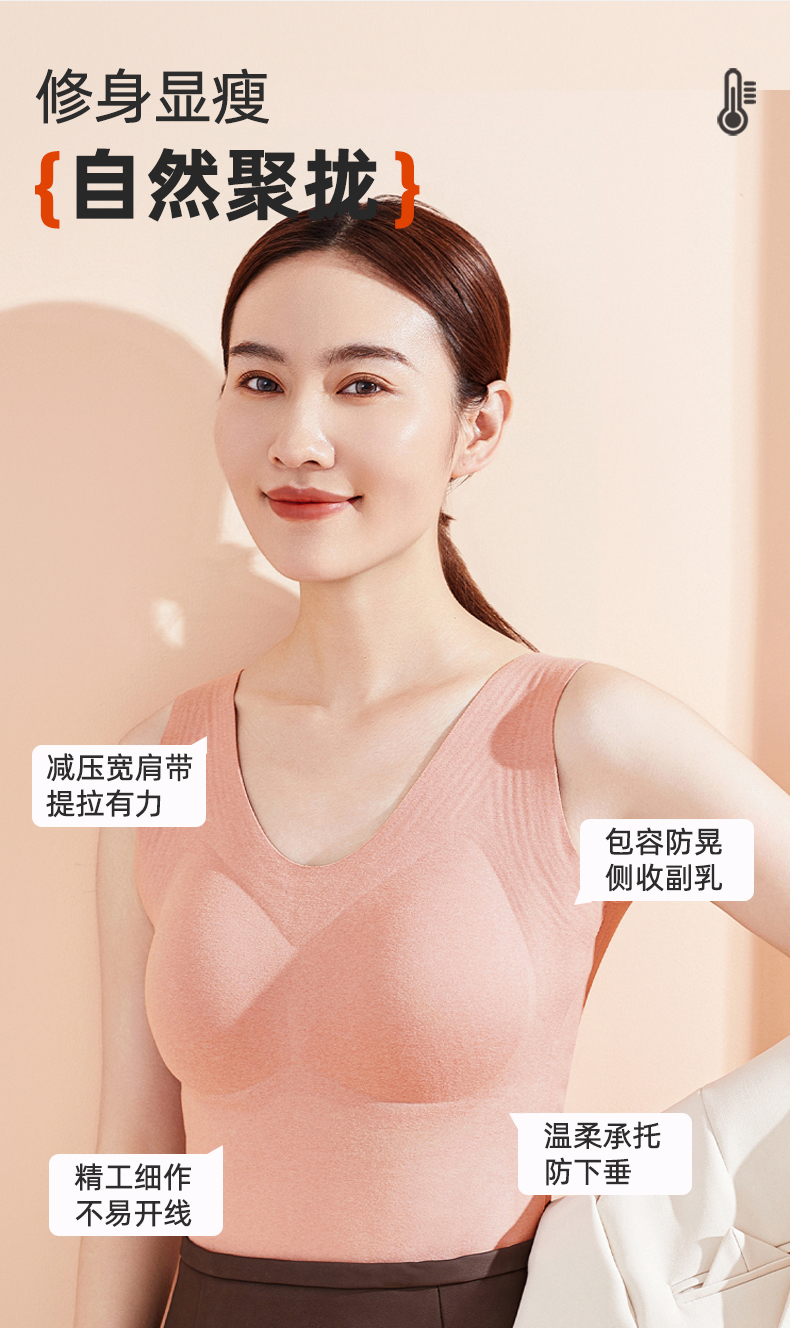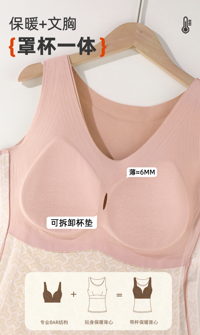 雅黛丽保暖背心免穿文胸含绵羊毛夹层填充上衣马甲舒适显瘦打底衫