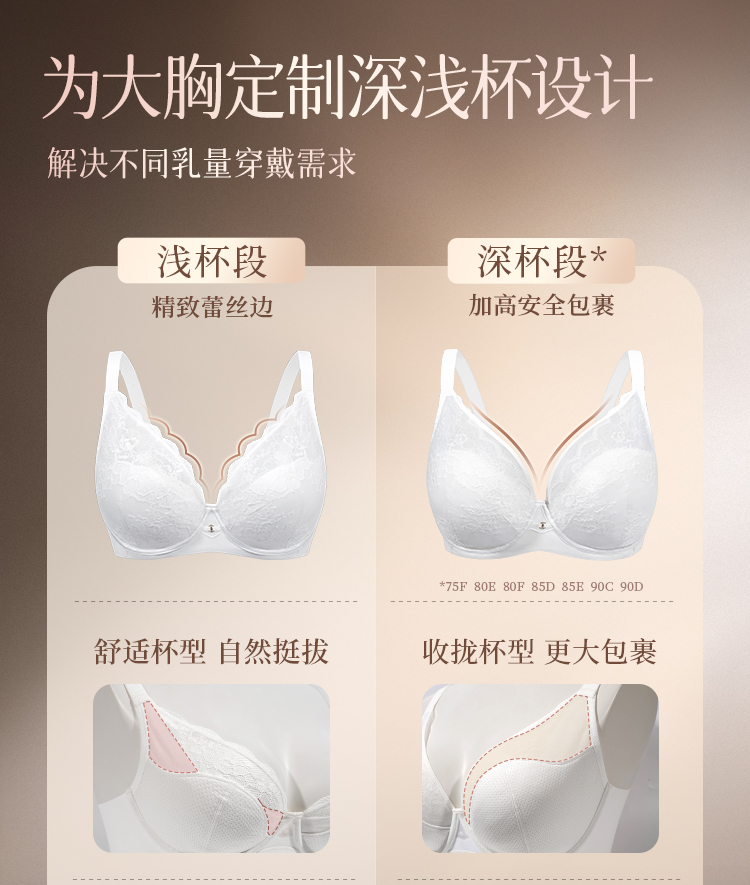 【买三免一】奶糖派大胸显小花托杯胸型圆润蕾丝全罩杯内衣大码显瘦文胸女胸罩