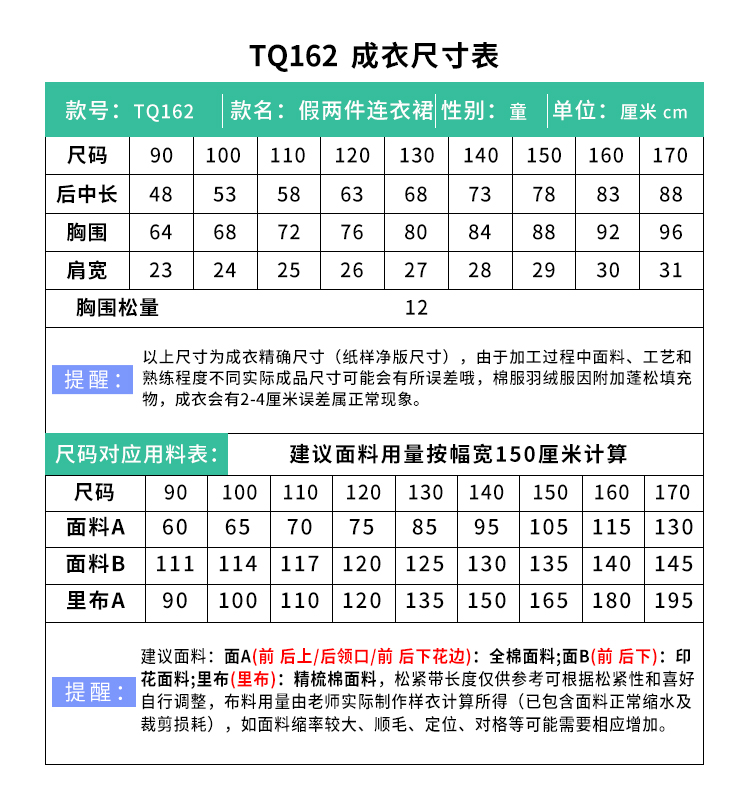 裁缝学苑TQ162女童花苞裙假两件式撞色拼接连衣裙纸样儿童无袖裙子样板