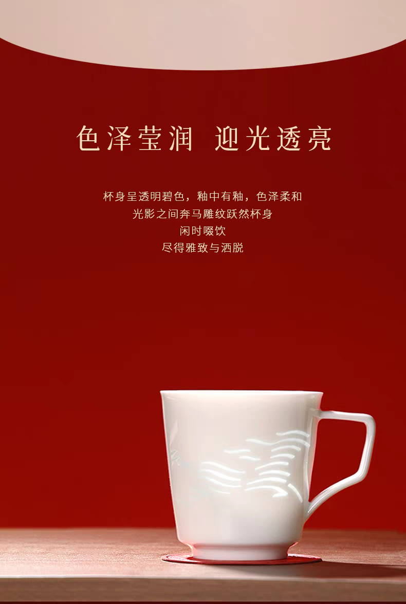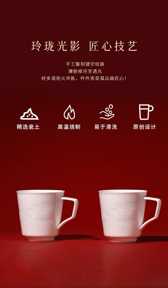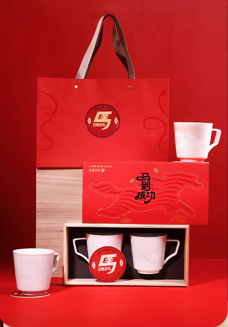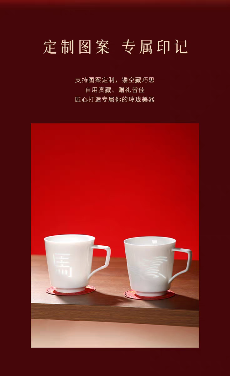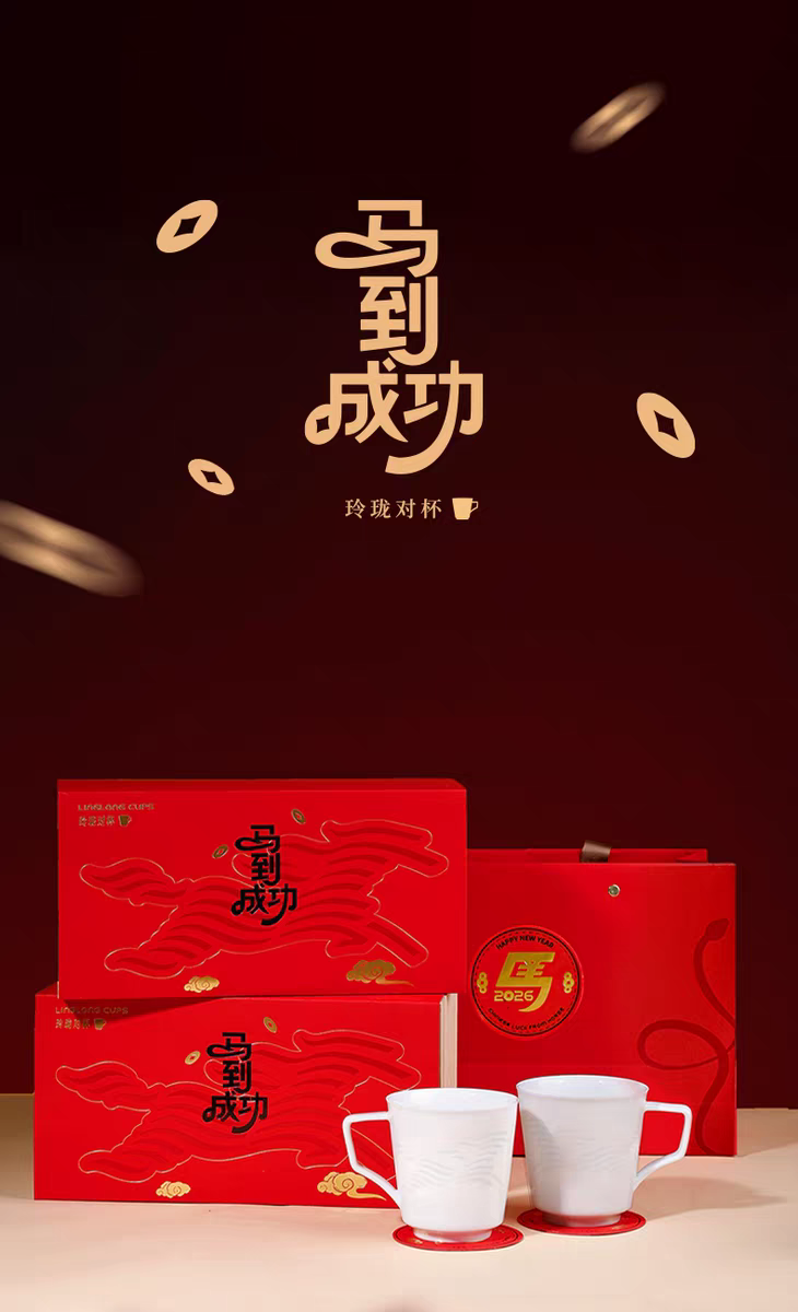 杭州西湖景区马到成功玲珑对杯马年新年春节送礼玲珑瓷茶具