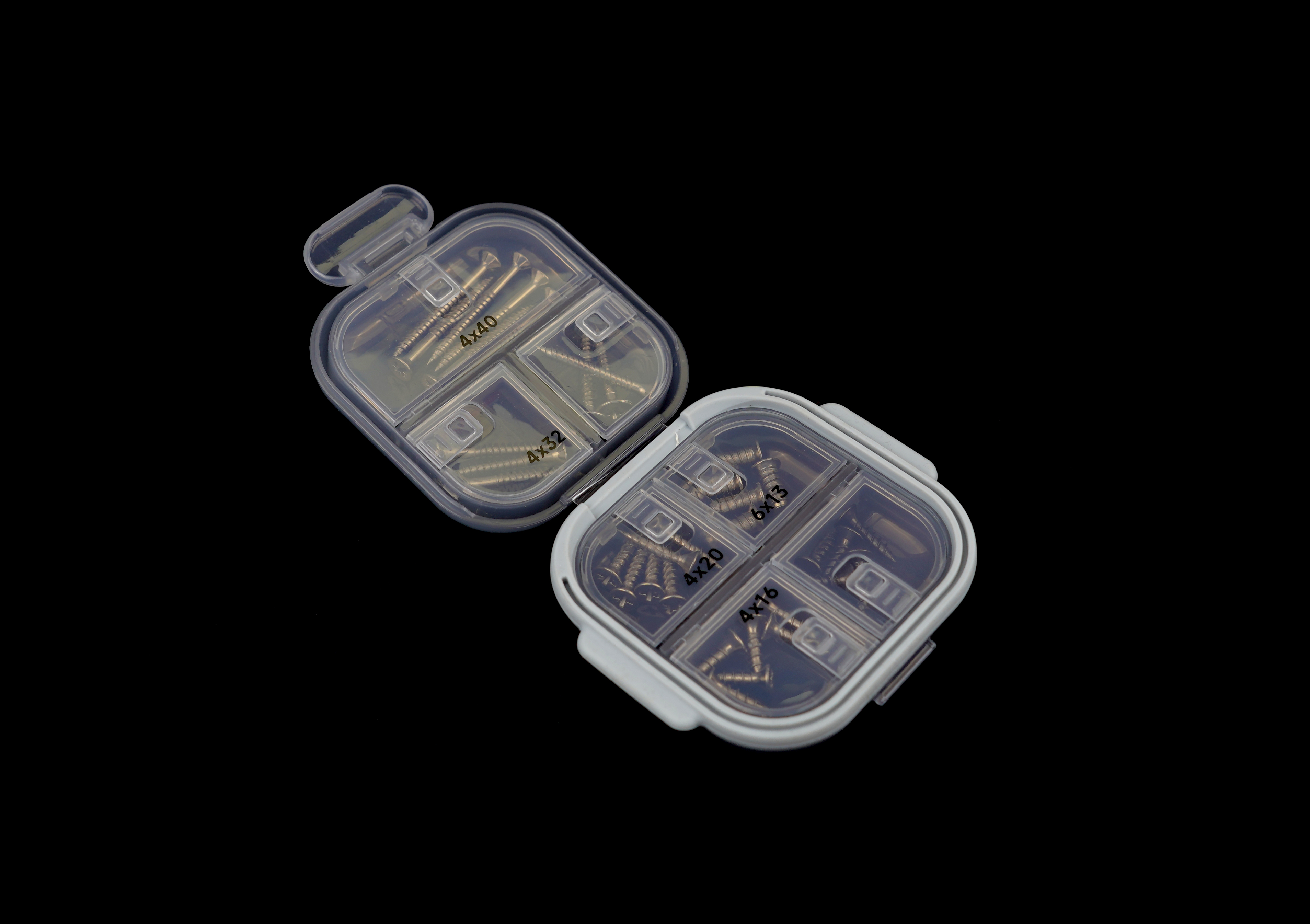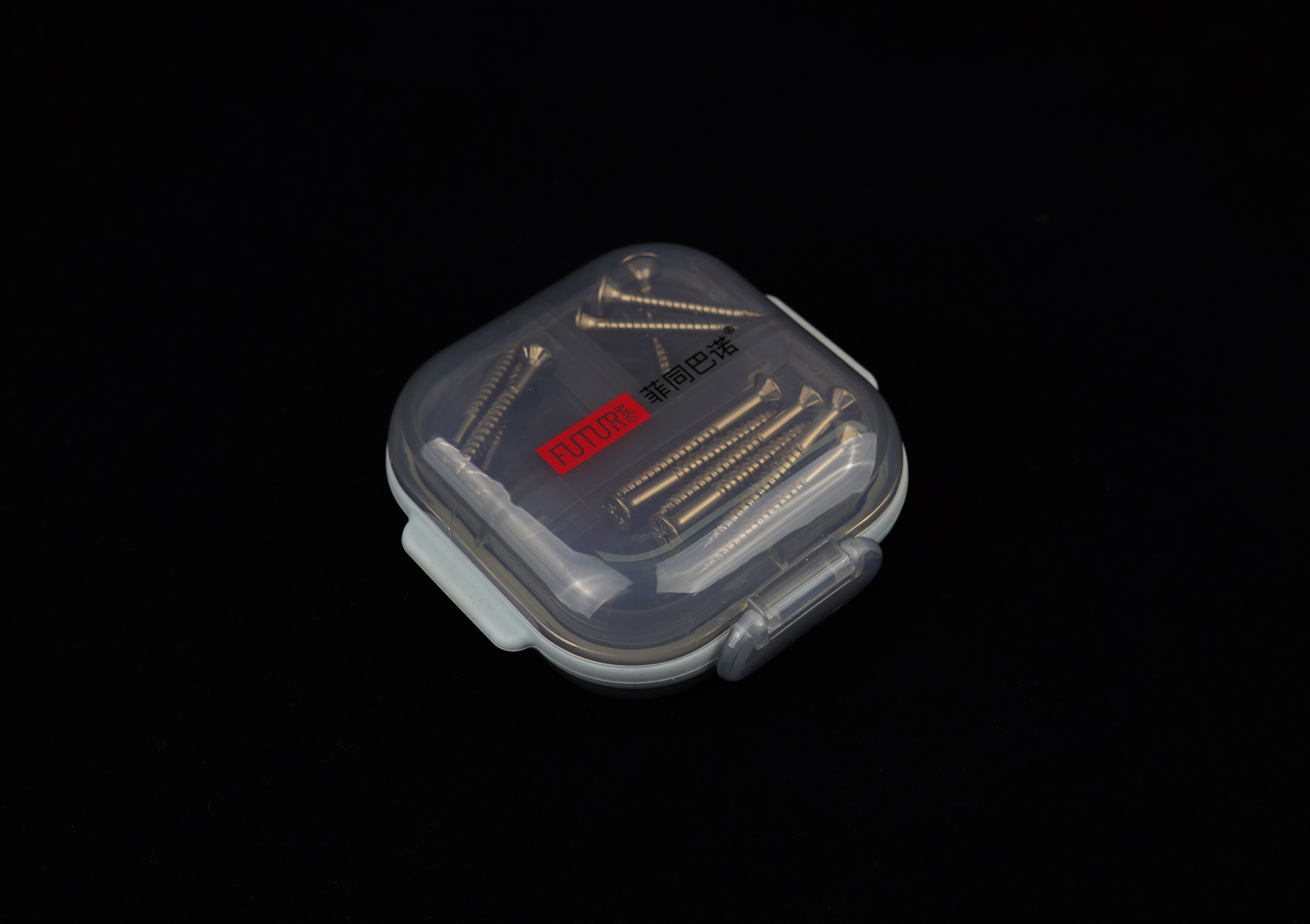 用途:用于一个圆润、半透的PP盒,集中展示全屋定制安装经常使用的7种不同规格螺丝产品