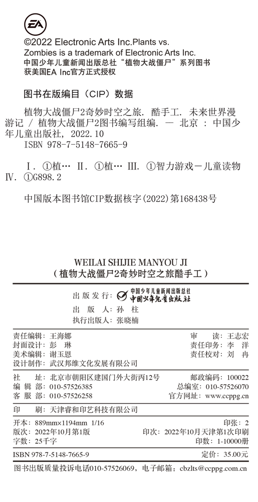 作者简介:植物大战僵尸2图书编写组是中国少年儿童新闻出版总社在获得美国宝开游戏公司官方授权之后组建的编辑团队。已编辑出版“植物大战僵尸游戏书系列”“植物大战僵尸立体酷拼插系列”“植物大战僵尸立体玩偶拼插系列”等。