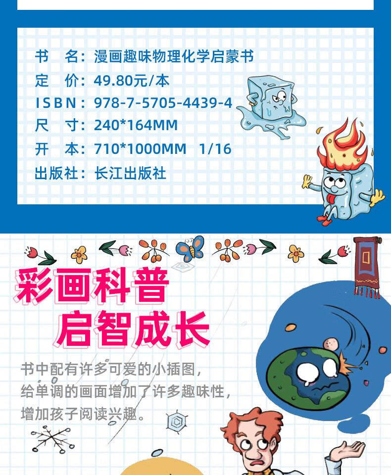 漫画趣味物理化学启蒙书漫画版 儿童趣味百科全书物理化学启蒙漫画书化学和物理入门一本通科普小学初中小四门知识点必背人教版