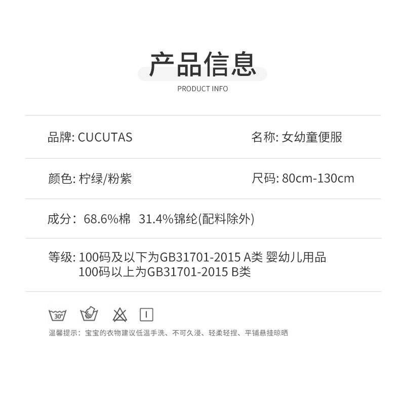 Cucutas女幼童便服CY25SPW725柠绿(90#-130#)
