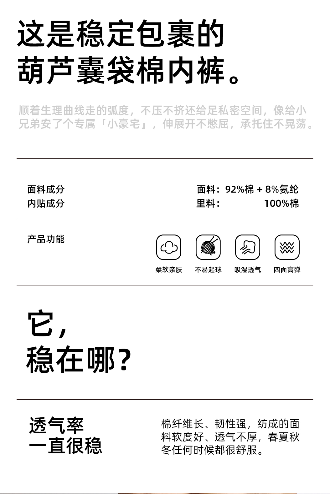【春季上新】100% 长绒棉内裤 · 60s 四季款棉内裤