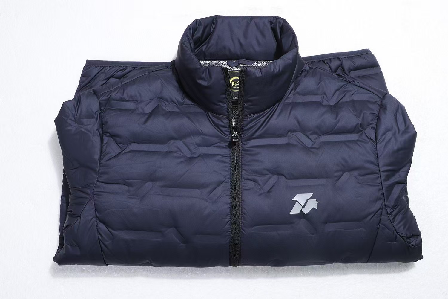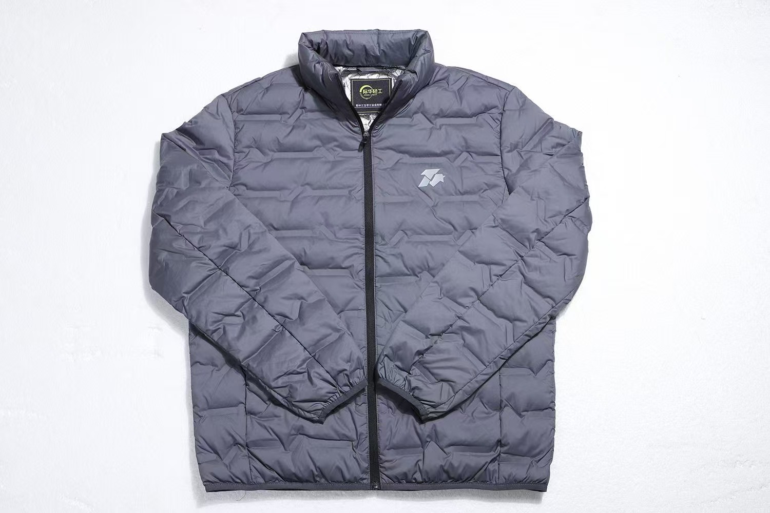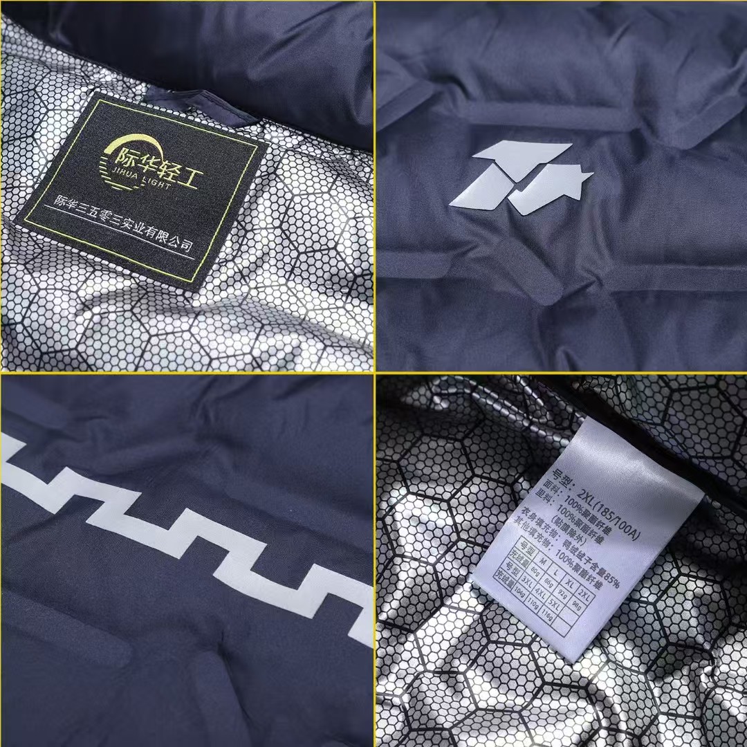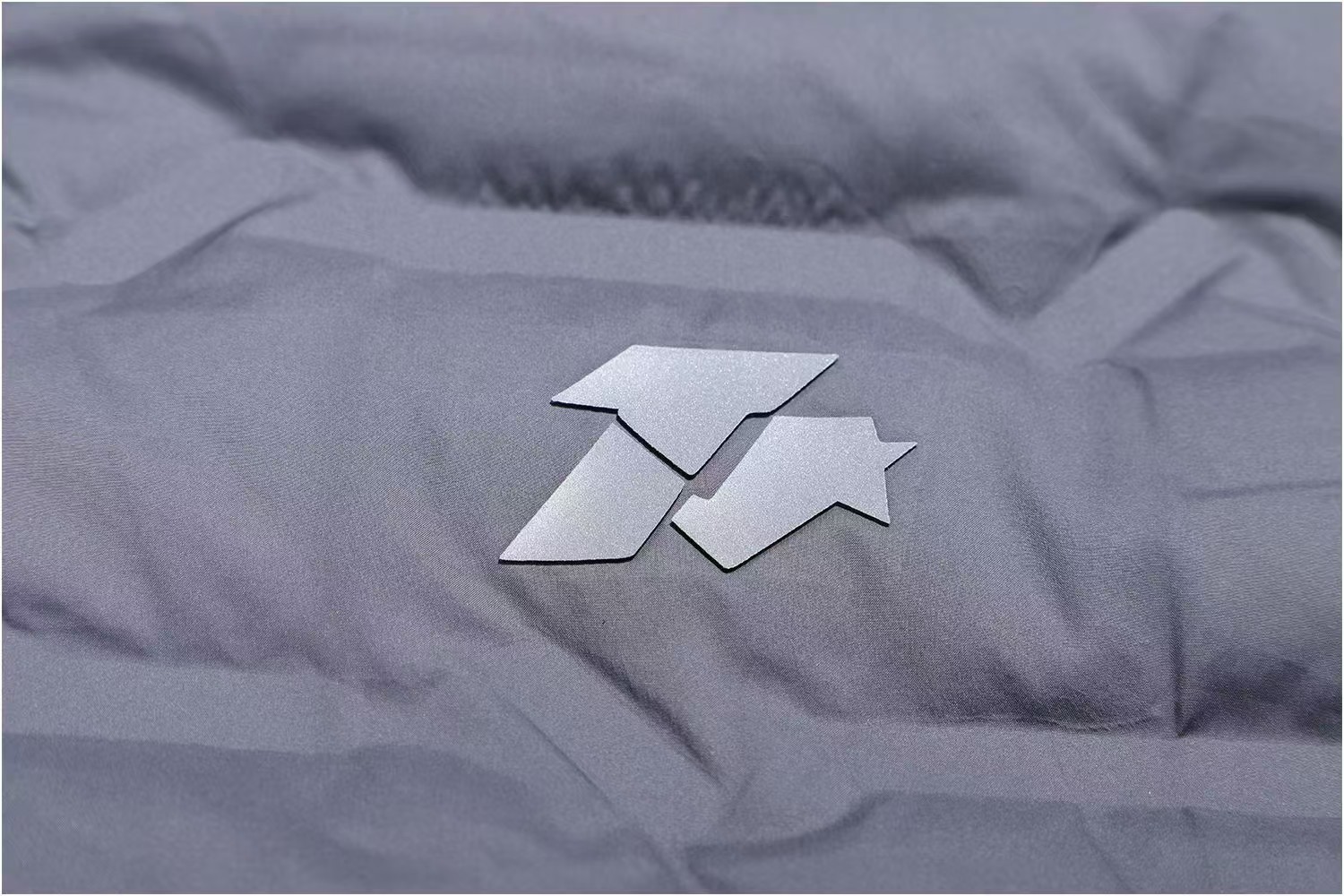 胸前硅胶反光标+后背硅胶反光长城图案,85%鸭绒填充内里石墨烯