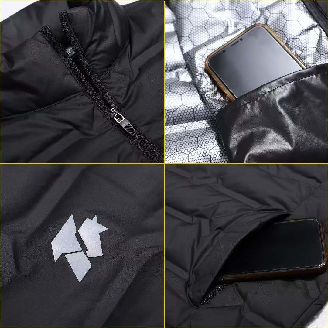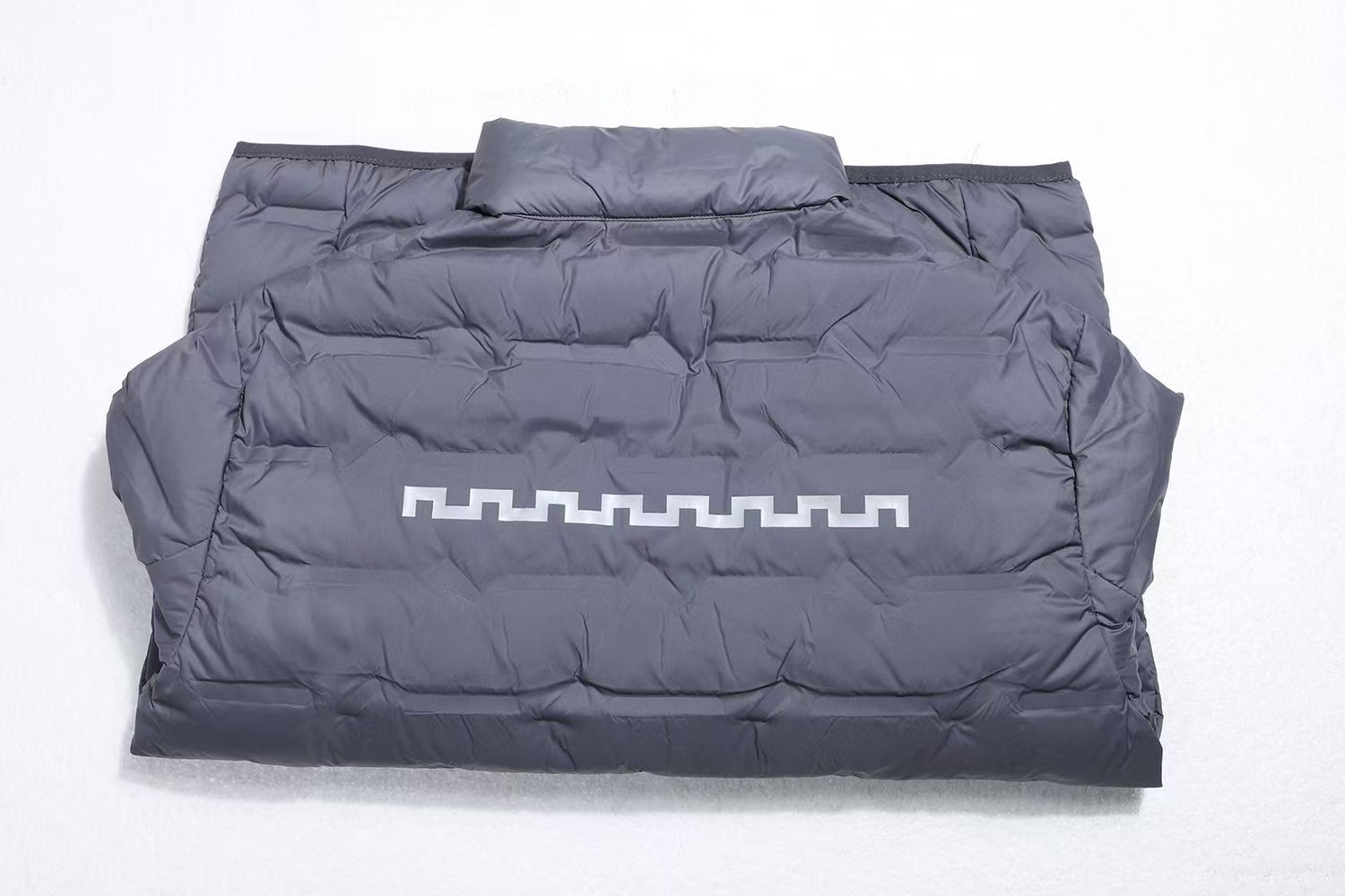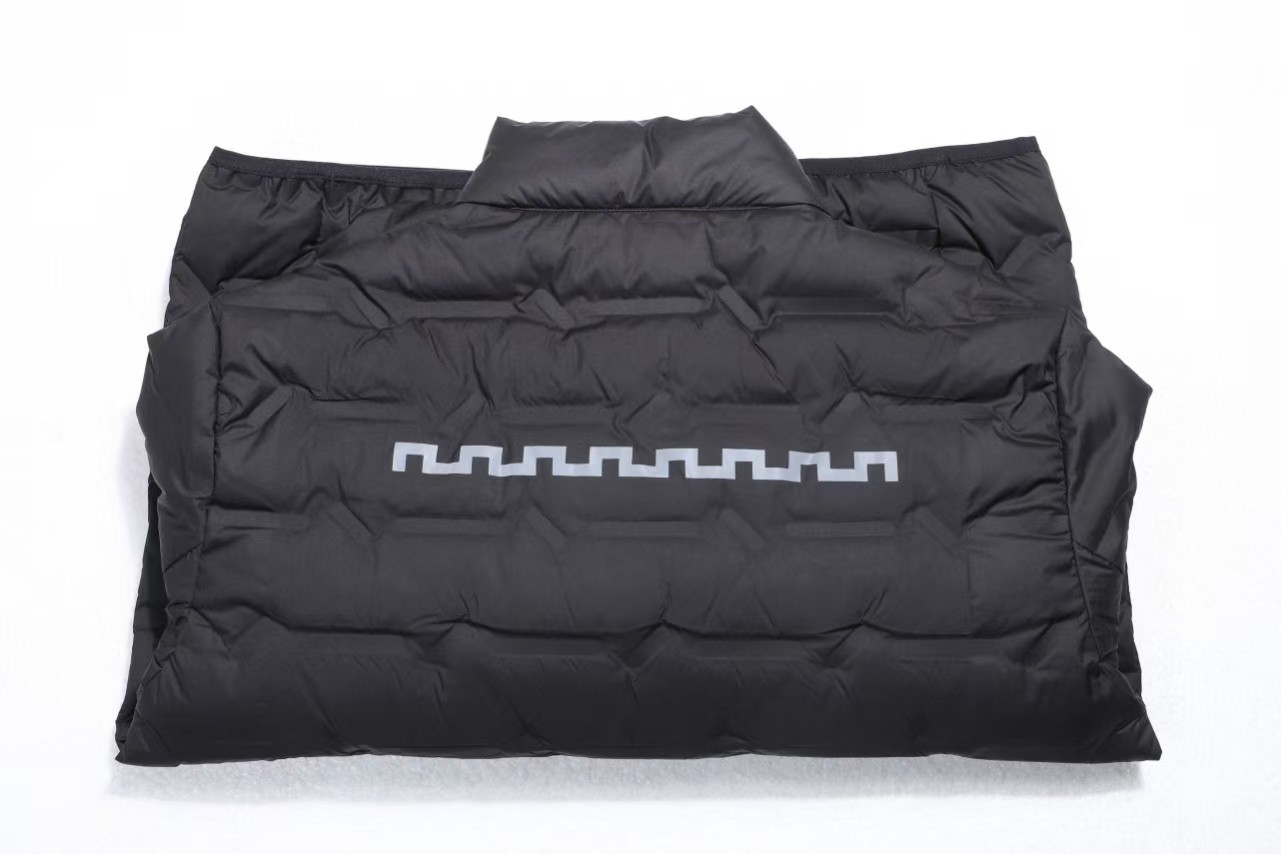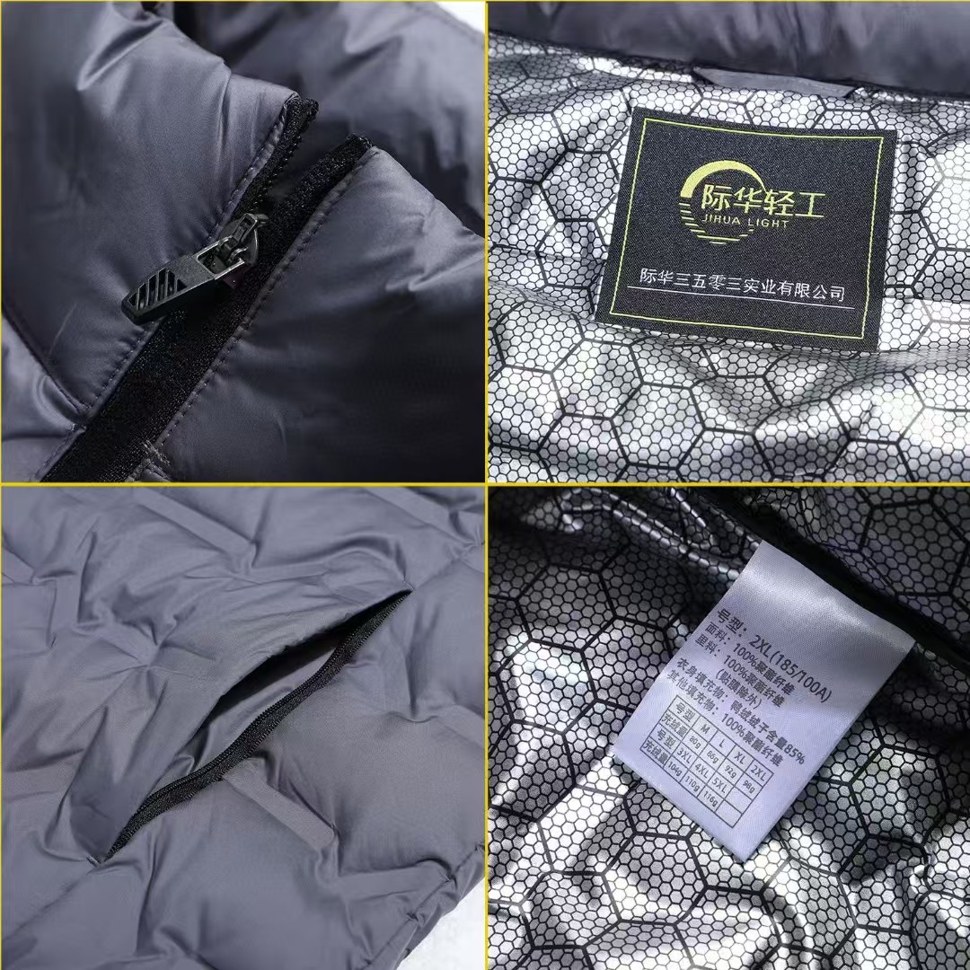 胸前硅胶反光标+后背硅胶反光长城图案,85%鸭绒填充内里石墨烯