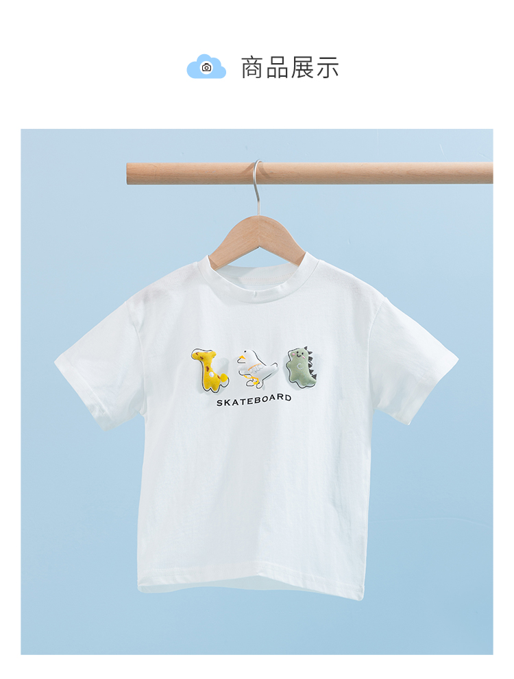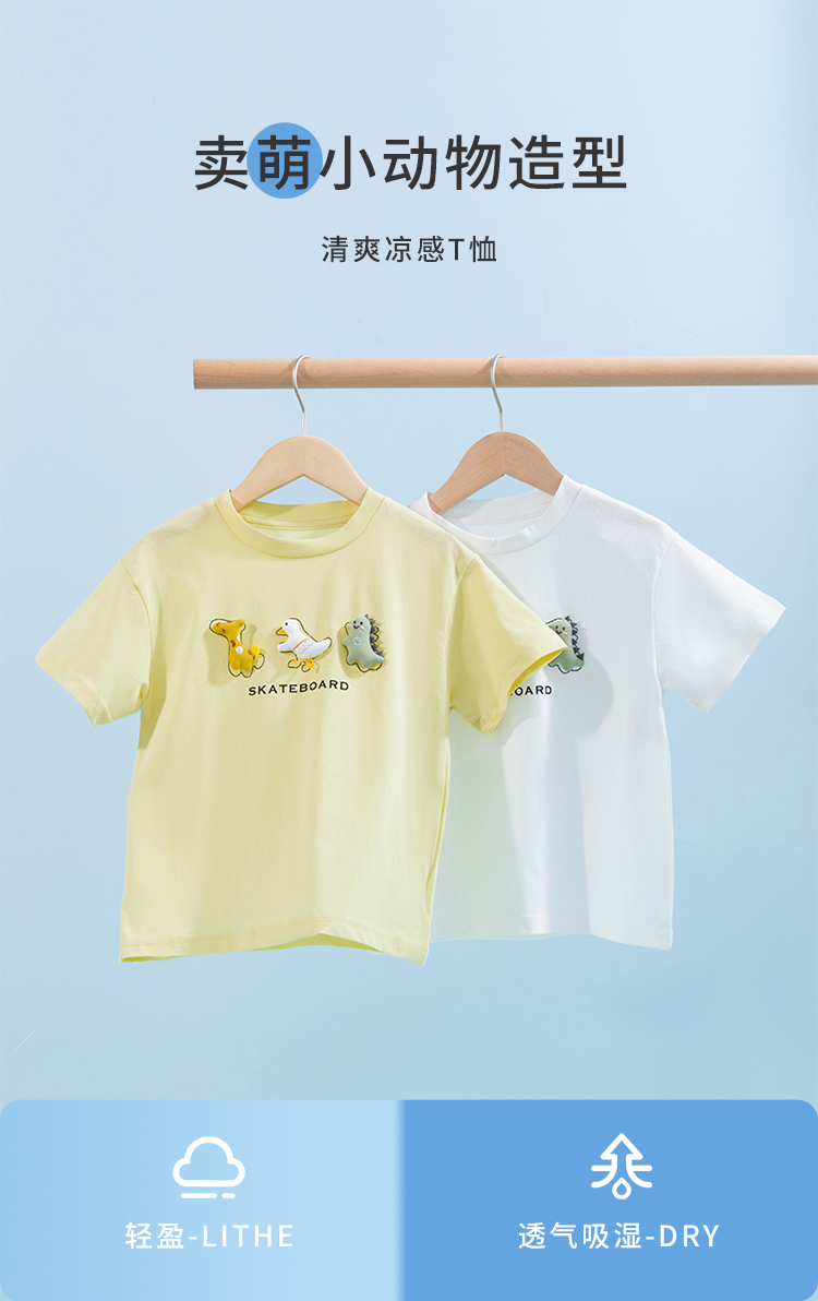 贝贝怡童装男童清爽凉感T恤夏季新款卡通印花短袖男宝宝休闲上衣