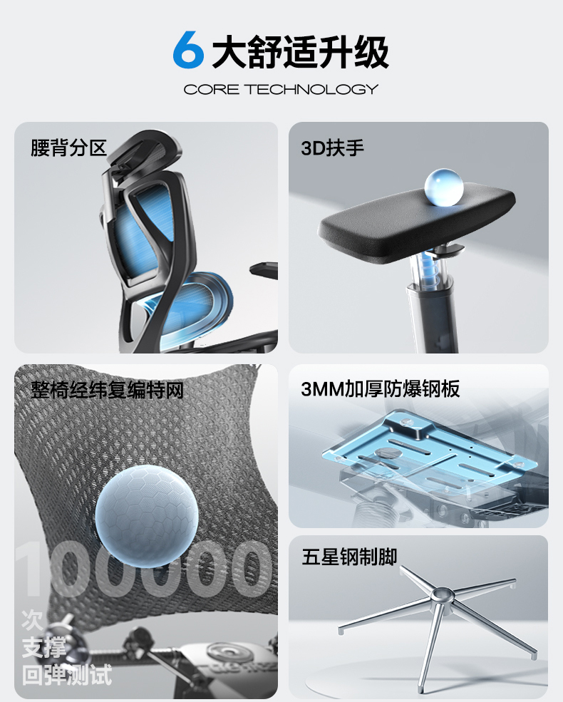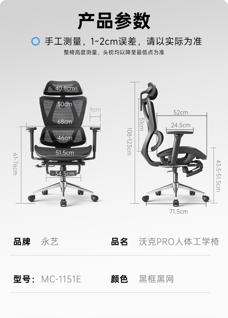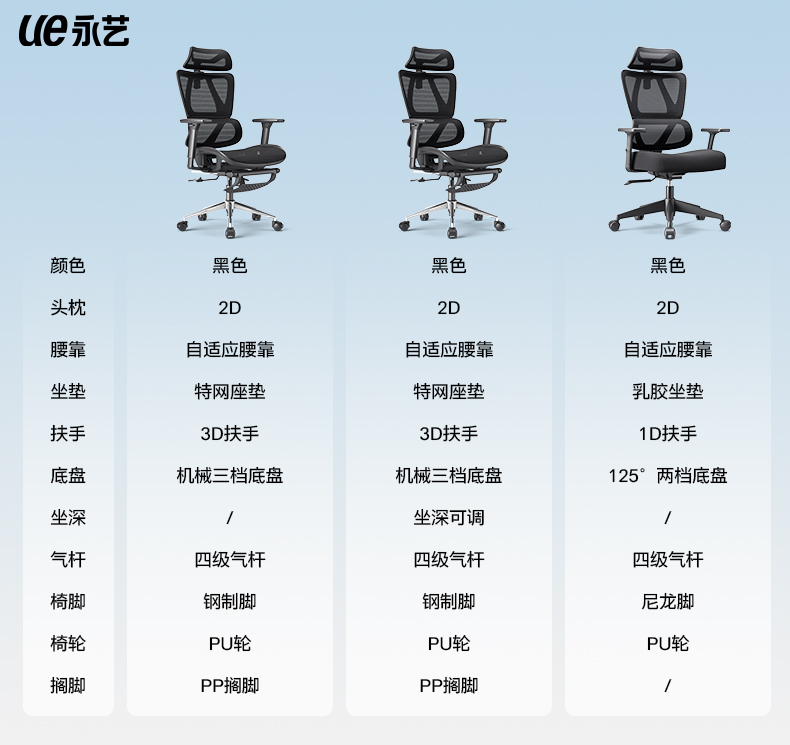 永艺沃克PRO高配系列(【黑色全网椅】-【带搁脚】-【3D扶手】 【黑色全网椅】-【带搁脚】-【3D扶手】-【带坐深】
