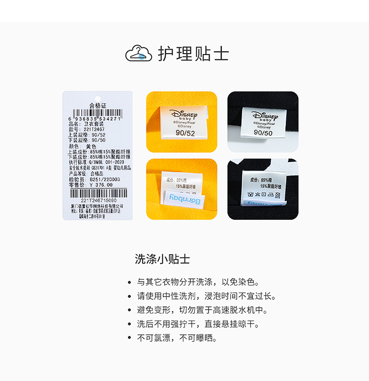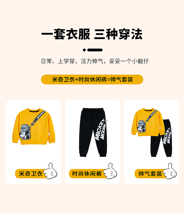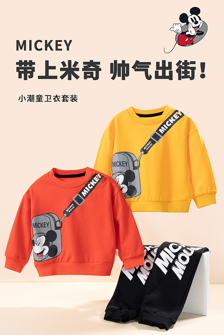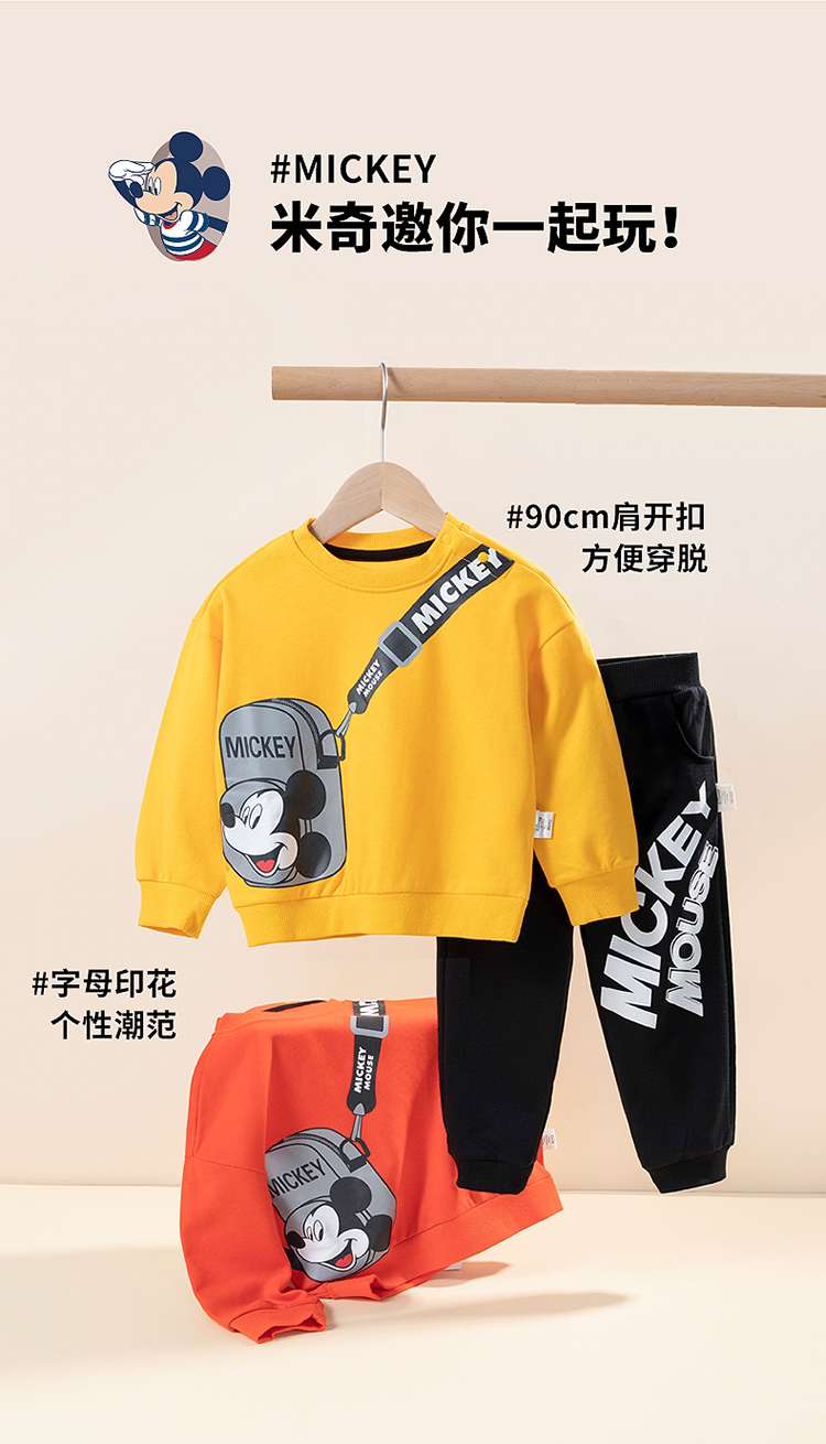 贝贝怡童装儿童套装迪士尼联名米奇时尚可爱男童两件套221T2467