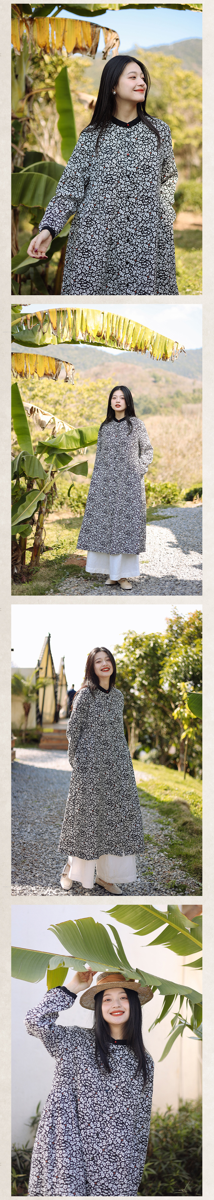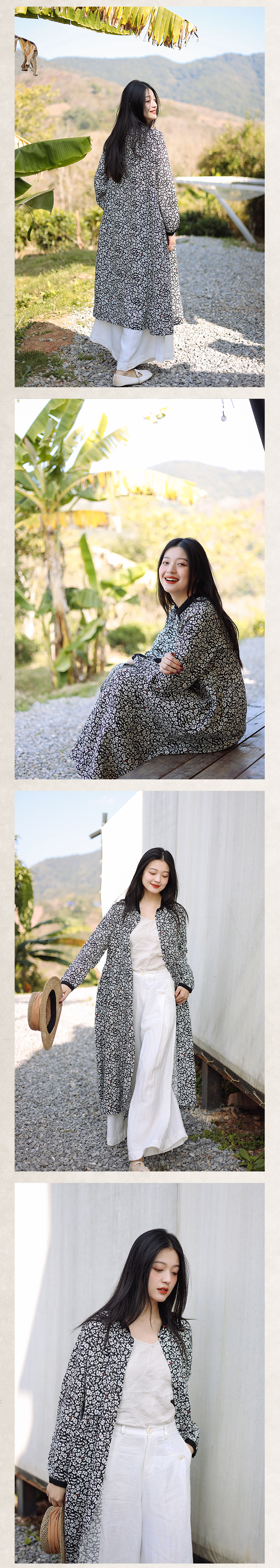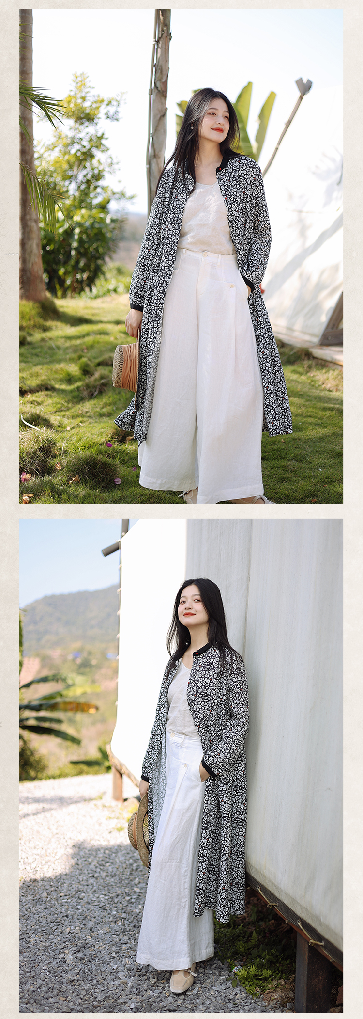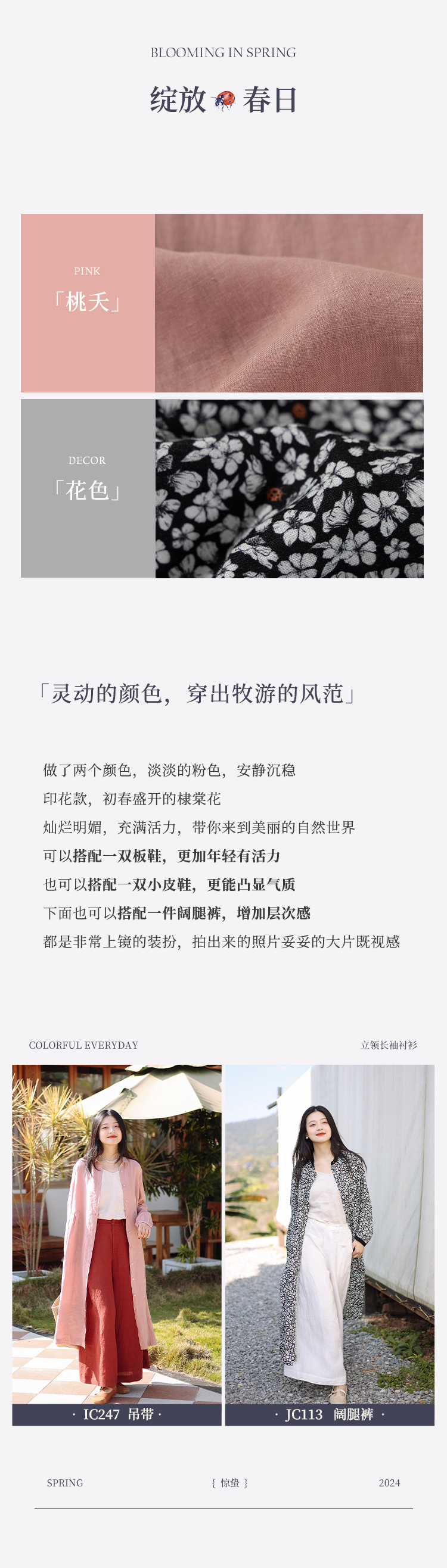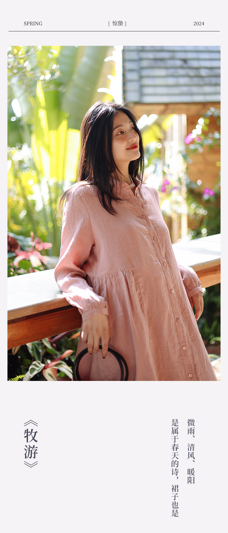 绽放098朵/桃夭两穿风衣连衣裙高端砂洗亚麻翻领显瘦长袖棉麻裙子