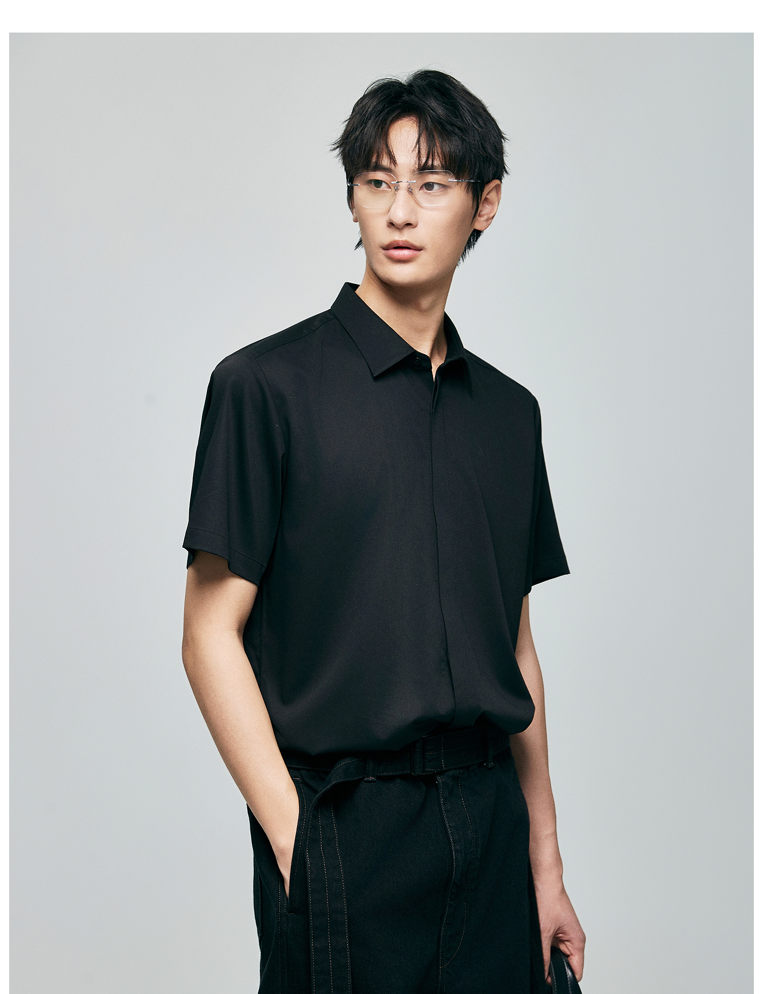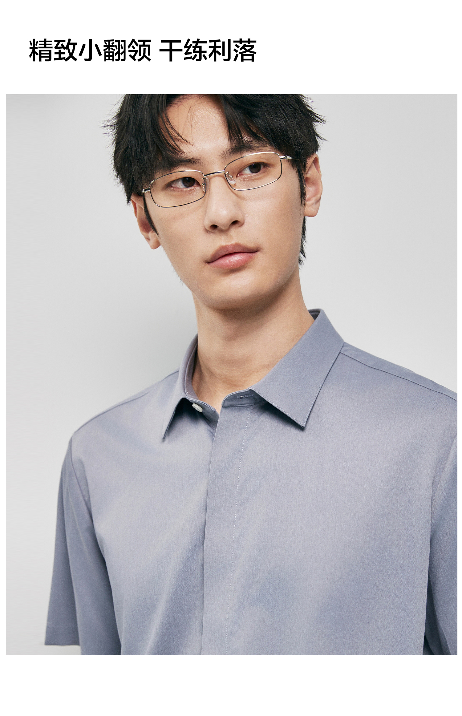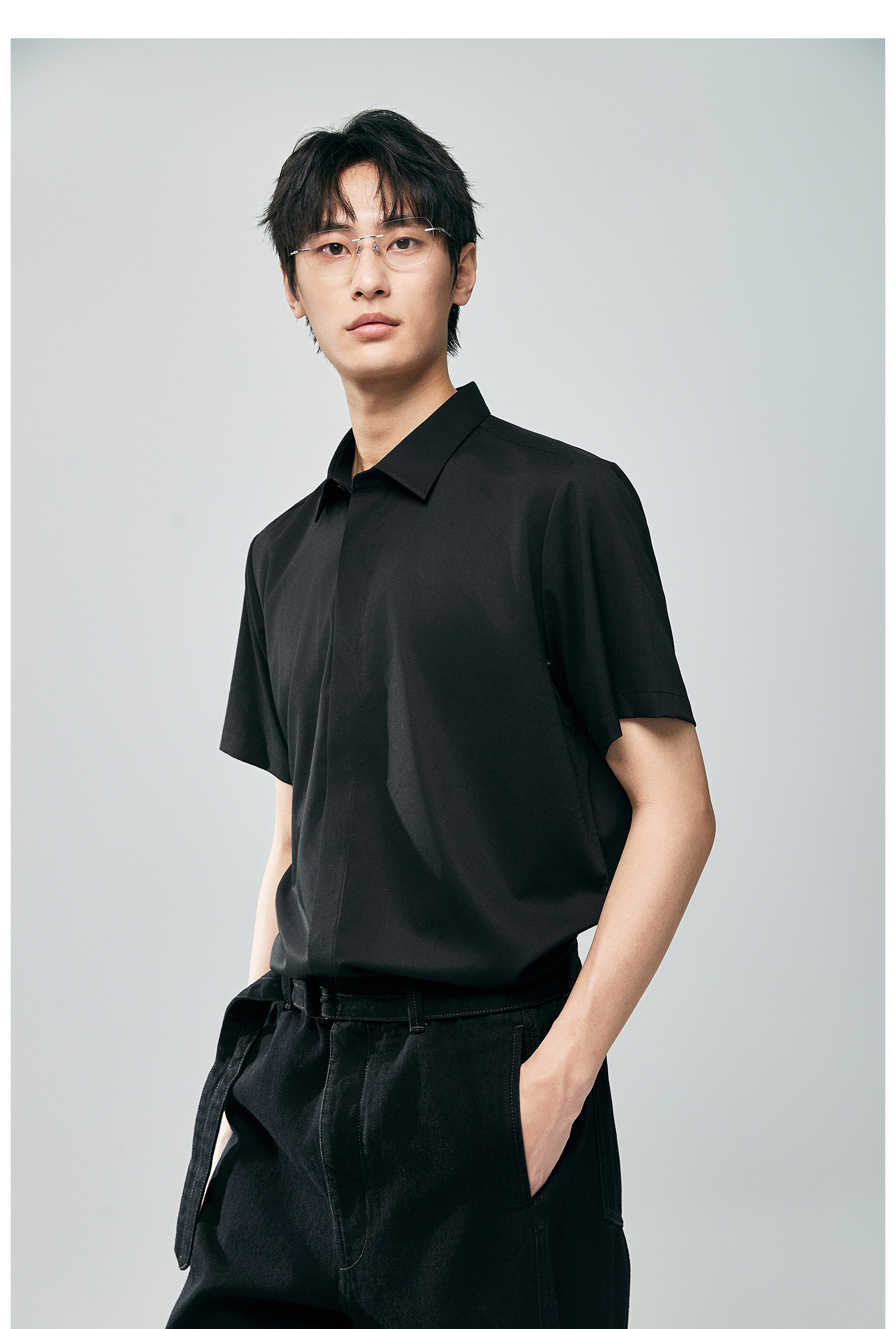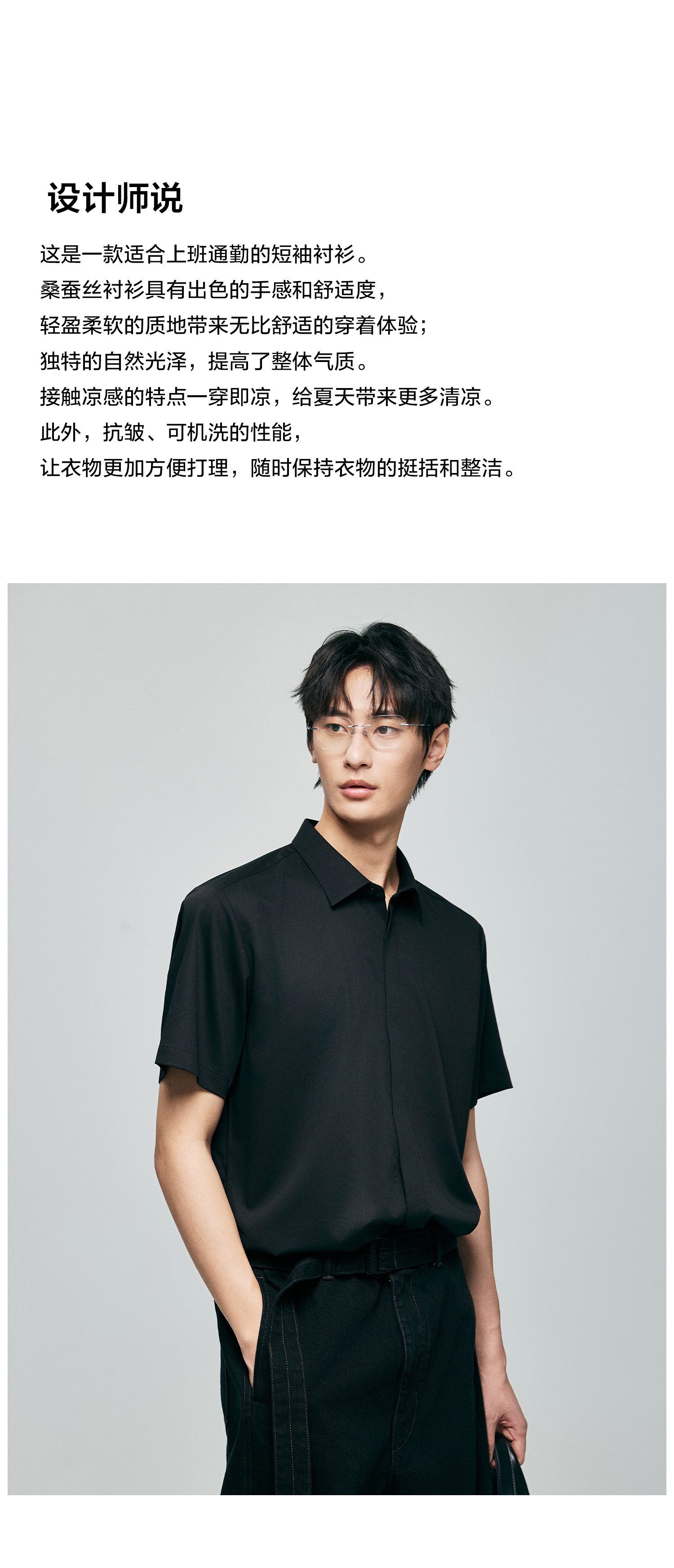 棉仓363804005-正肩桑蚕丝竹纤维暗门襟翻领短袖衬衫