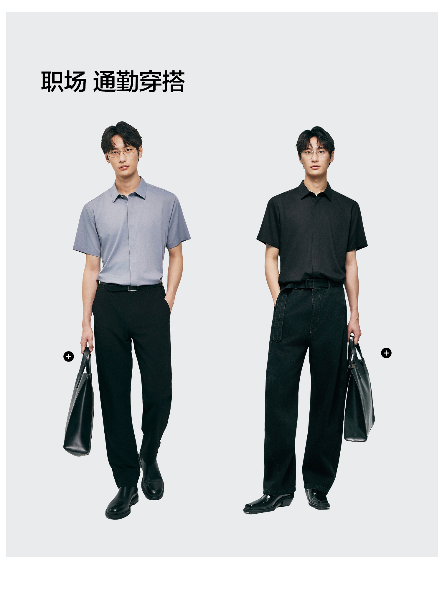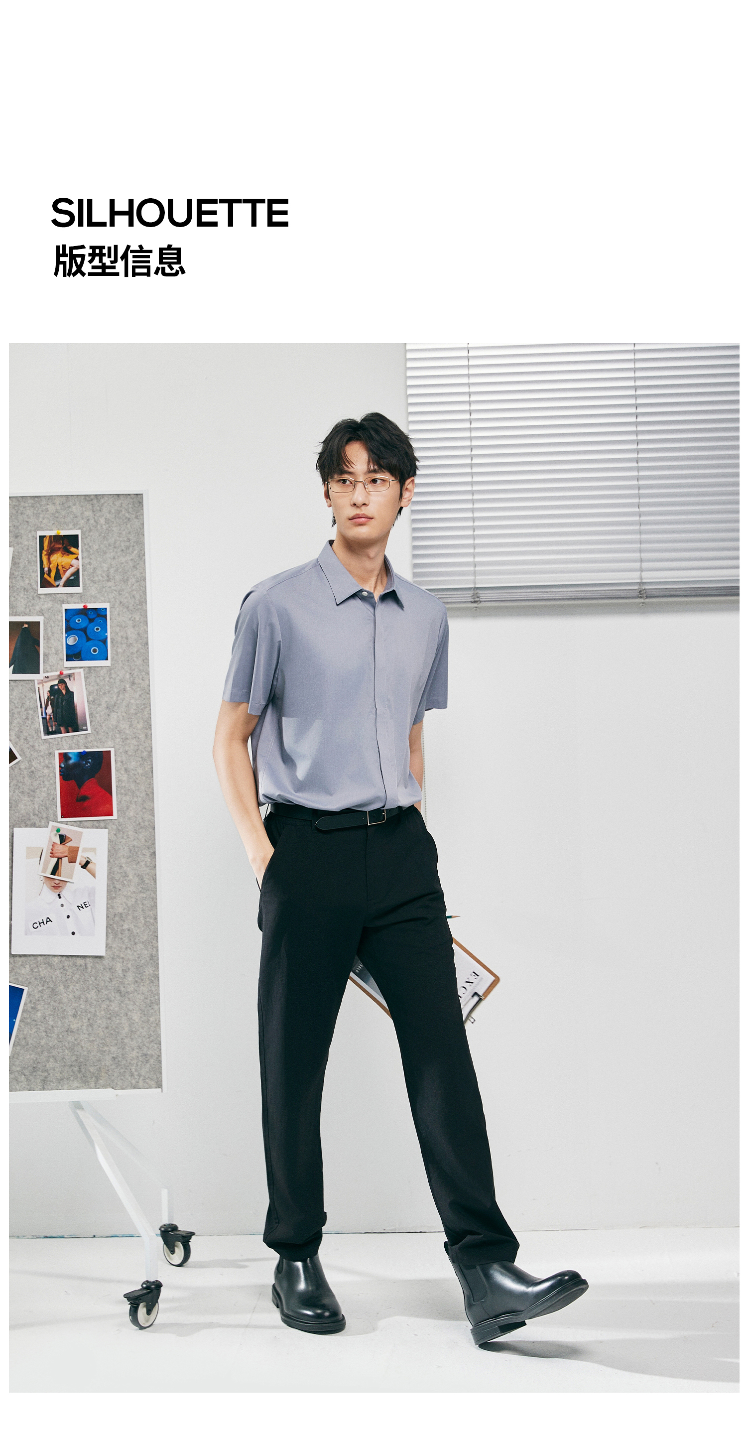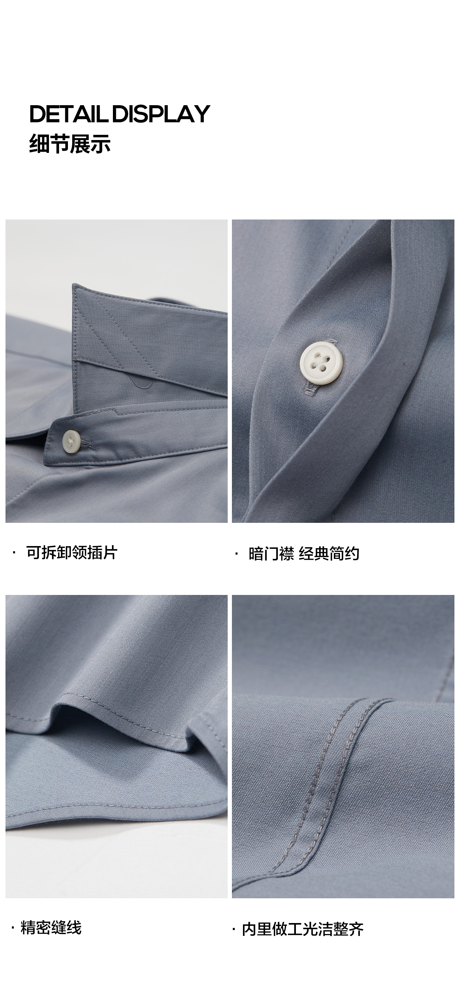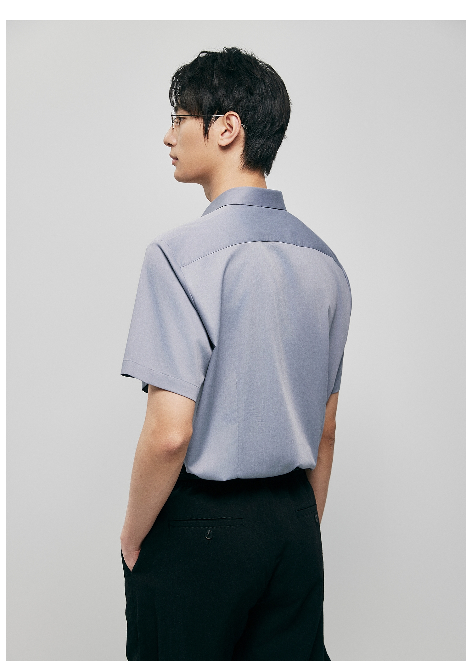 棉仓363804005-正肩桑蚕丝竹纤维暗门襟翻领短袖衬衫