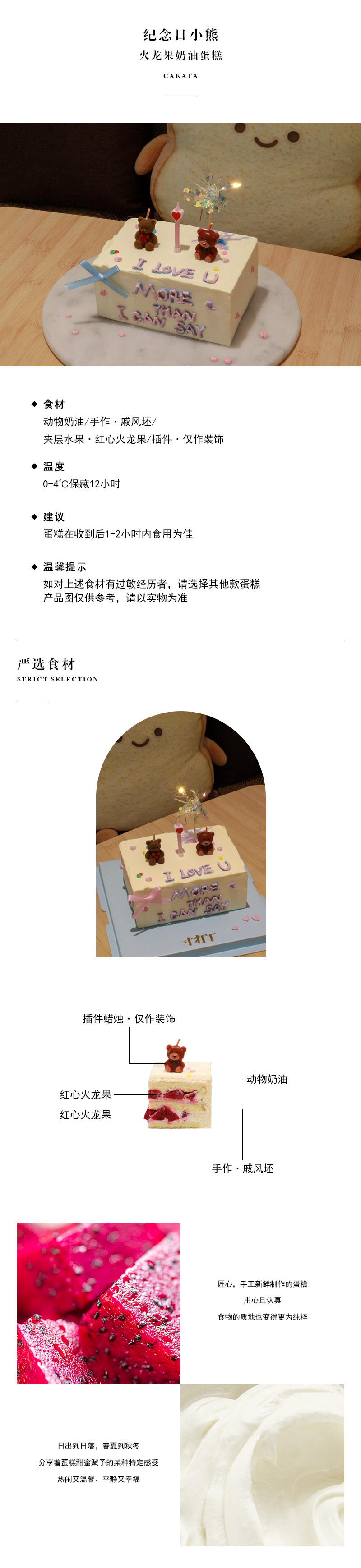纪念日小熊·火龙果奶油蛋糕(可备注少糖)