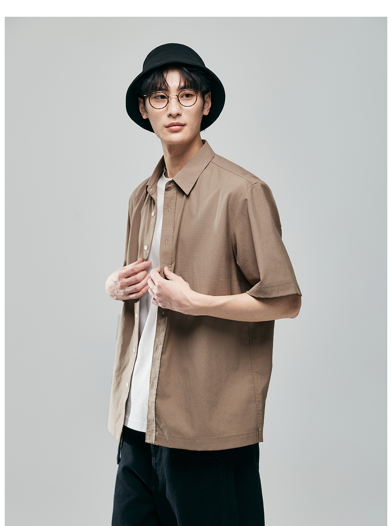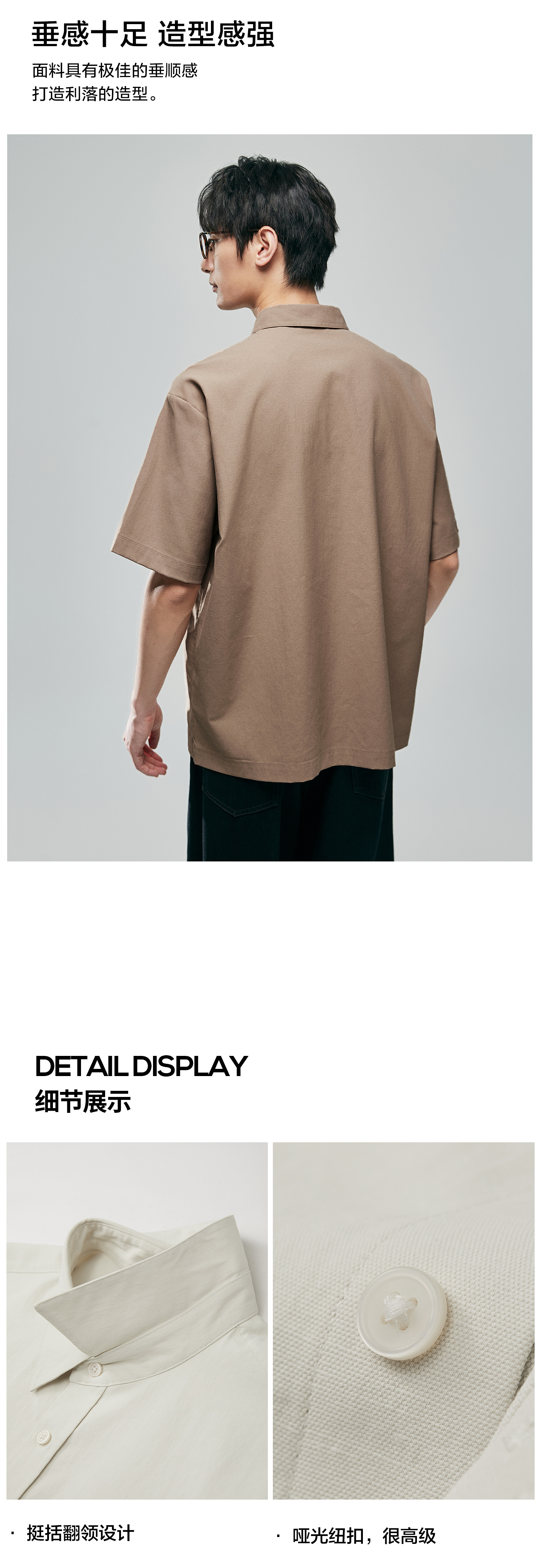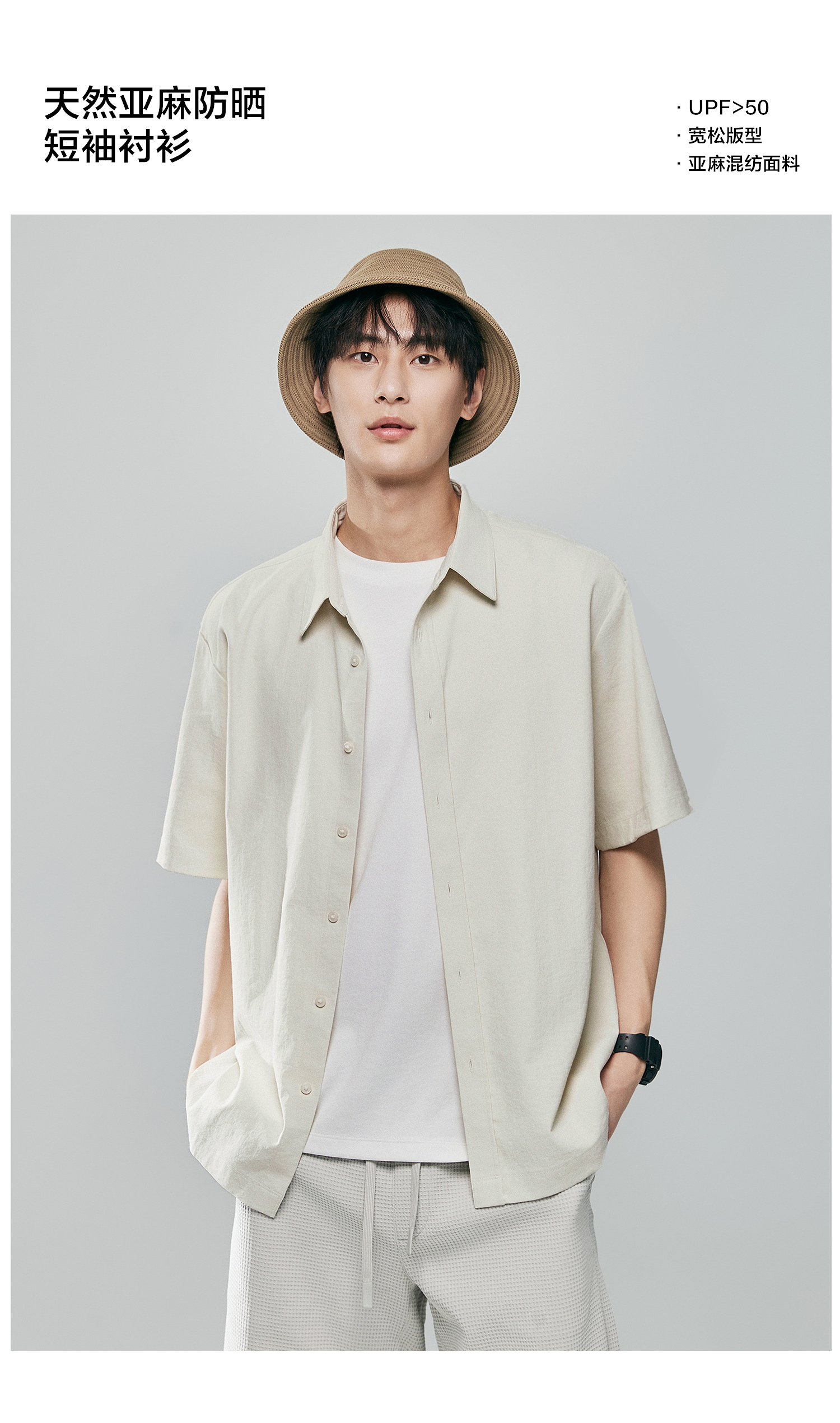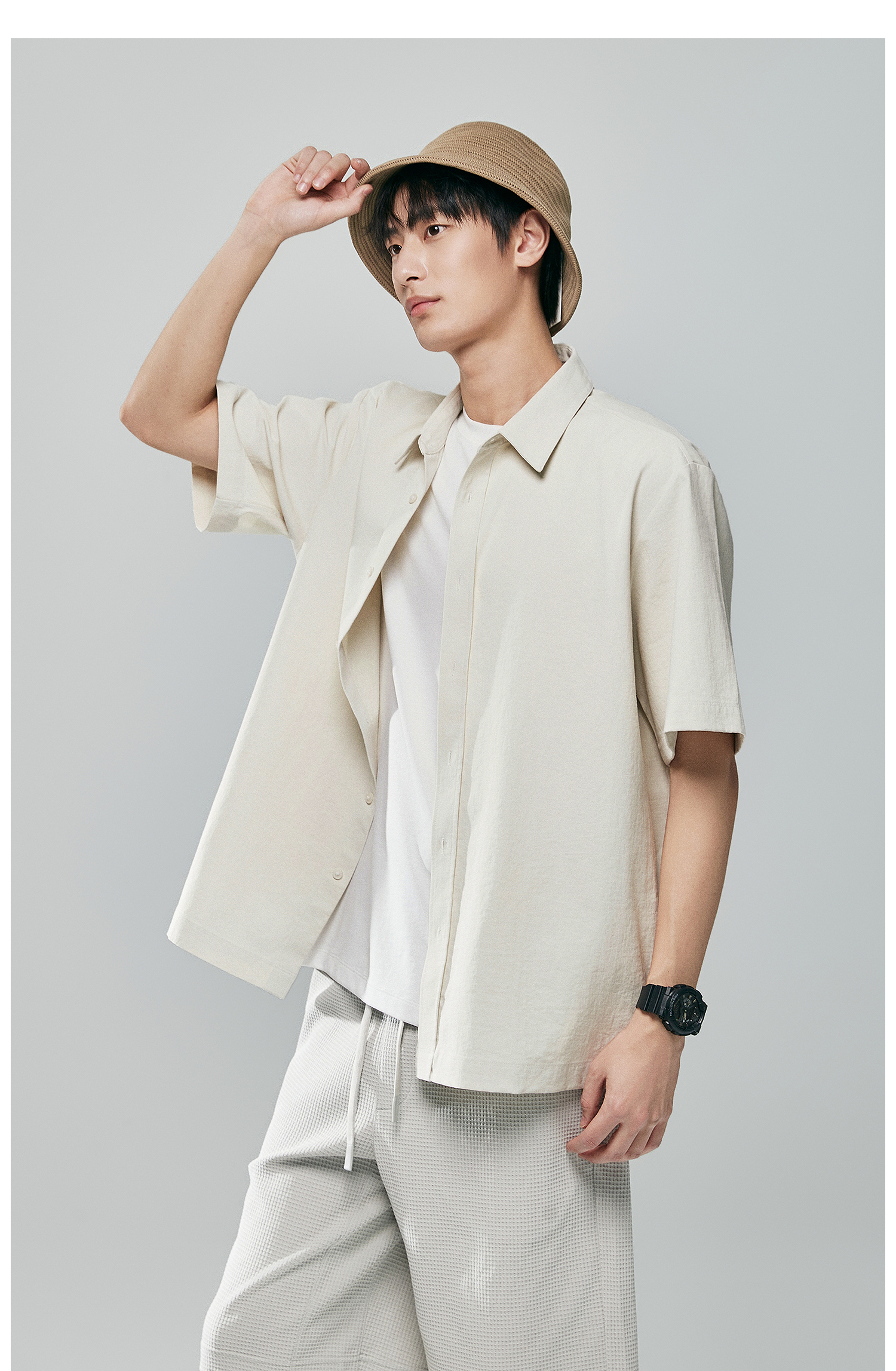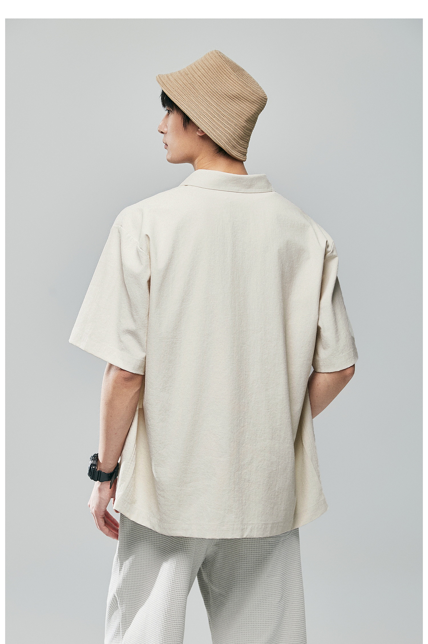 棉仓363804011-微宽松亚麻混纺翻领短袖衬衫