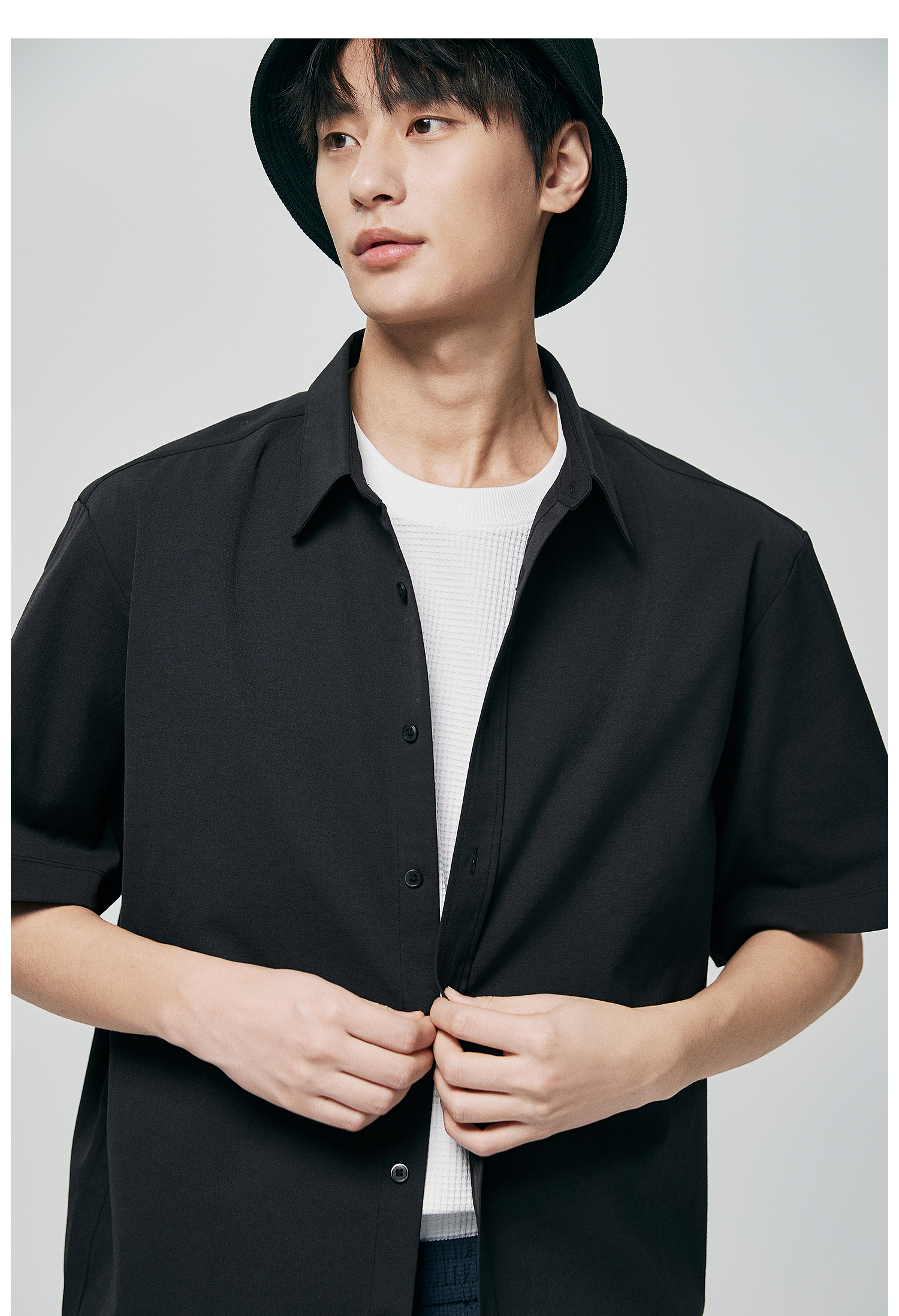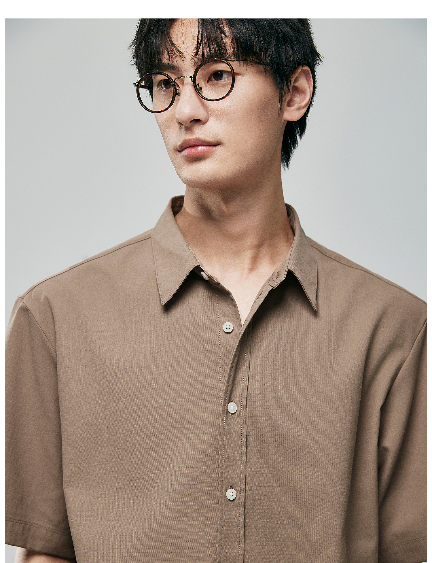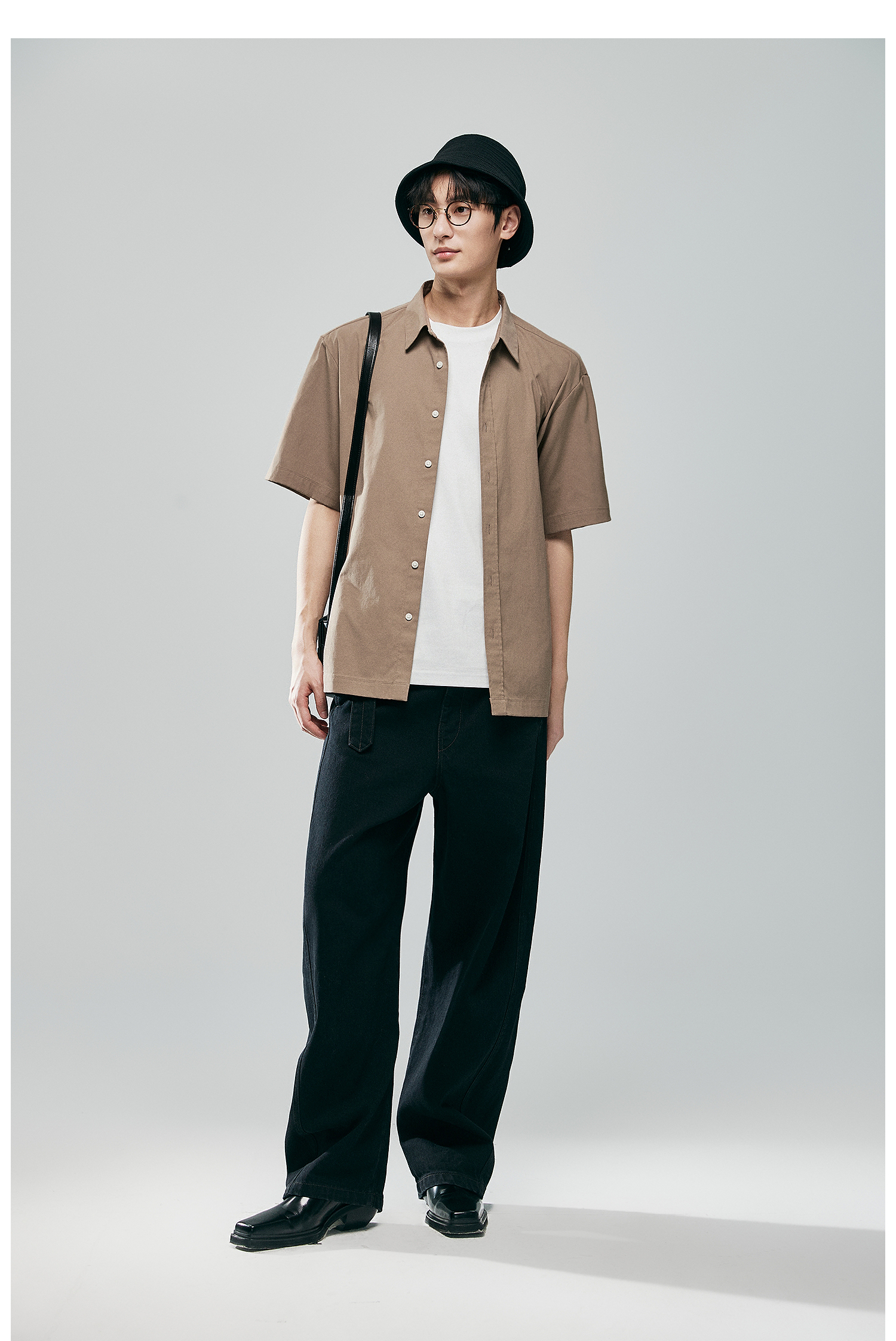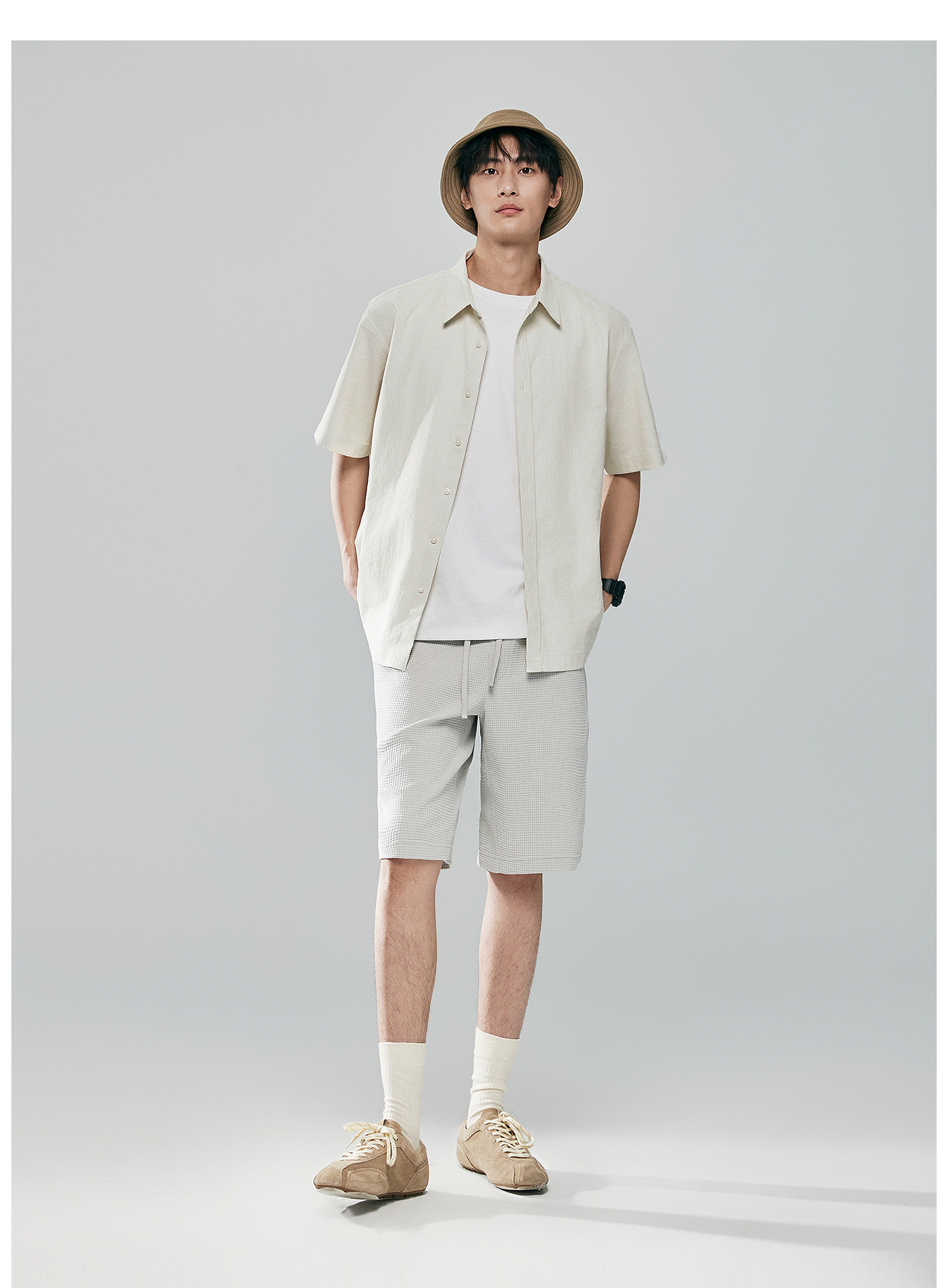 棉仓363804011-微宽松亚麻混纺翻领短袖衬衫