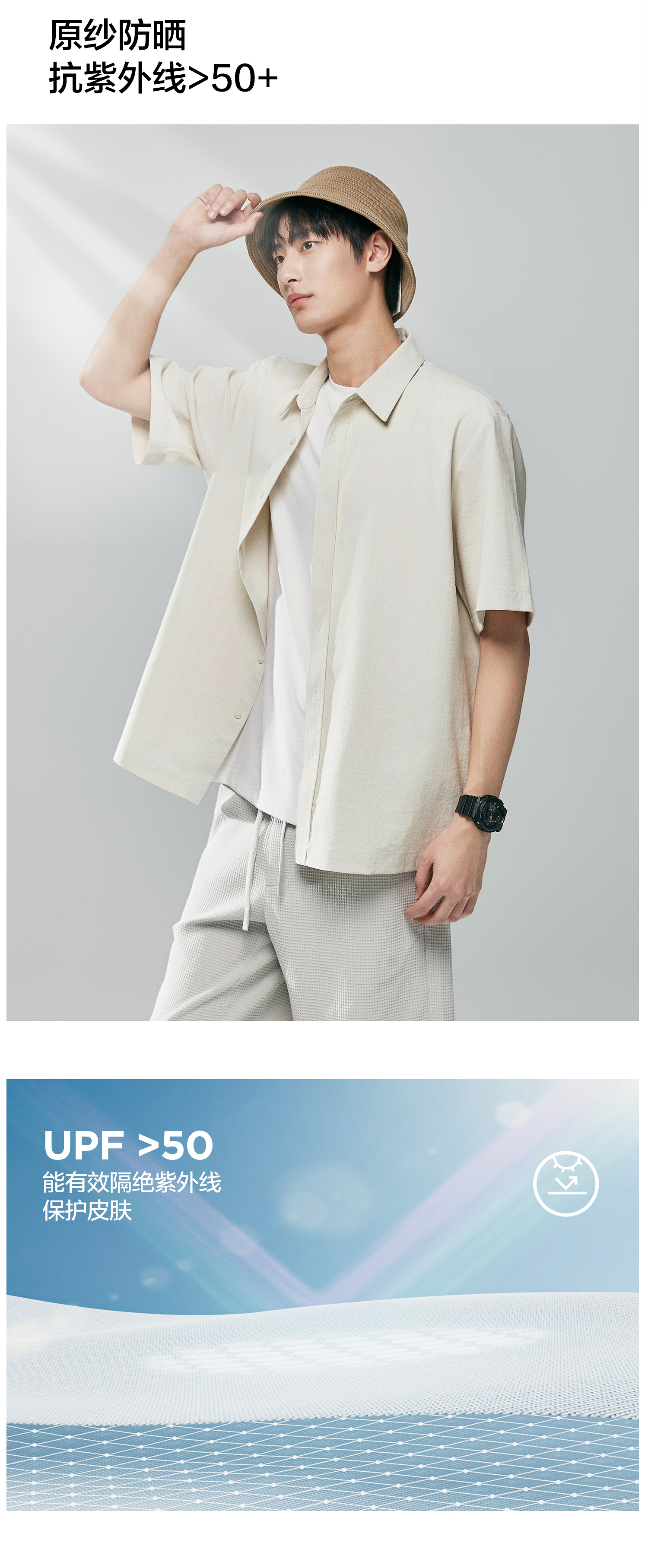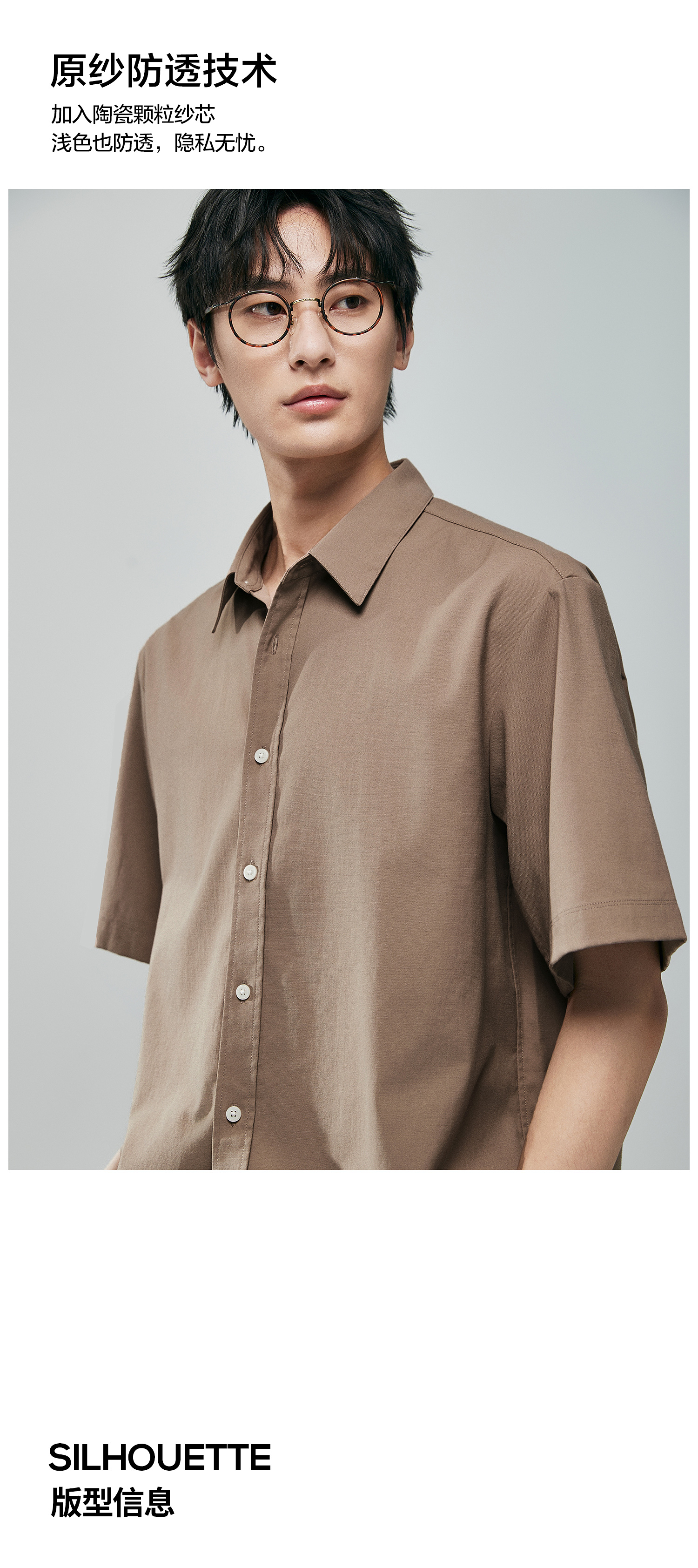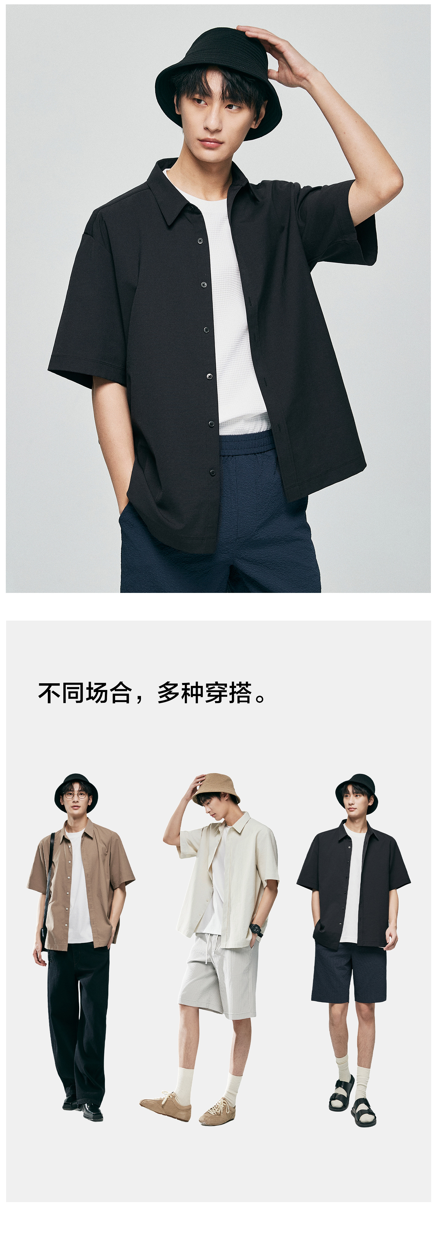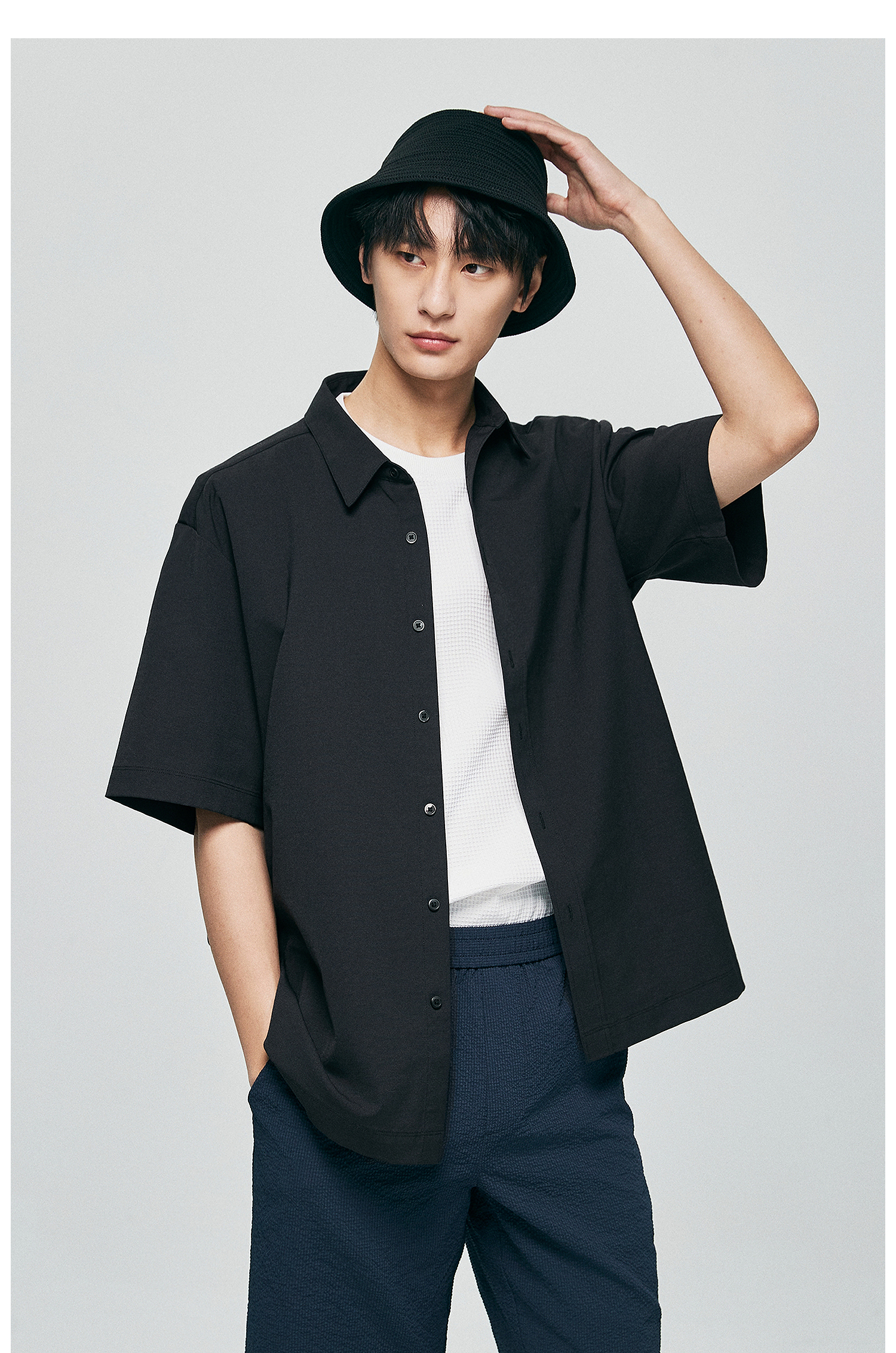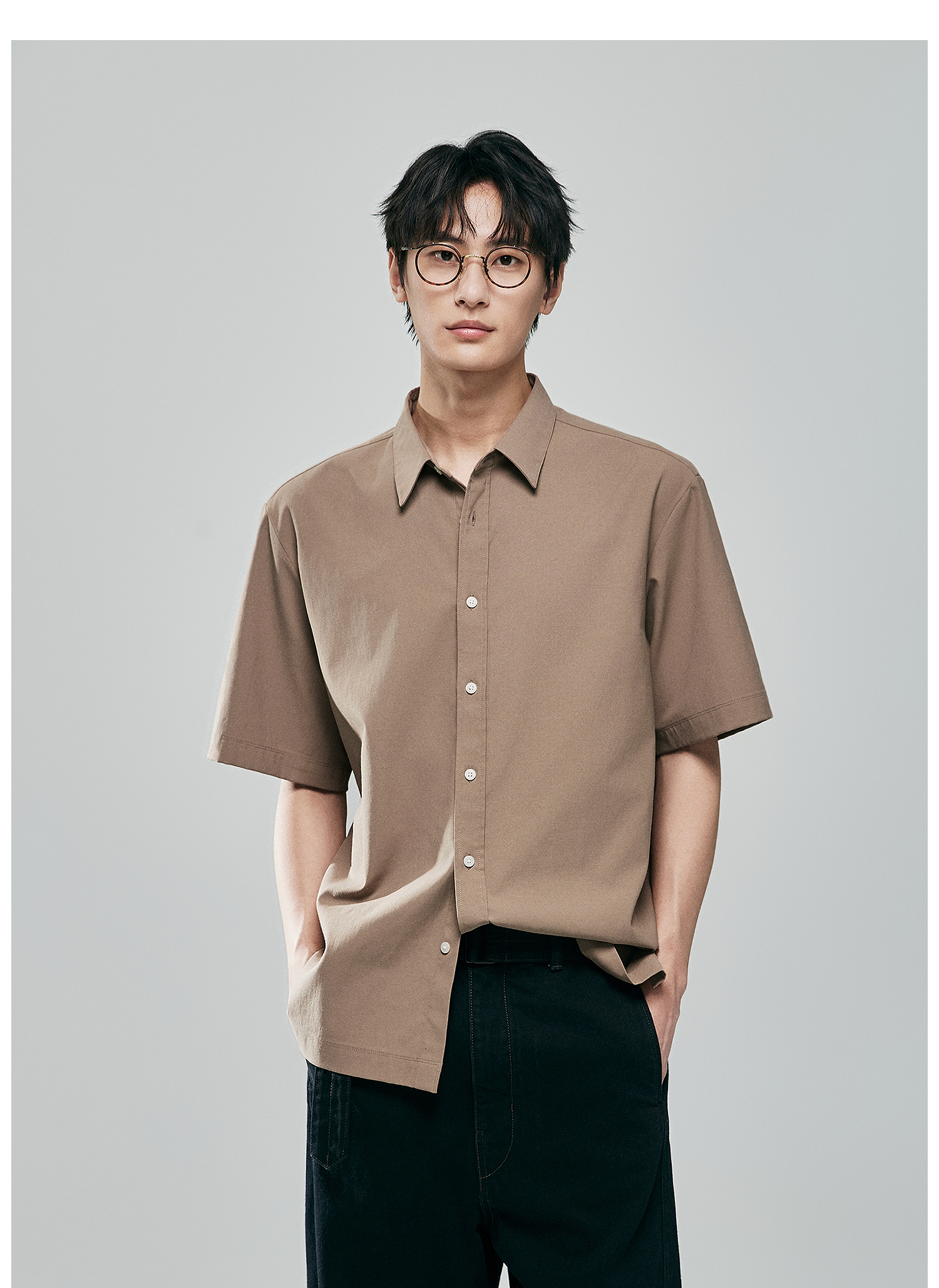 棉仓363804011-微宽松亚麻混纺翻领短袖衬衫