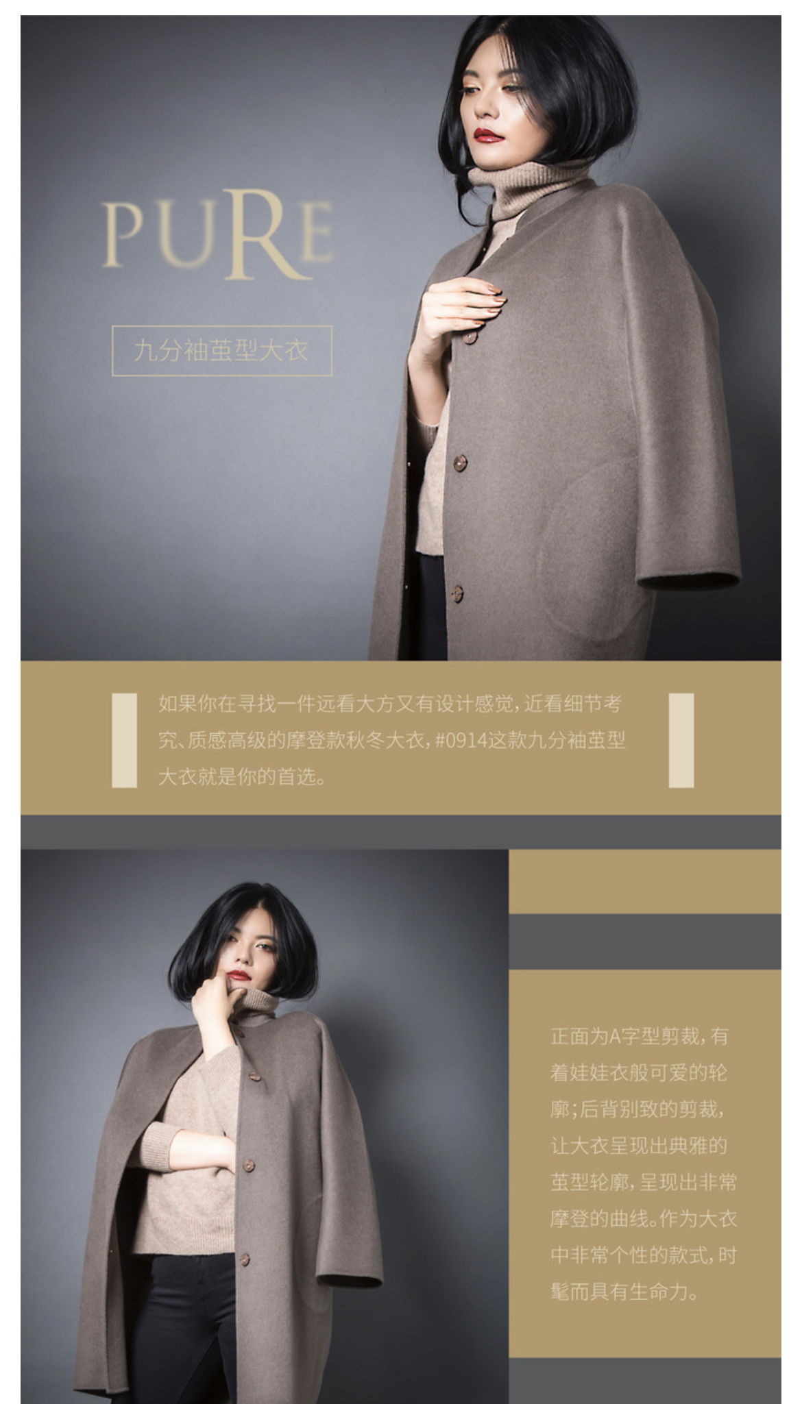 Puree|#0914 纯羊绒 9分袖茧型大衣 [米 / 褐色]