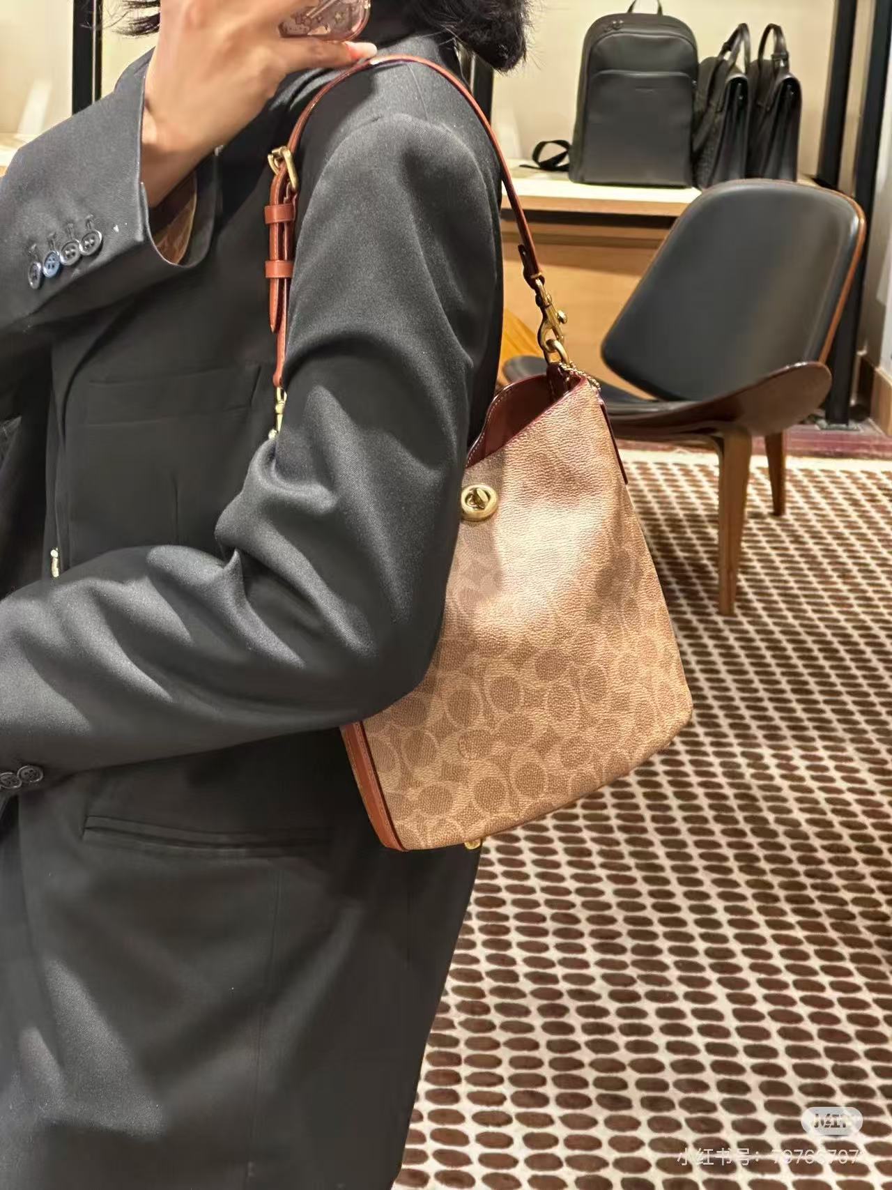 【折扣季】【5.4折】1楼COACH蔻驰女士经典标志WILLOW 19号柔软水桶包吊牌价4500 现价2435