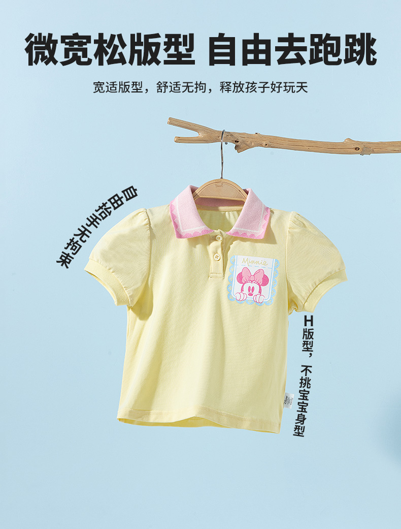 迪士尼【米妮冰感T恤】25夏季新款女童凉感短袖POLO衫亲肤透气休闲上衣ZD2ES003