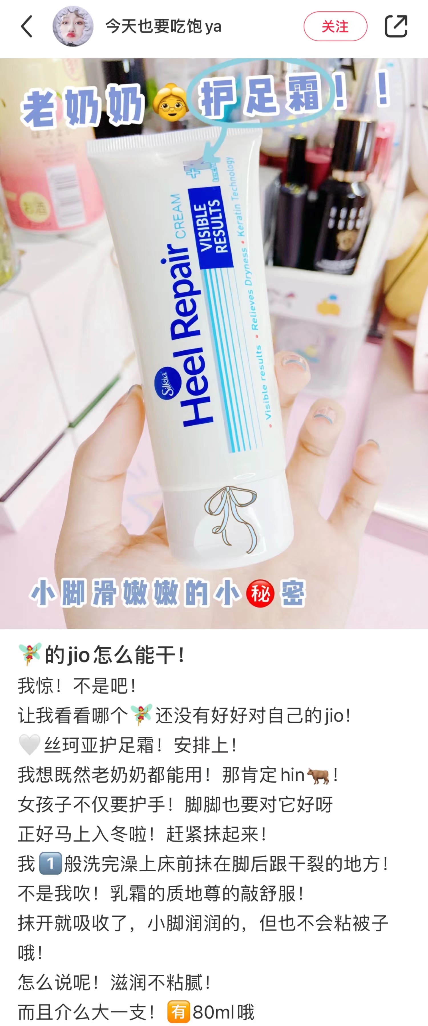 脚跟修护霜必须得安利给你们,秋冬脚部干燥、起皮的老粉要入!家里爸妈如果有脚跟开裂的,也可以送给他们,用完一个冬天真的会很有改善!