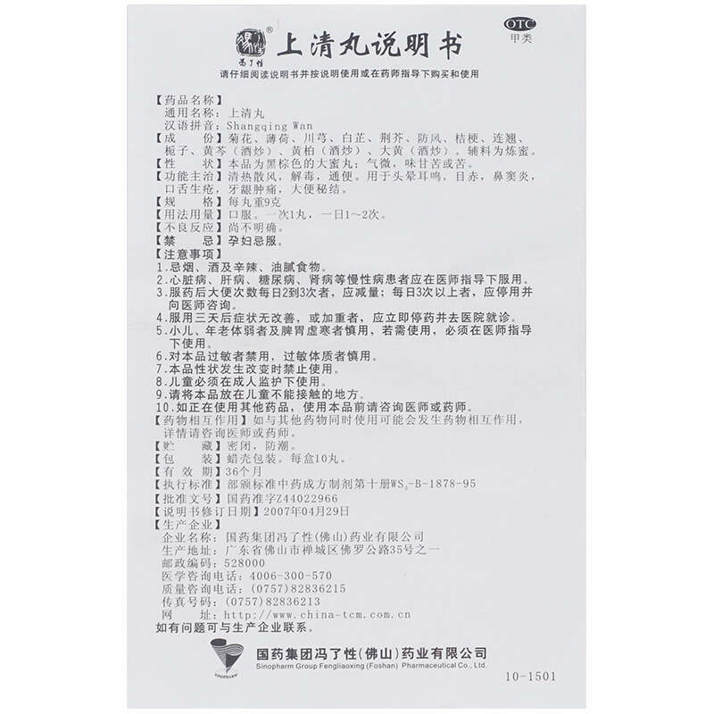 冯了性 上清丸 10丸 清热解毒通便 口舌生疮 牙龈肿痛 鼻窦炎便秘