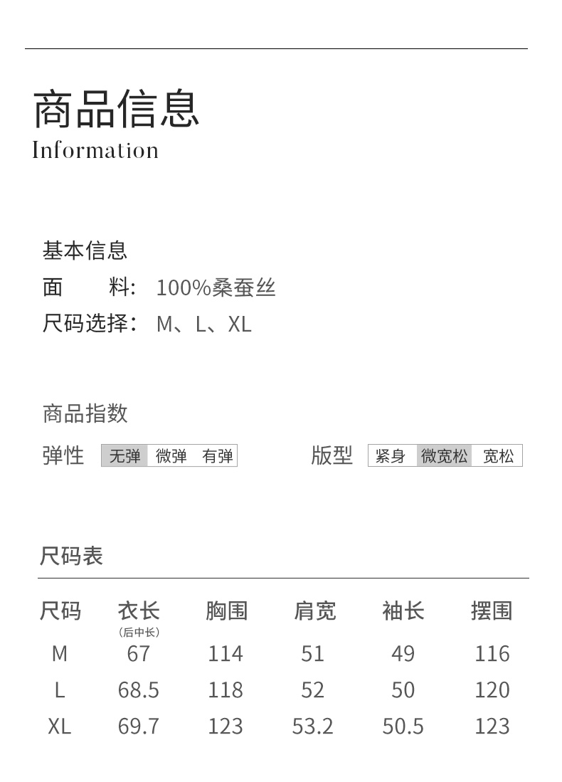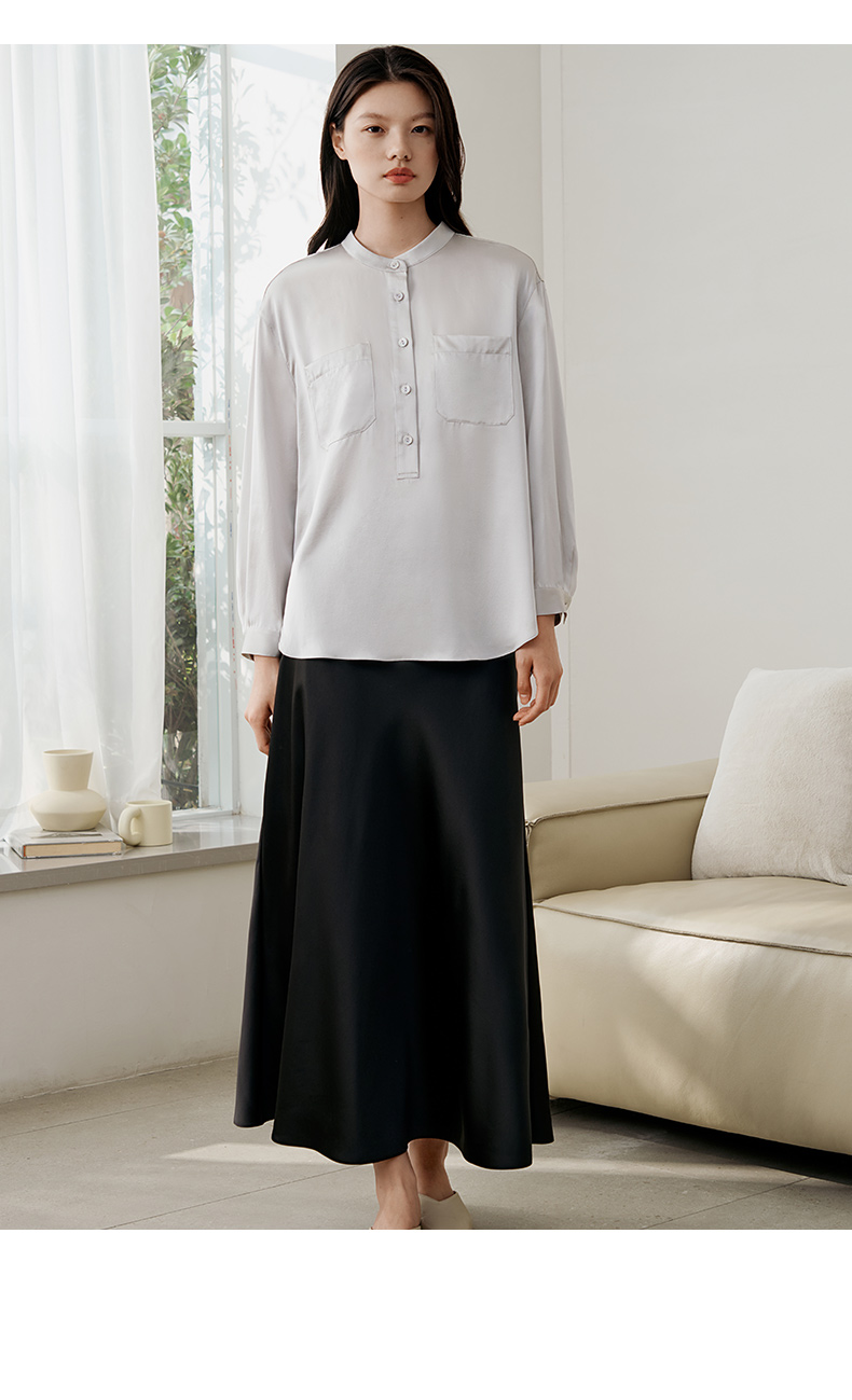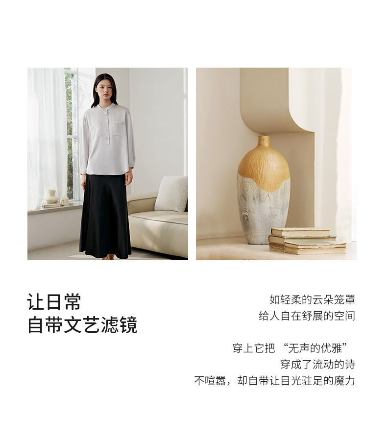 金三塔重磅真丝小衫女100%桑蚕丝简约立领宽松舒适长袖上衣家居服 YSFFC701