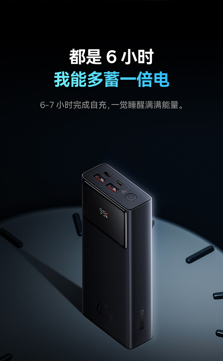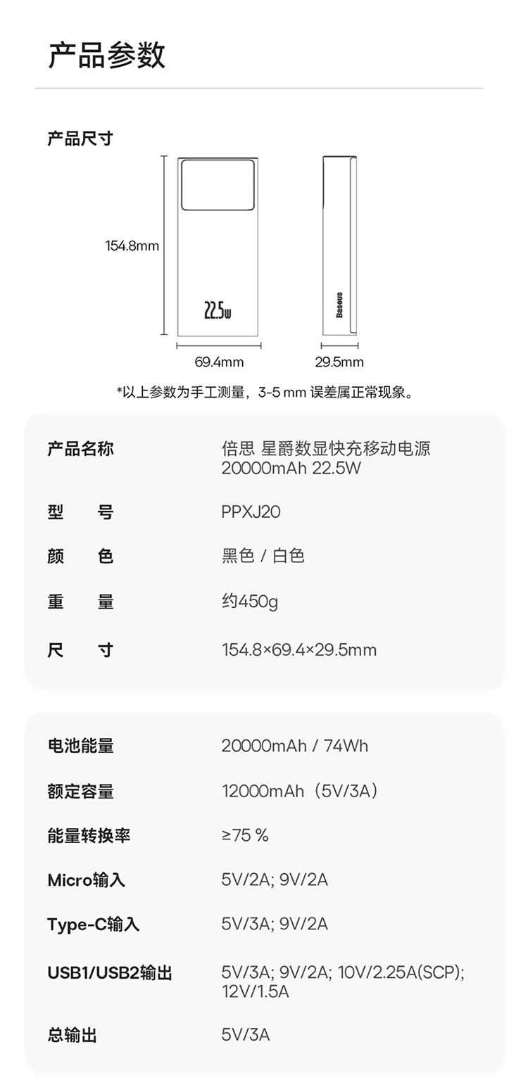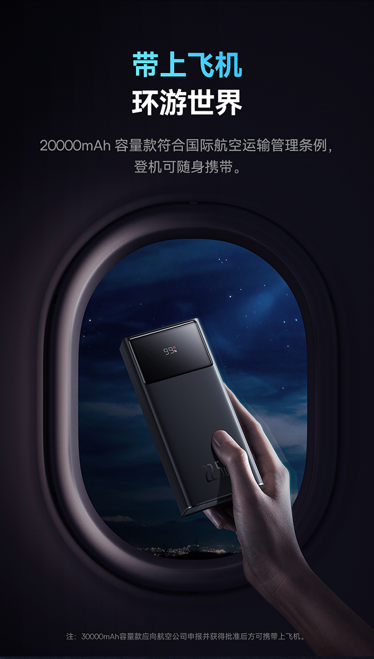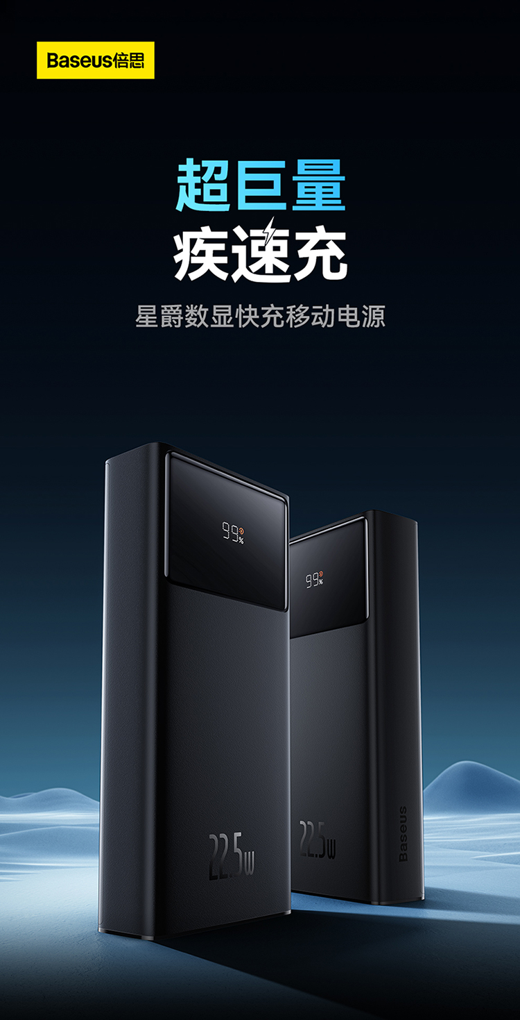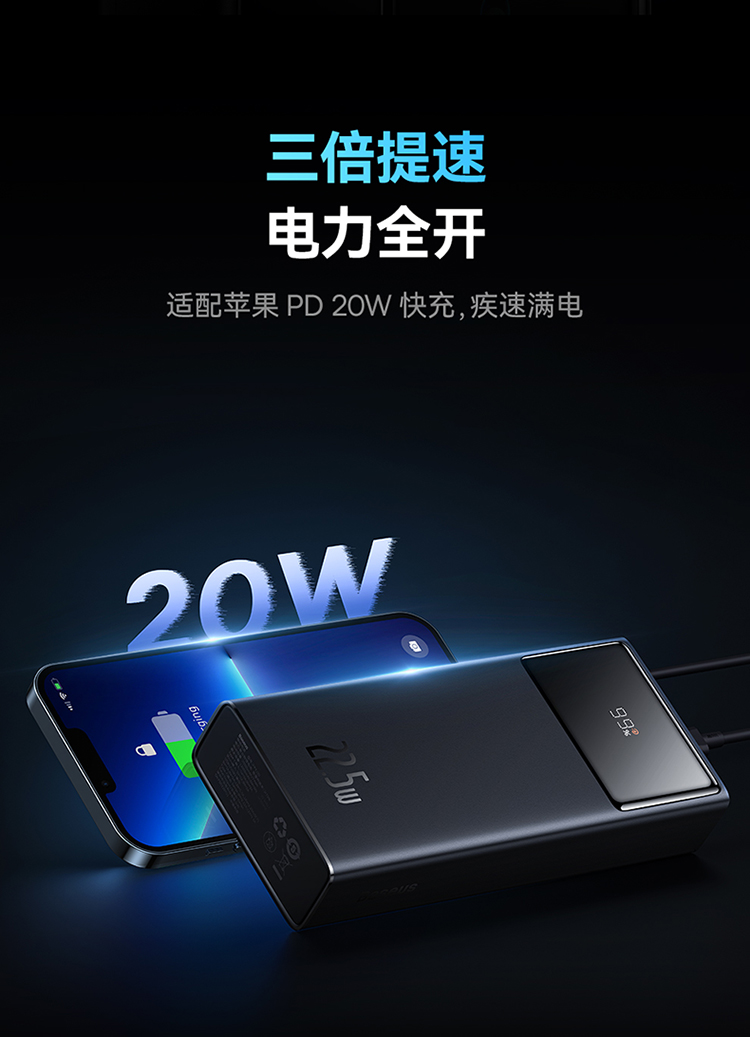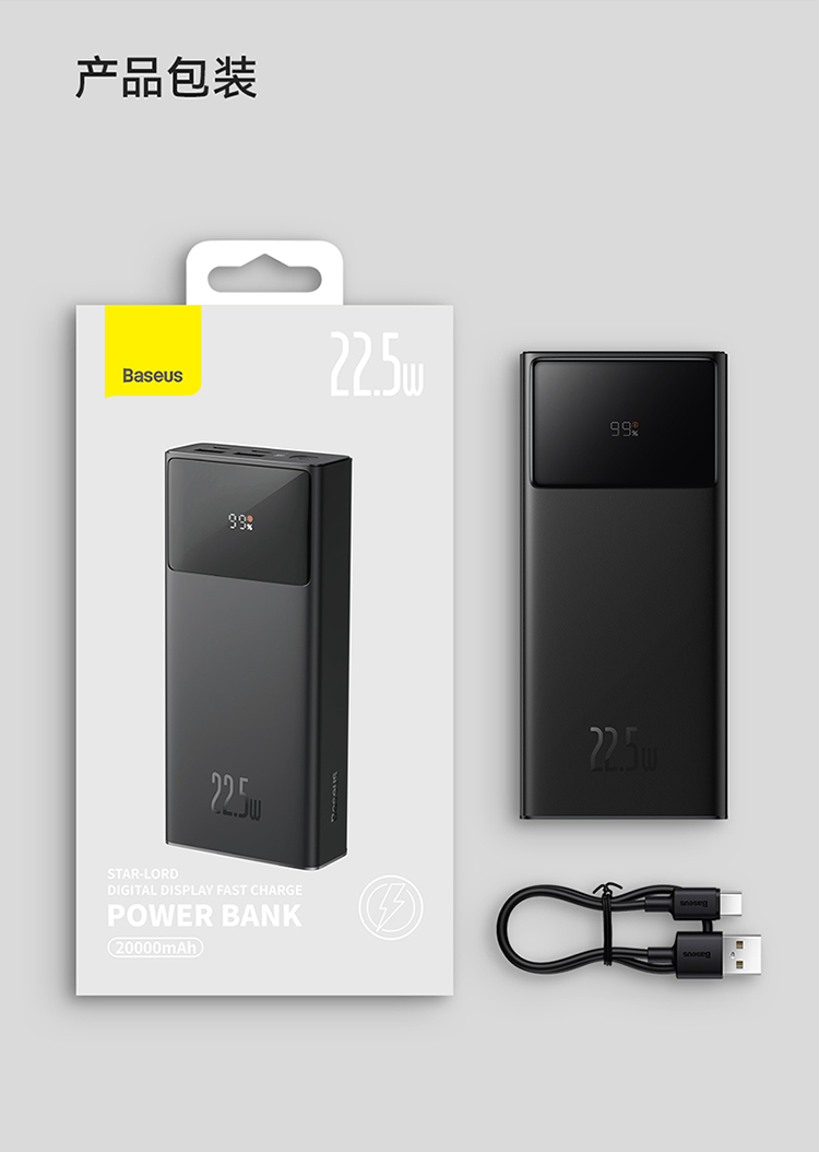倍思 星爵数显快充移动电源20000mAh 22.5W充电宝(含简易通用数据线USB to Type-C 3A 0.3m)