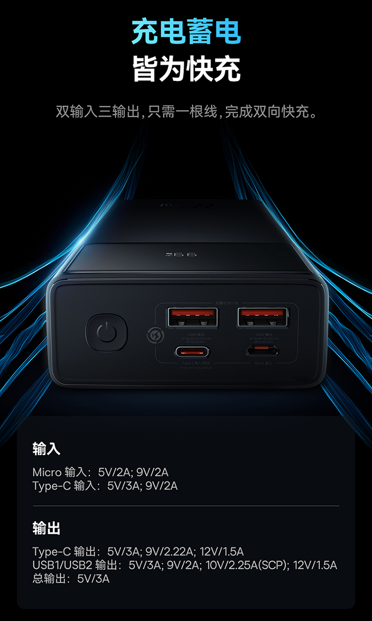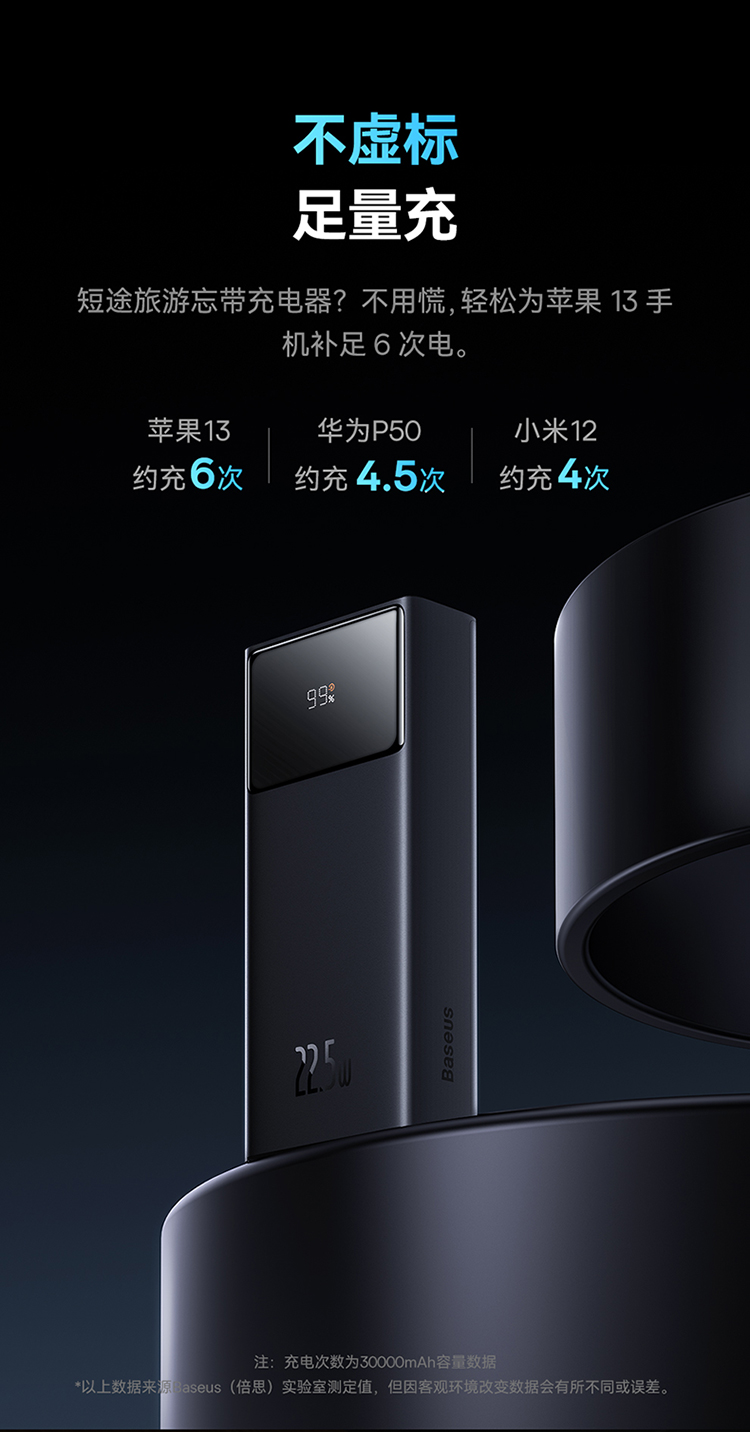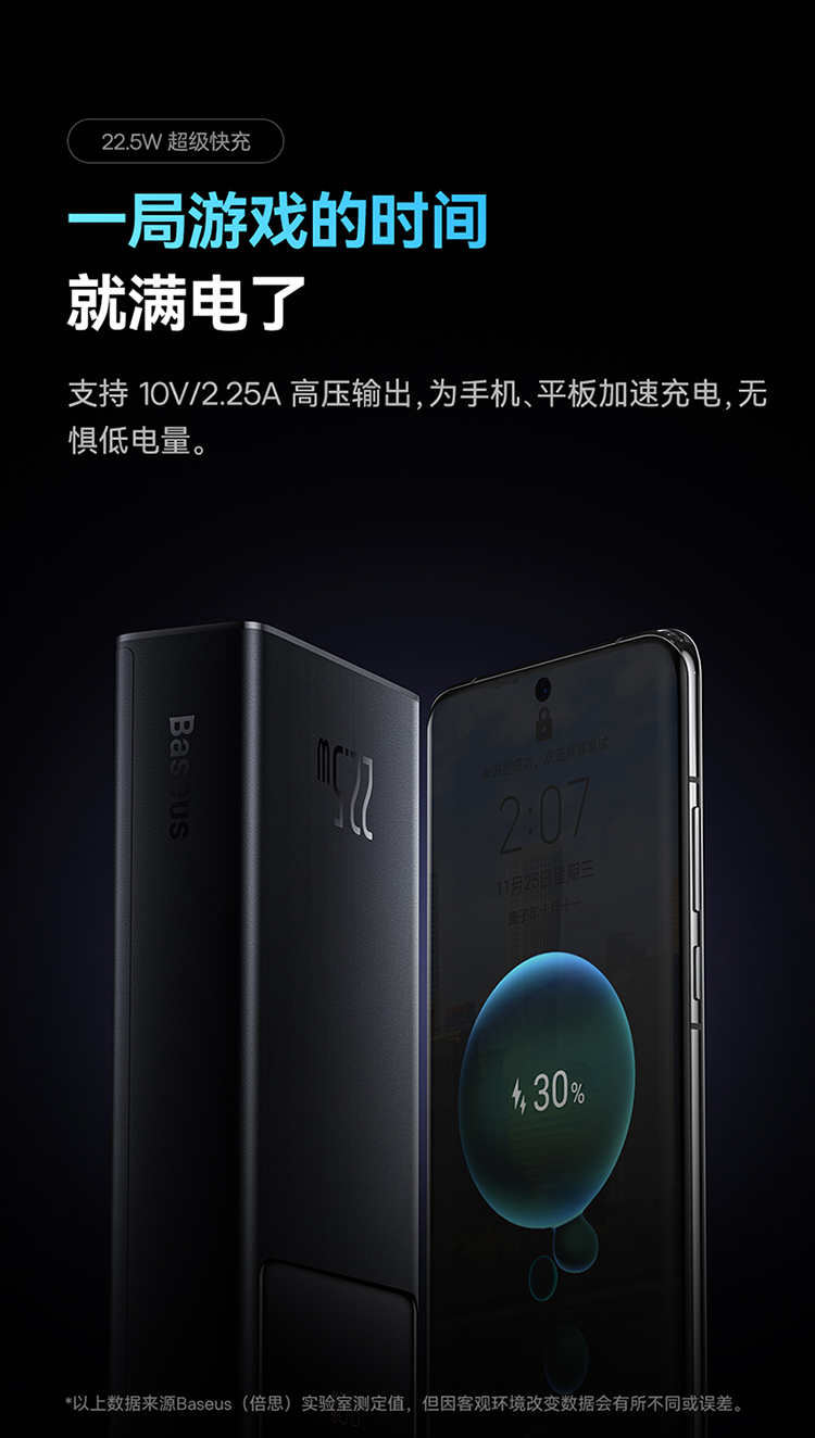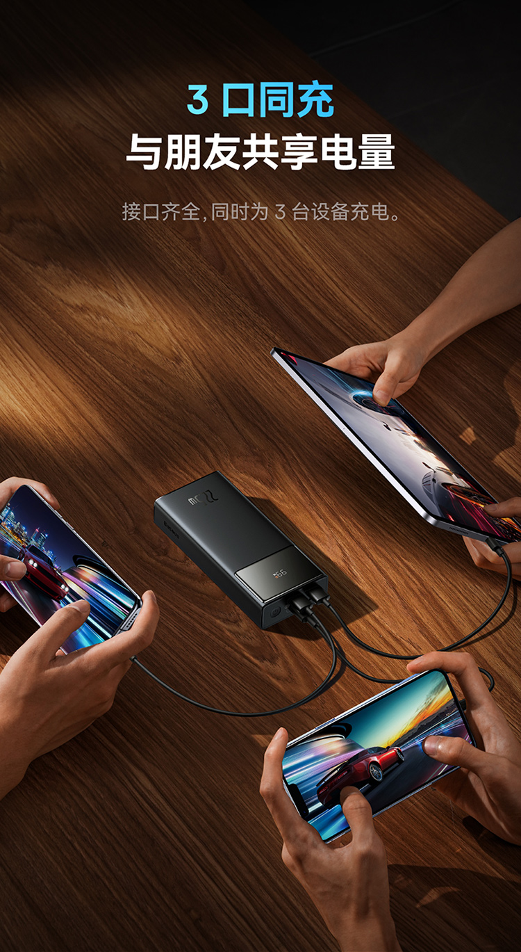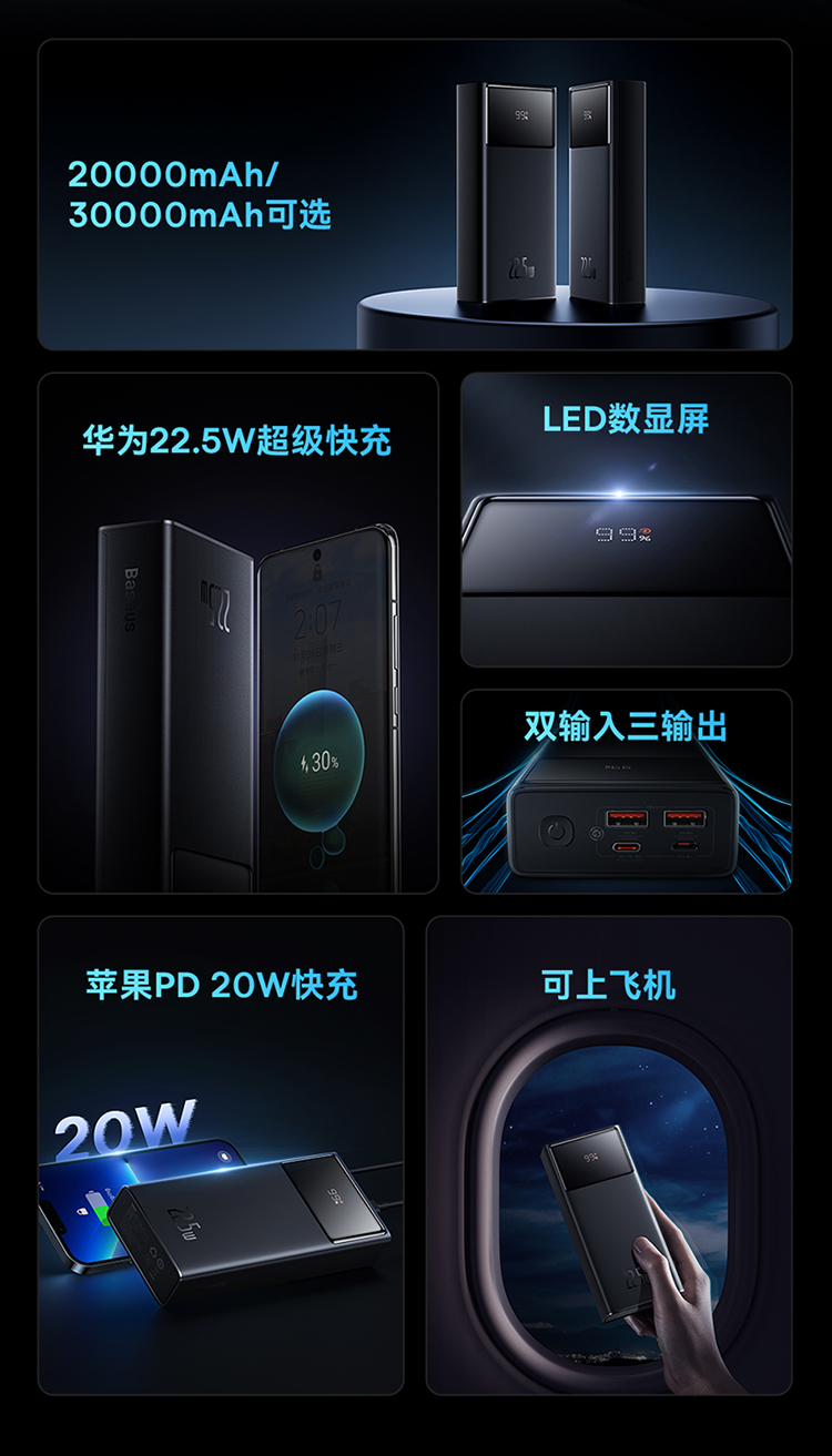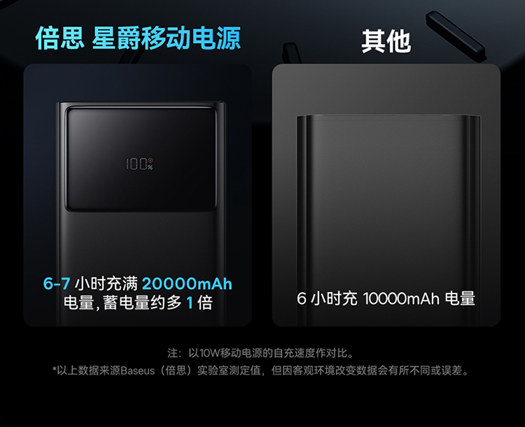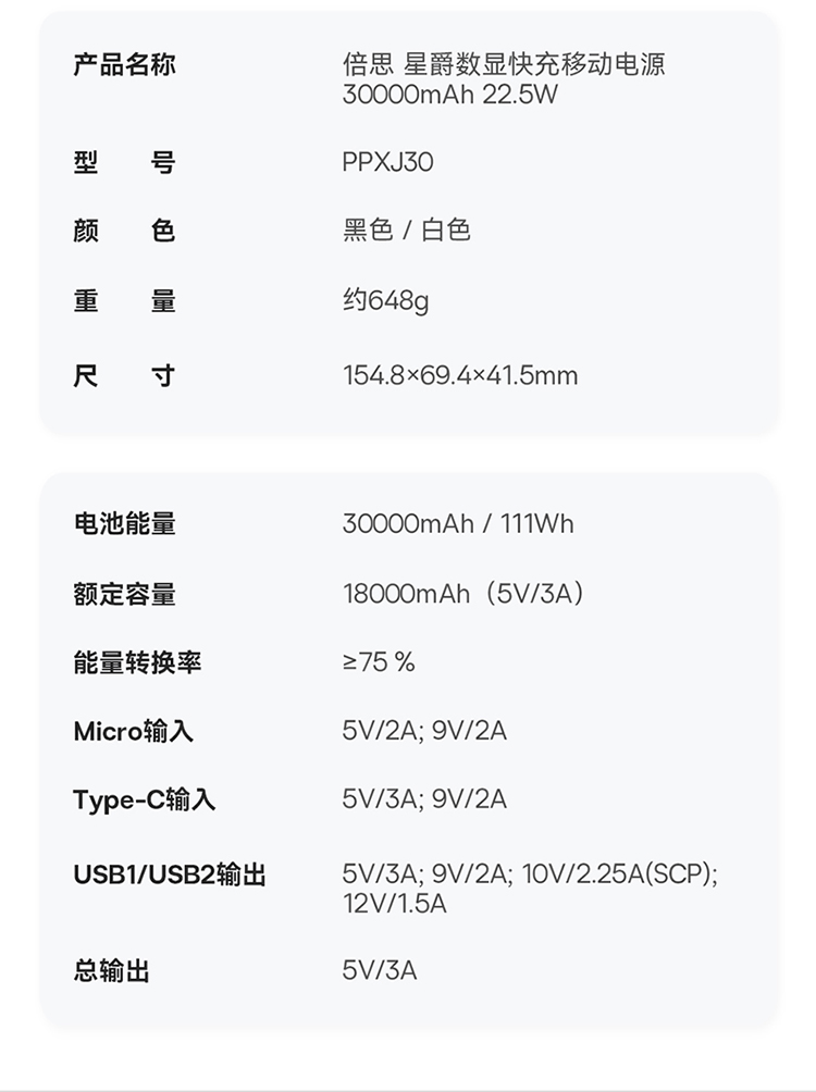 倍思 星爵数显快充移动电源20000mAh 22.5W充电宝(含简易通用数据线USB to Type-C 3A 0.3m)