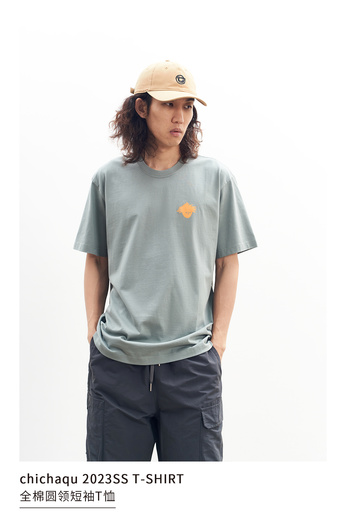 吃茶去chichaqu2024款宽松休闲百搭凉感棉混纺圆领短袖T恤