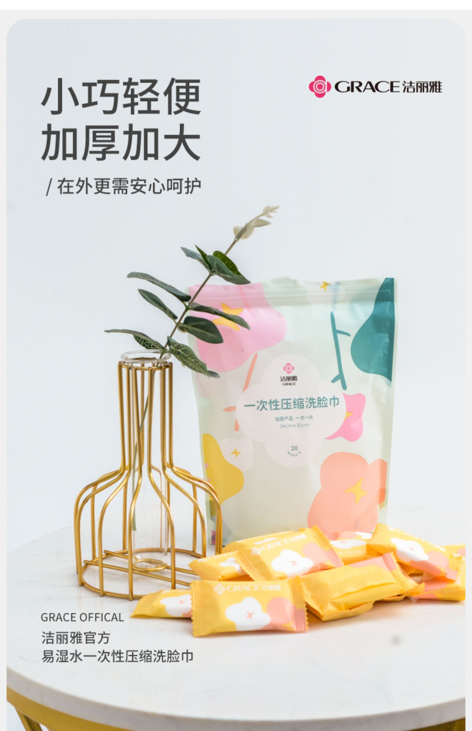 【2包装】洁丽雅一次性压缩洗脸巾 20粒/1包 #东方甑选