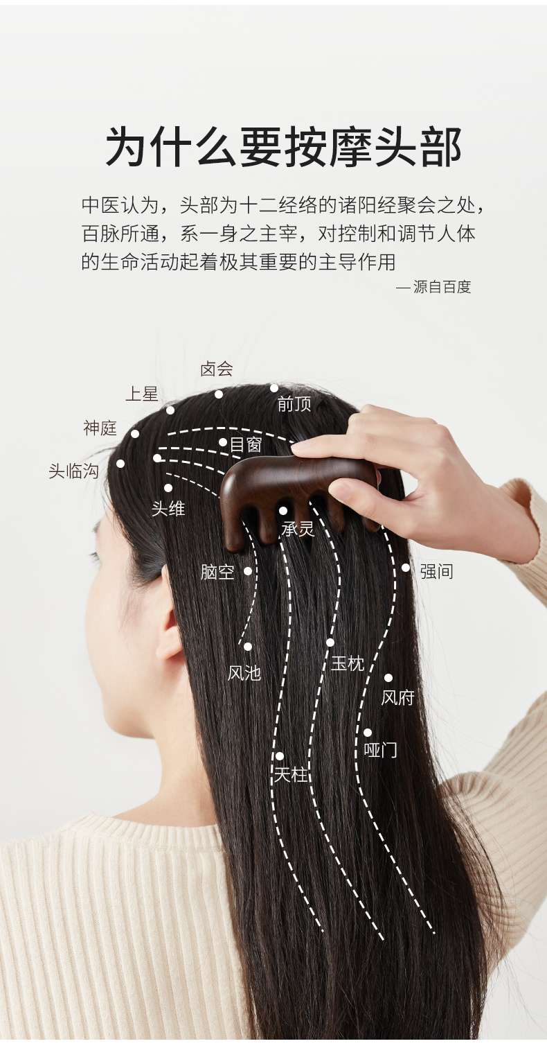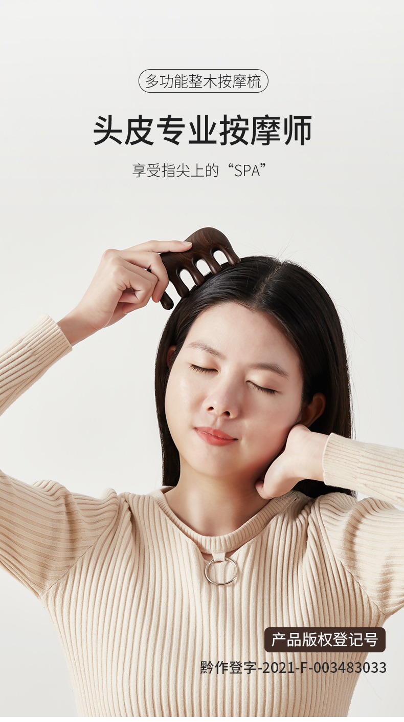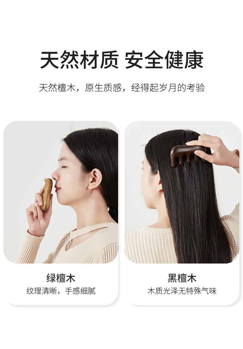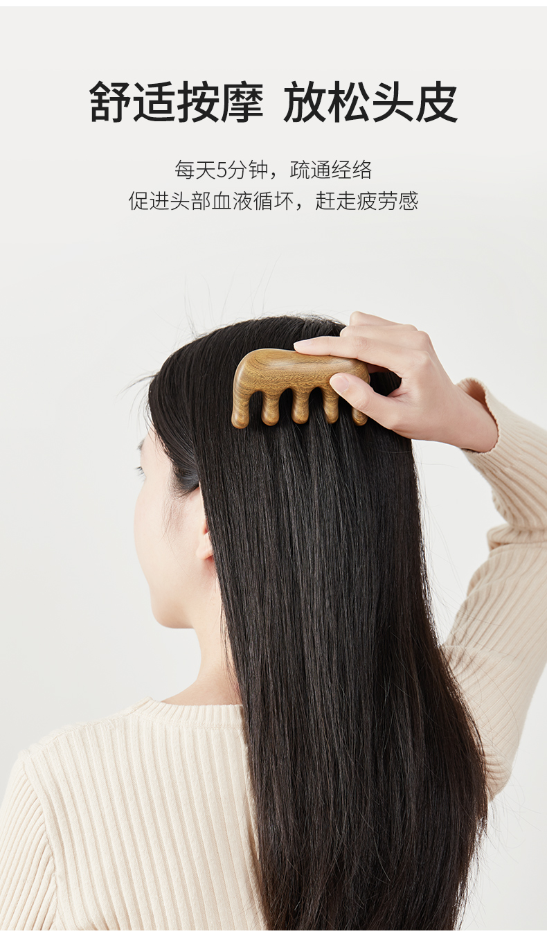 初心| 整木按摩梳经络梳绿檀黑檀全实木梳子