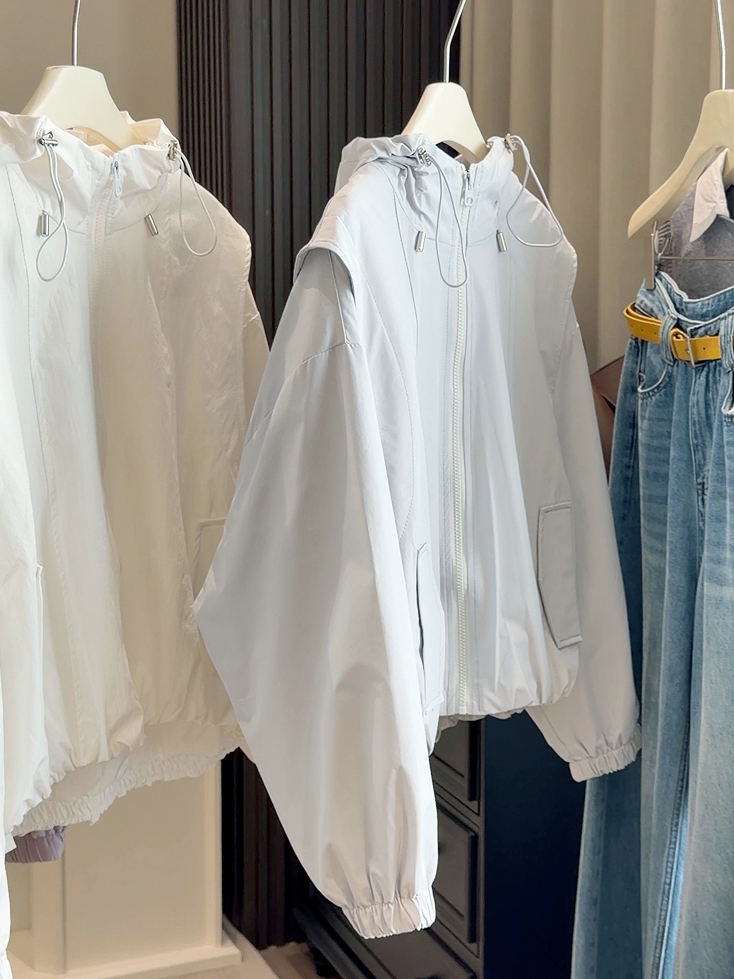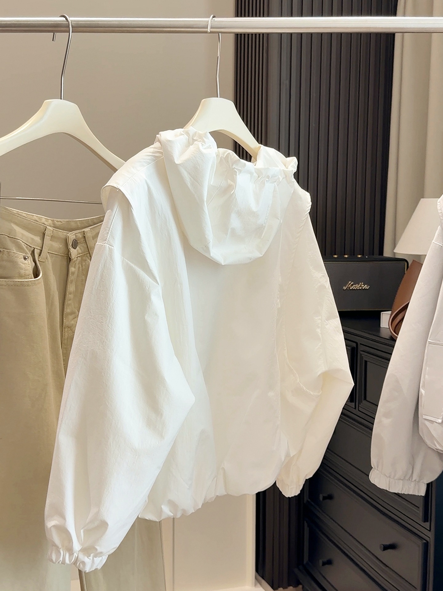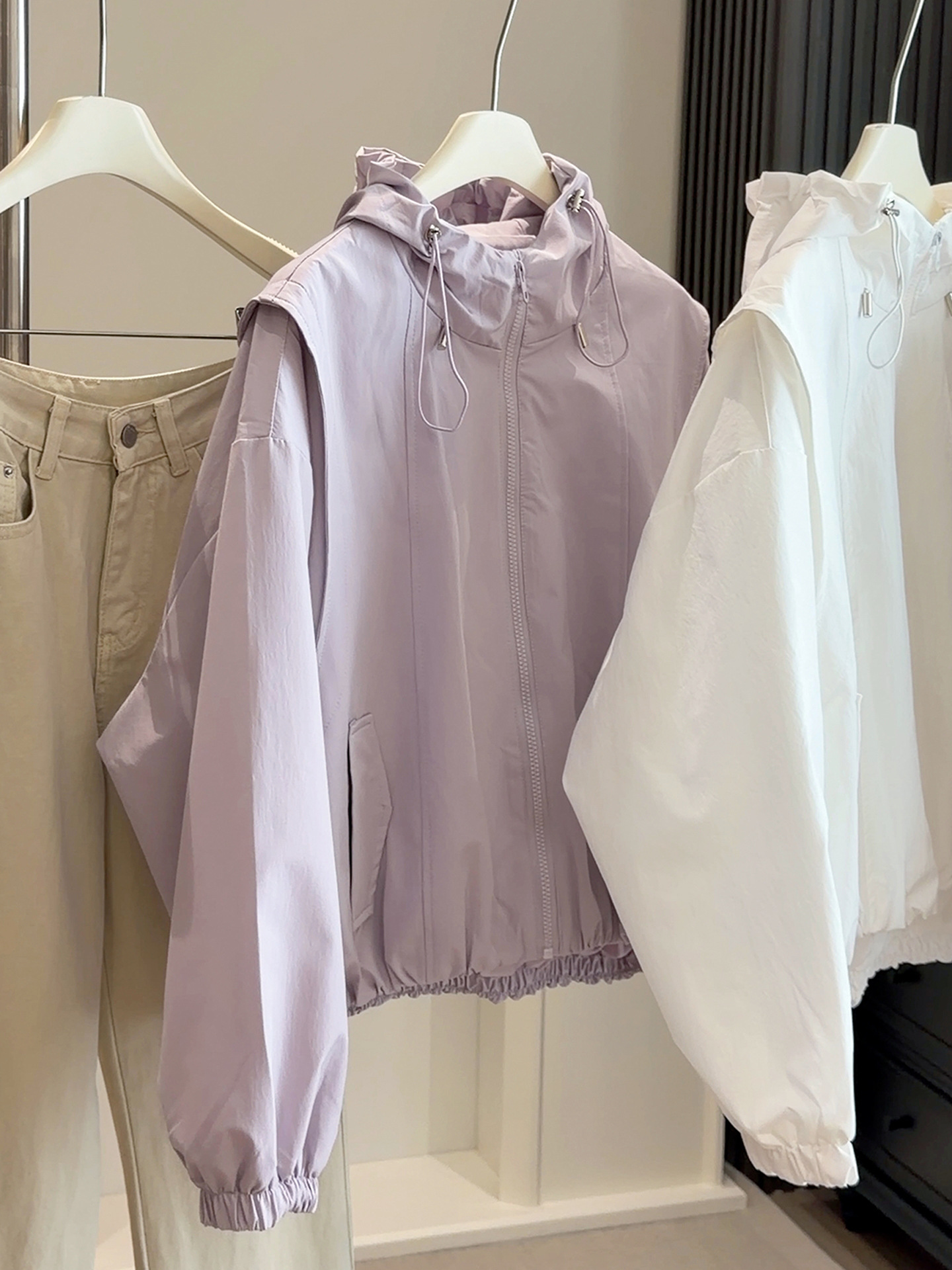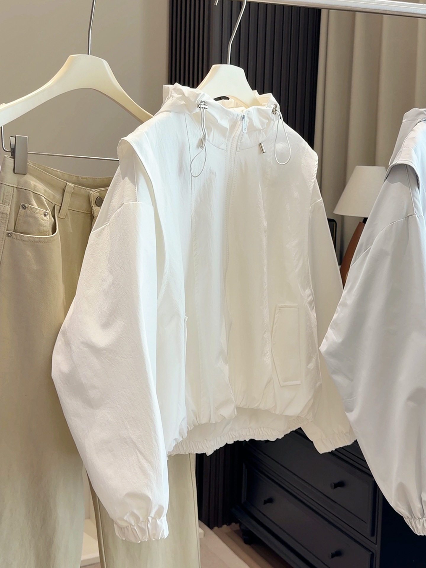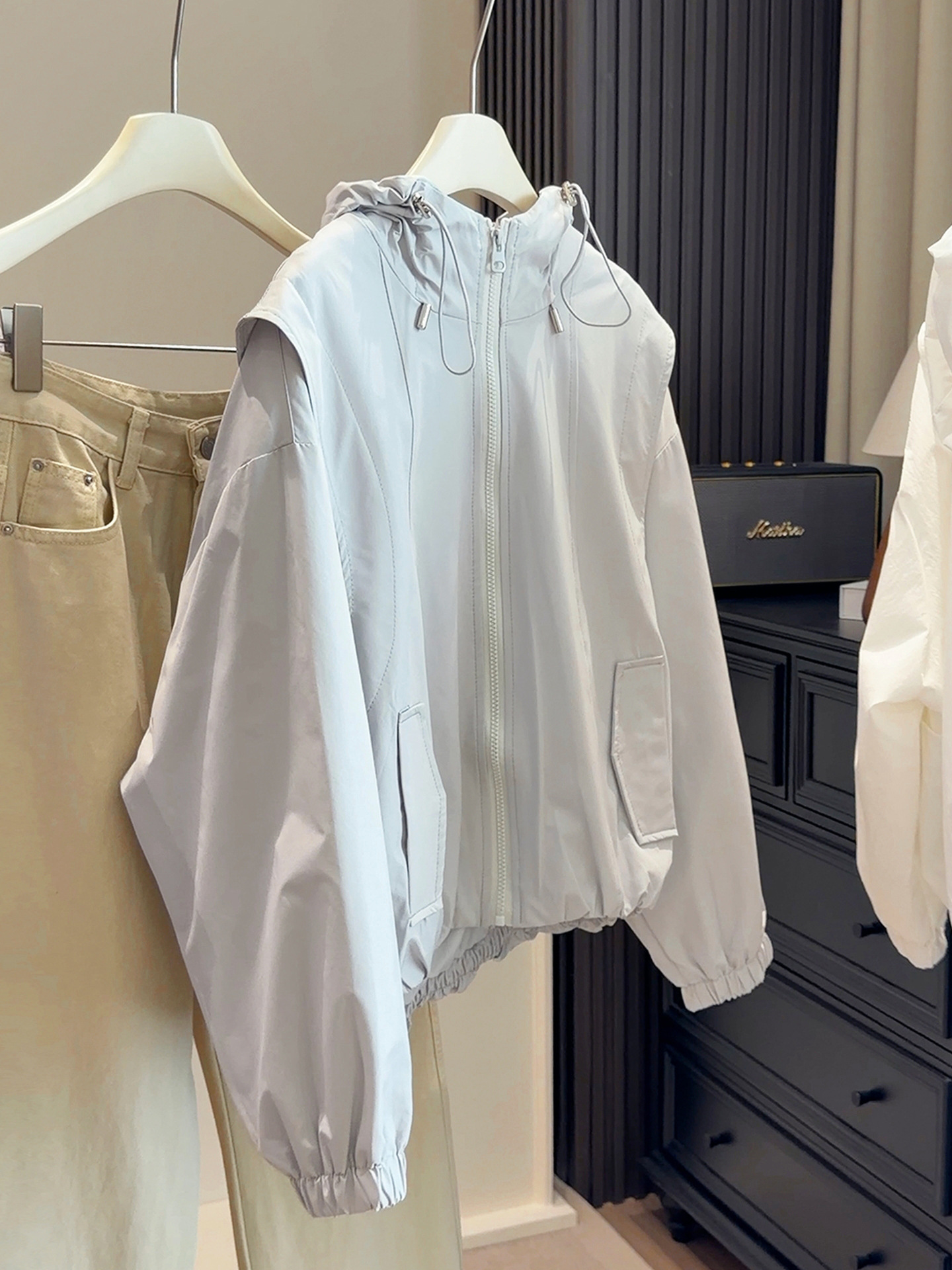 韩系春款新款休闲外套!2026宽松百搭时髦下摆收束工装连帽短外套!