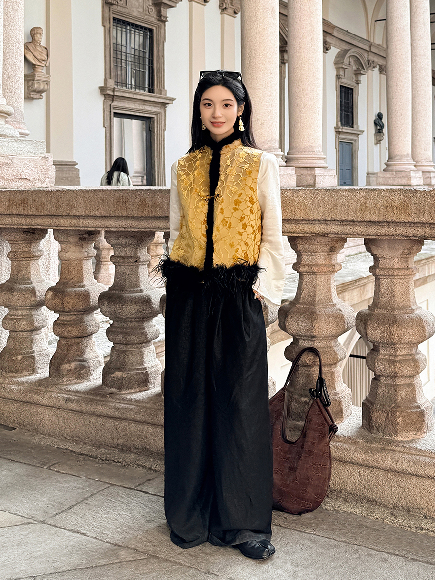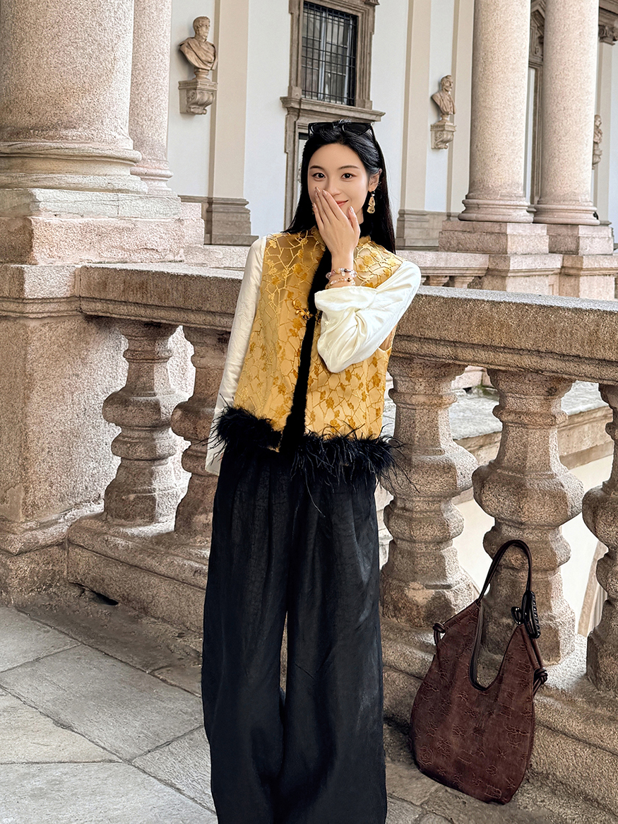 盛唐牡丹 |黑色真丝绡如意湖亭马甲