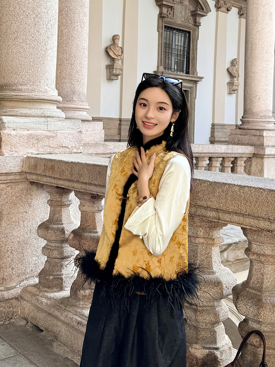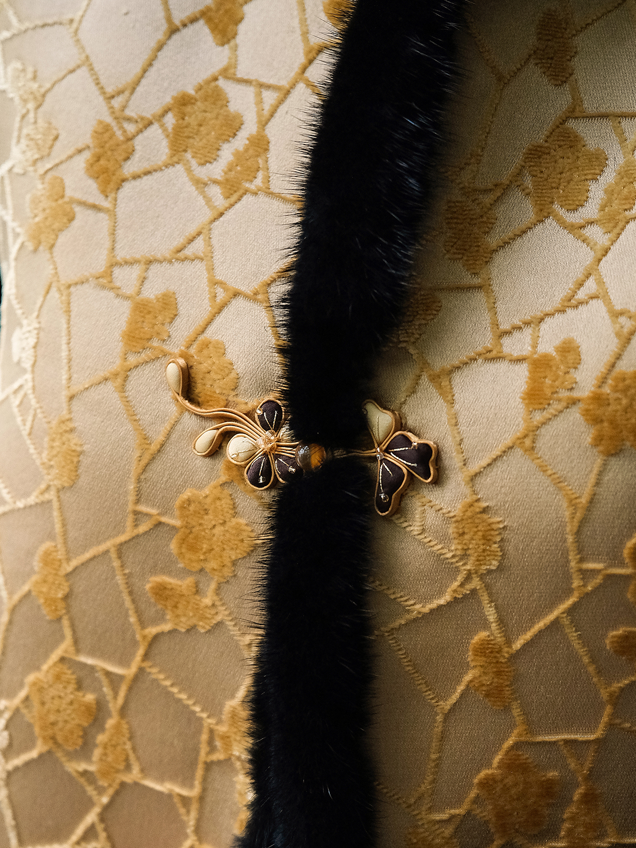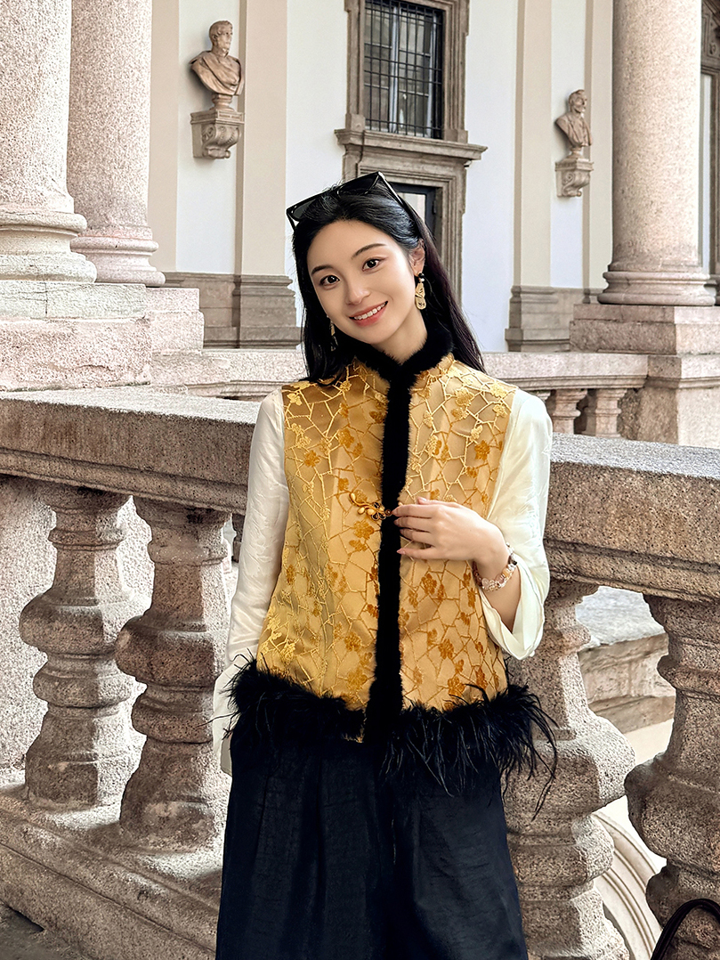 盛唐牡丹 | 冰裂梅花纹真丝漳缎棉马甲