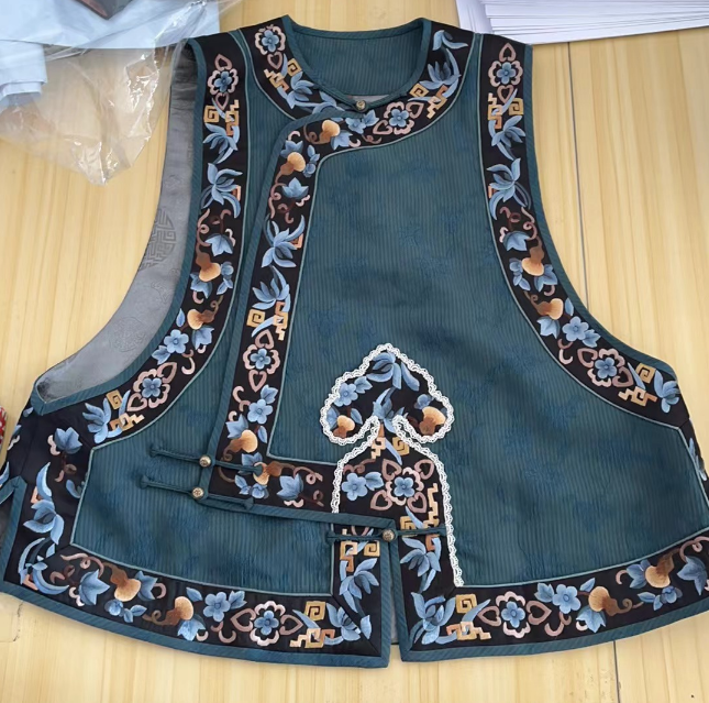 盛唐牡丹| 高货限量款/手绣系列:雪灰三经绞罗香云纱底手绣琵琶襟女坎肩 (特价)