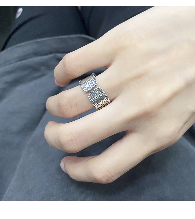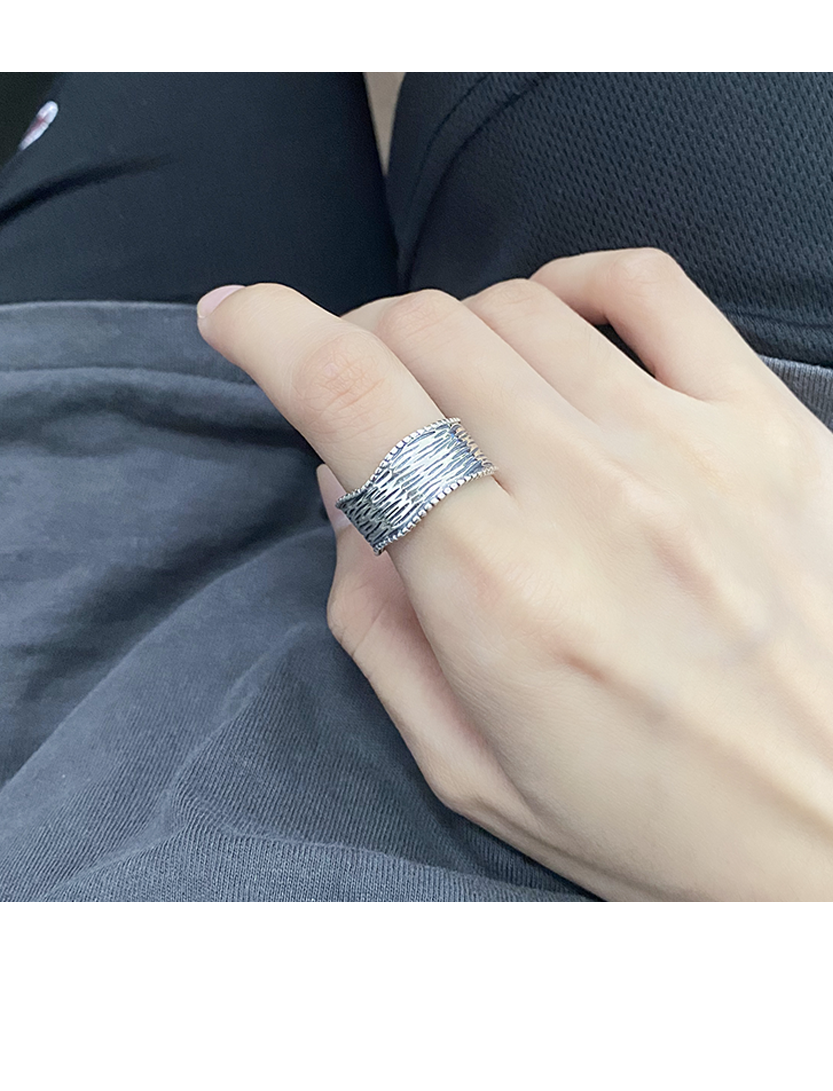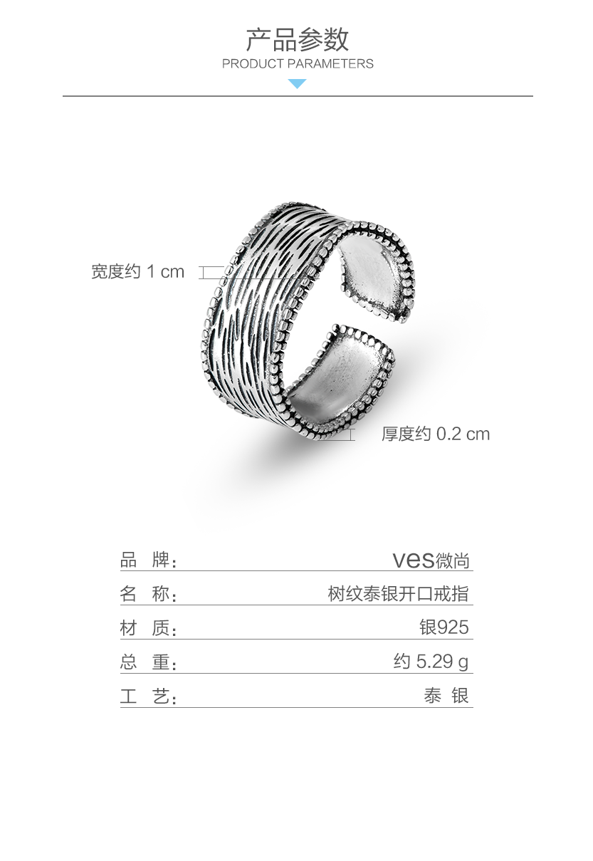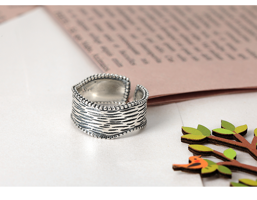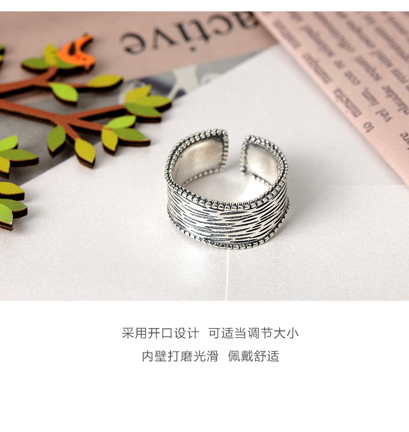 宽面树纹泰银925开口戒指